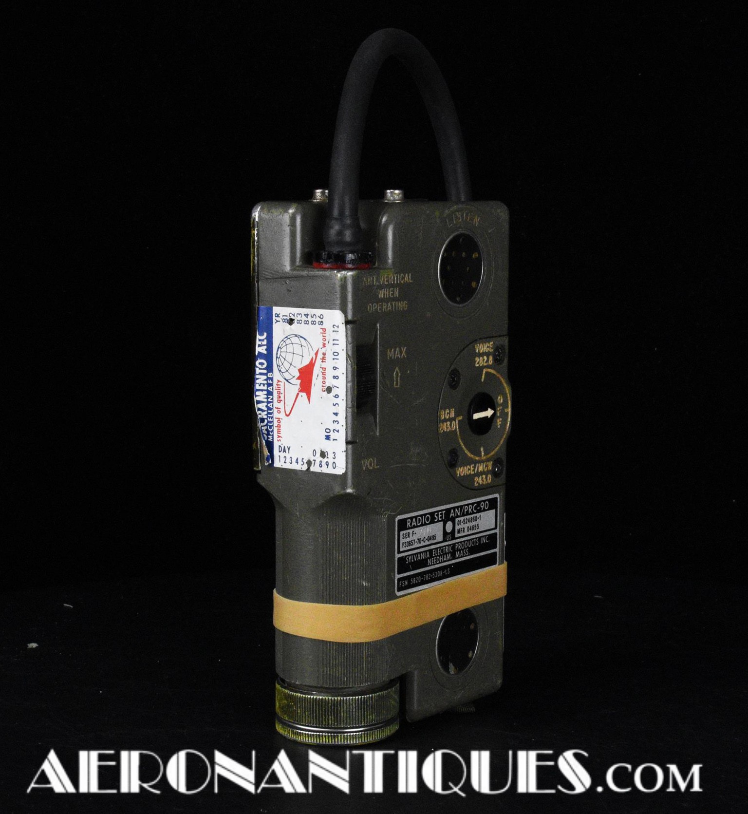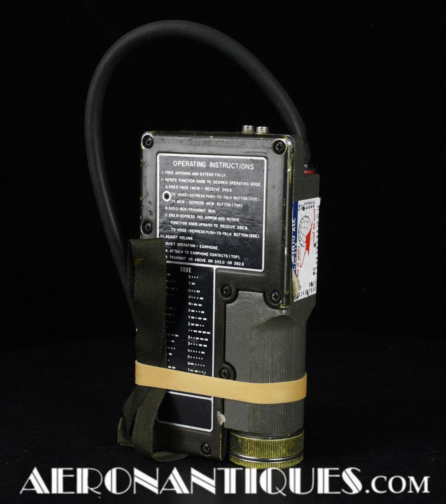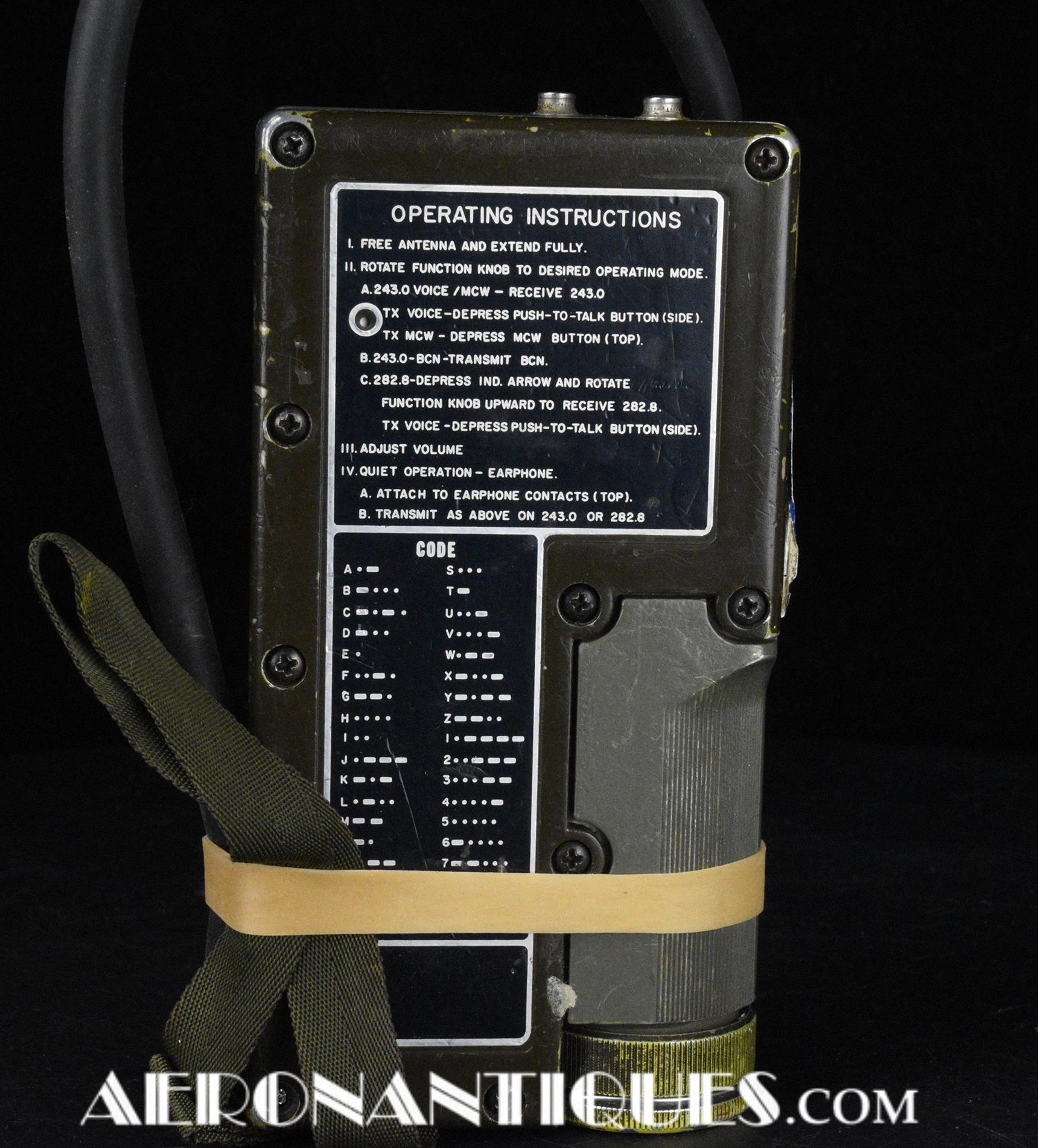 Vietnam era US Navy, Marine Corps or Air Force pilot camouflaged AN/PRC-90 survival radio. Dated 1970, made by SYLVANIA ELECTRIC PRODUCTS INC. . Complete with flexible 1/4 waves antenna. Essential to complete a US Navy SV-2 A/B or Air Force SRU-21 survival vest. Introduced in the late 60's, these survival radios were developed to establish a communication between downed pilots and their rescue & recovery teams, they were still in use in the early 2000's.