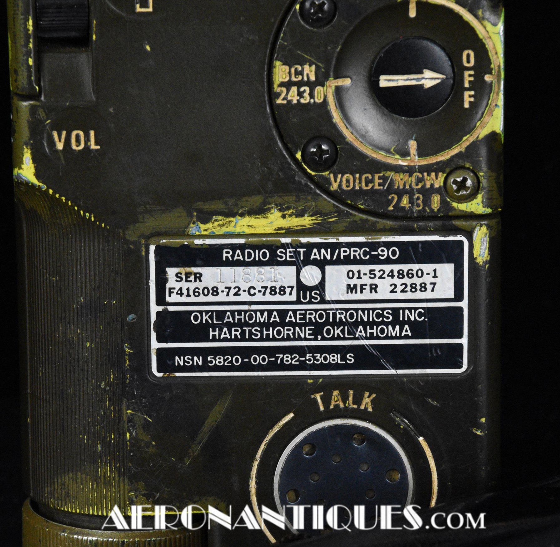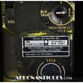 US Navy or Air Force pilot AN/PRC-90 survival radio. Dated 1972, made by OKLAHOMA AEROTRONICS. Complete with flexible/telescopic high waves antenna and earphone. Working condition with battery. Essential to complete a US Navy SV-2/B or Air Force SRU-21 survival vest.