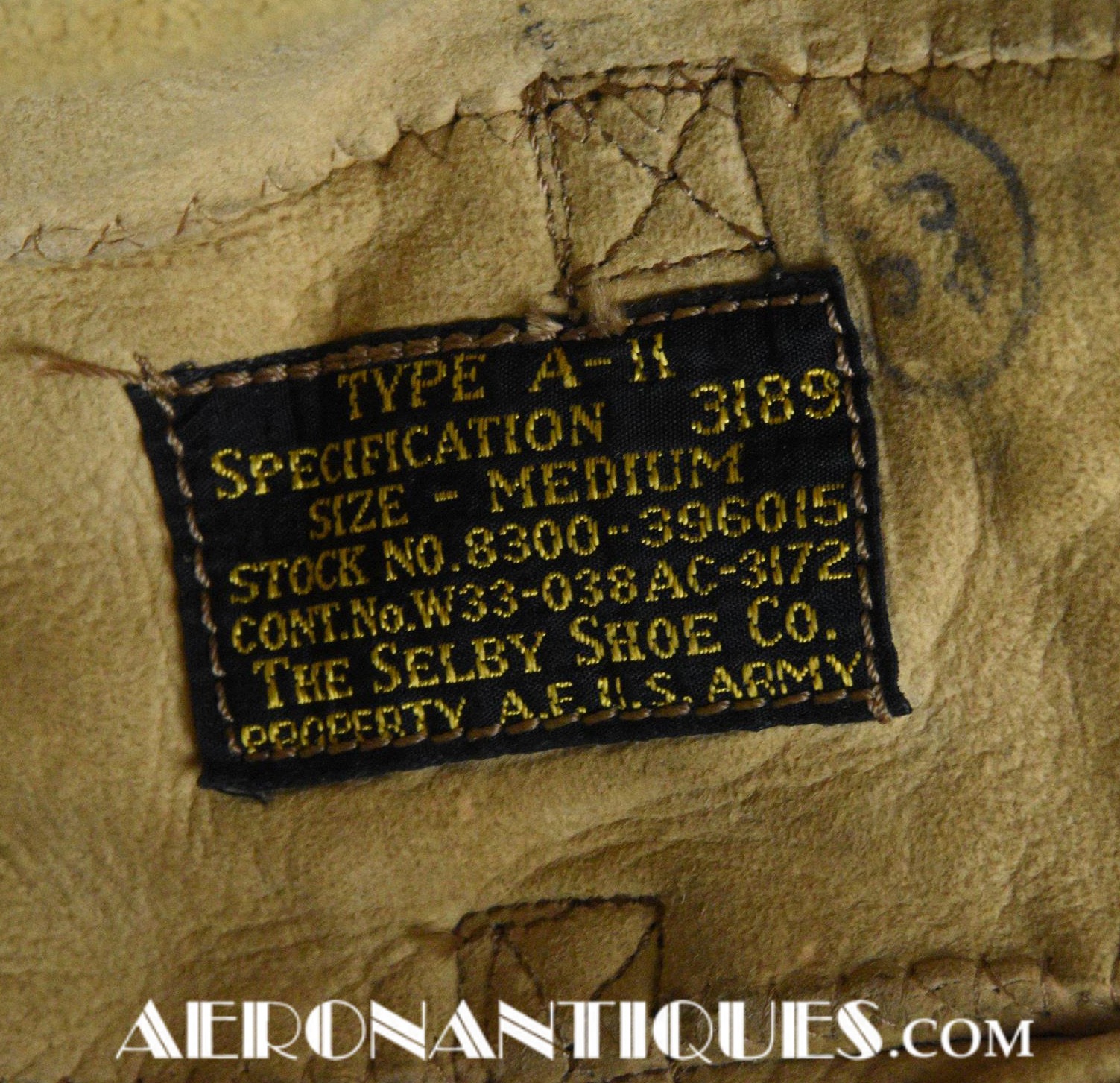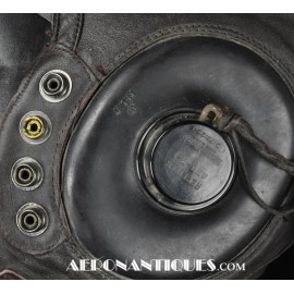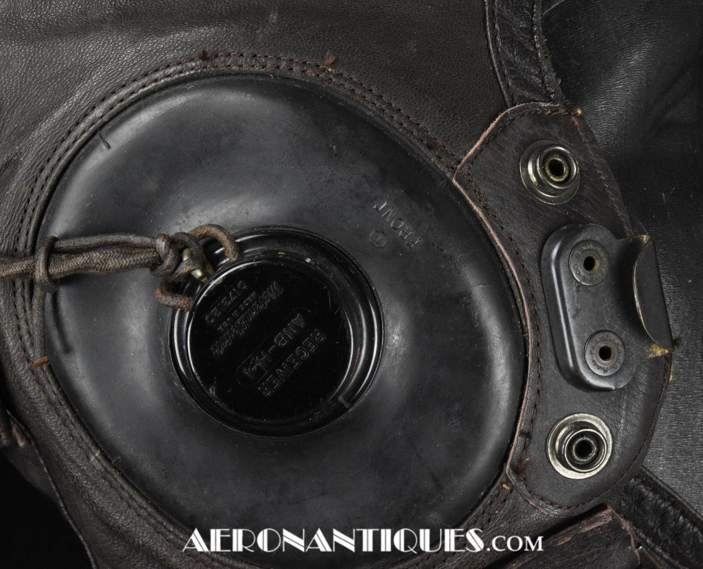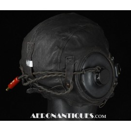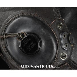 WWII US Army Air Force A-11 leather flying helmet, made by SELBY SHOE CO, size MEDIUM, complete with originally fitted ANB-H-1 earphones made by "WESTERN ELECTRIC", uncut cables, PL-354 jack. Oxygen mask attachment hook. Inner and outer Army Air Force Stamp. 3rd pattern with 4 press studs on each side. Mint Condition. Goggles, mask and display stand aren't included. Presented on a 56/57 cm head size display (display not included).