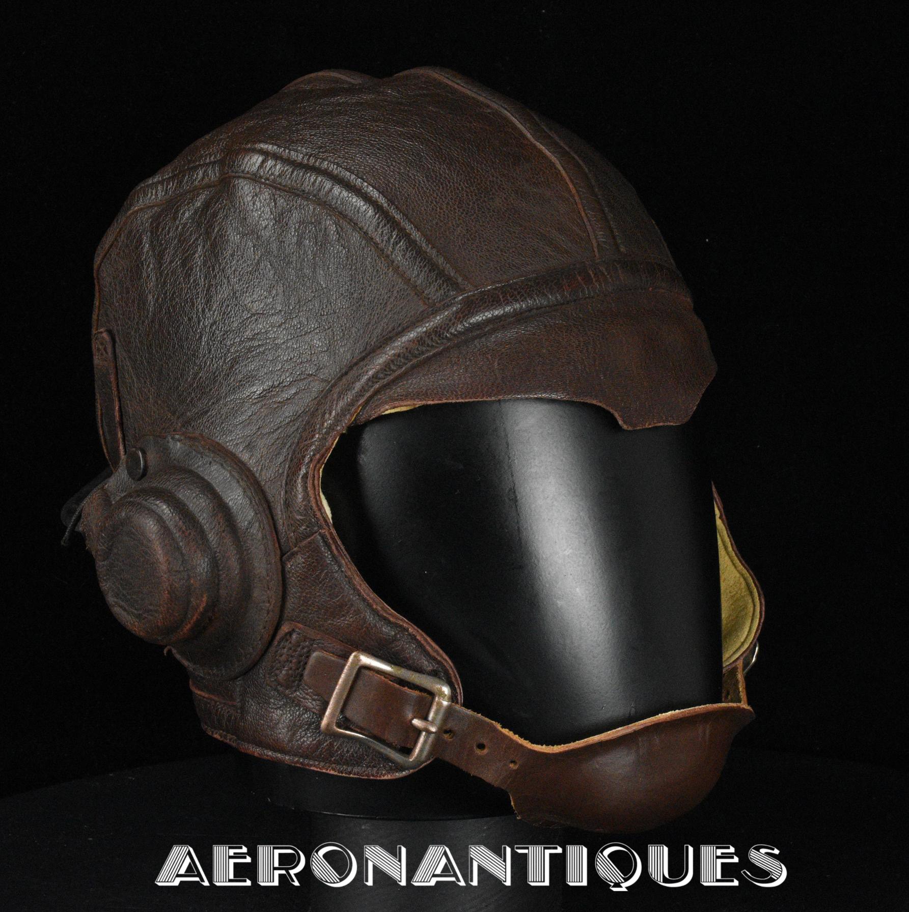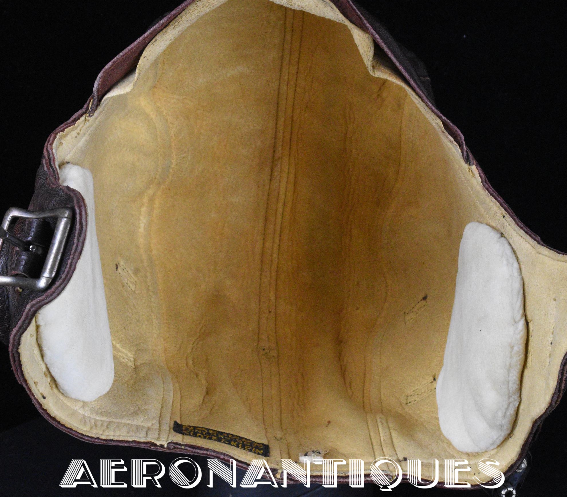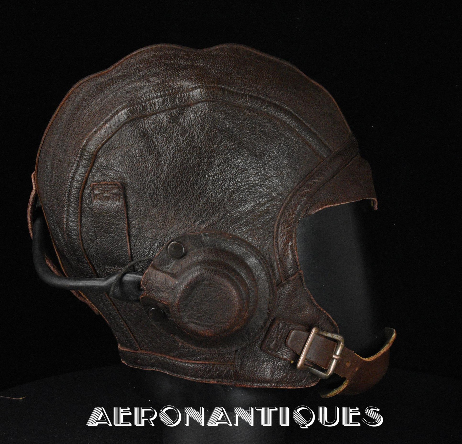 WWII US Navy or Marine Corps naval aviation pilots NAF-1092 leather flying helmet. Complete with chin cup, leather cups for earphones and TH-37 earphones made by TELEPHONICS with USN cord. Size 7 1/4 (Euro 58). Goggles and display bust aren't included. Iconic piece of WWII naval aviation fighter pilots gear.