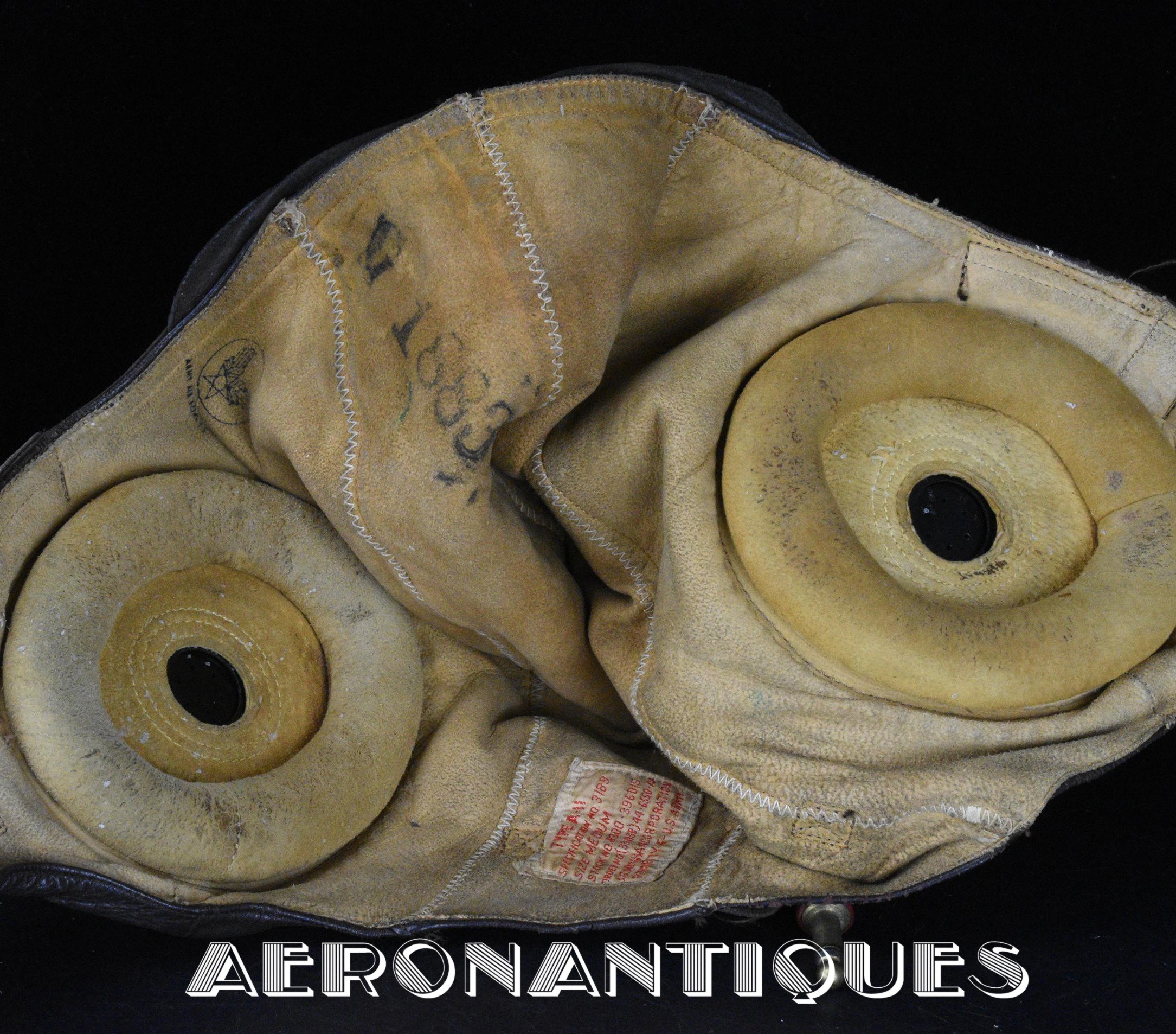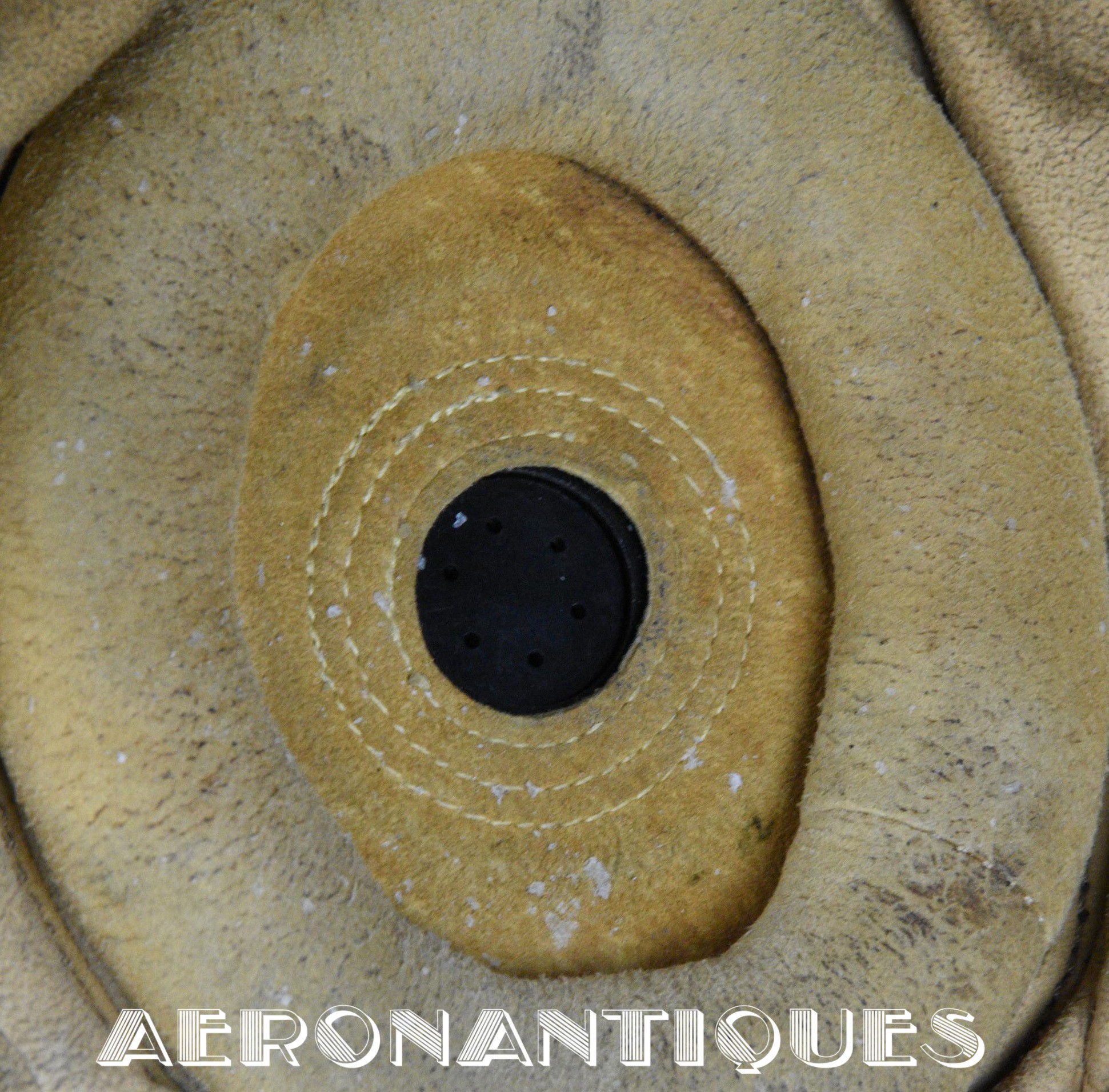 WWII US Army Air Force A-11 goatskin leather flying helmet with chamois lining, made by MENIHAN CORPORATION, size MEDIUM, complete with originally fitted ANB-H-1 earphones made by "WESTERN ELECTRIC", uncut cables, PL-354 jack. Oxygen mask attachment hook. 2nd pattern with 3 press studs on each side. Excellent condition.