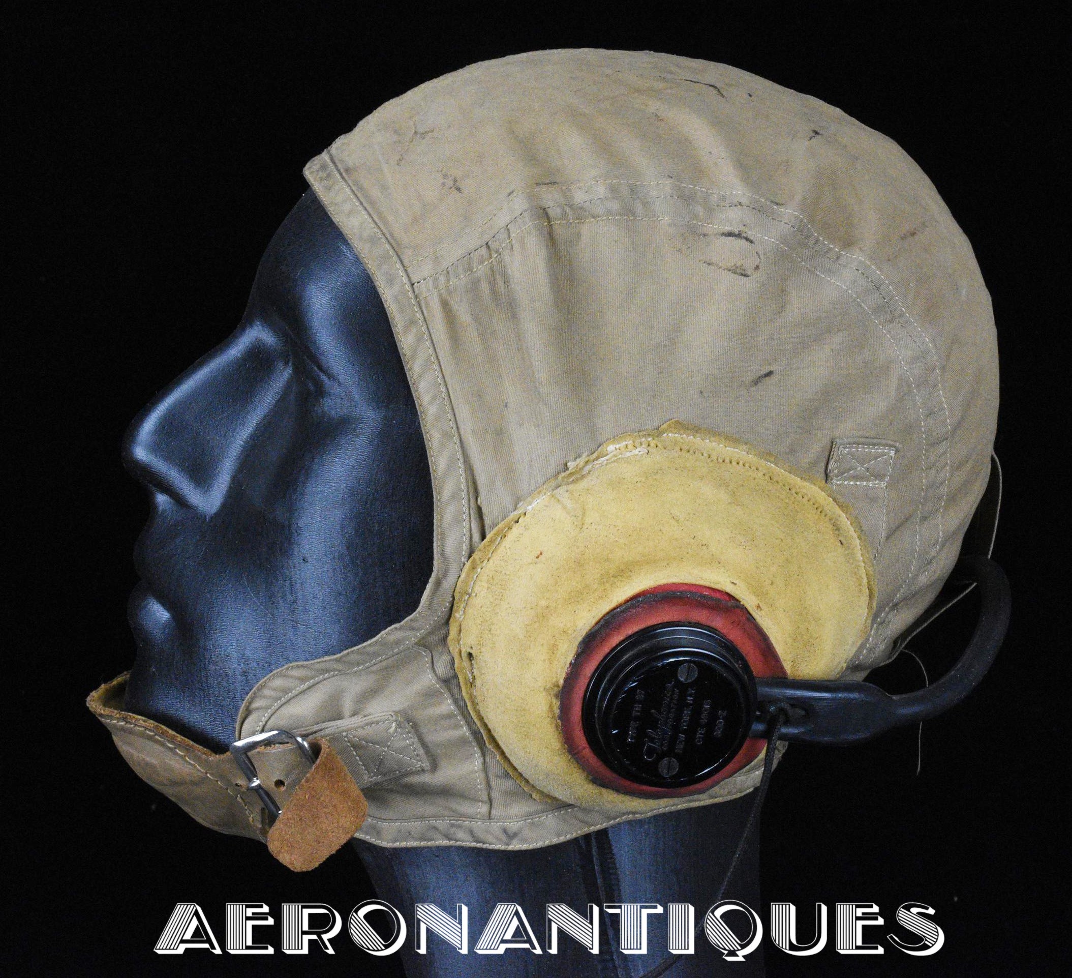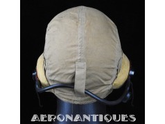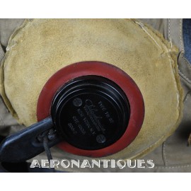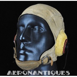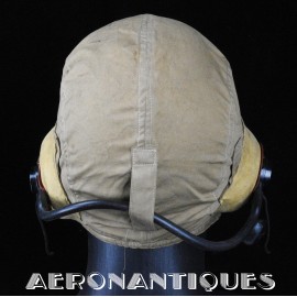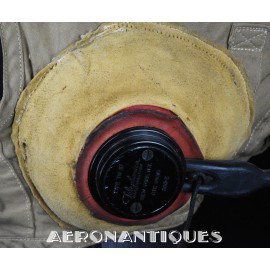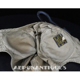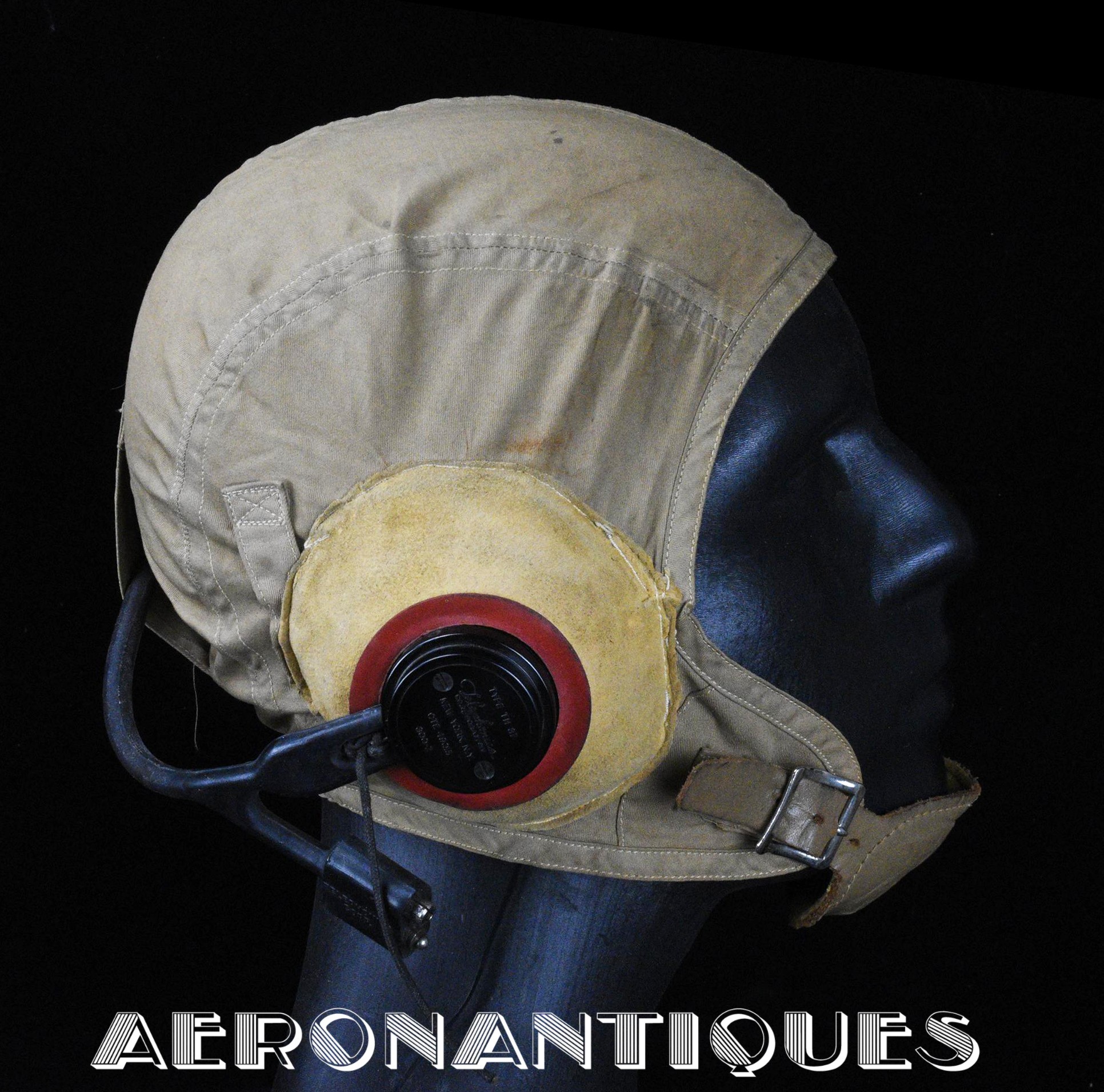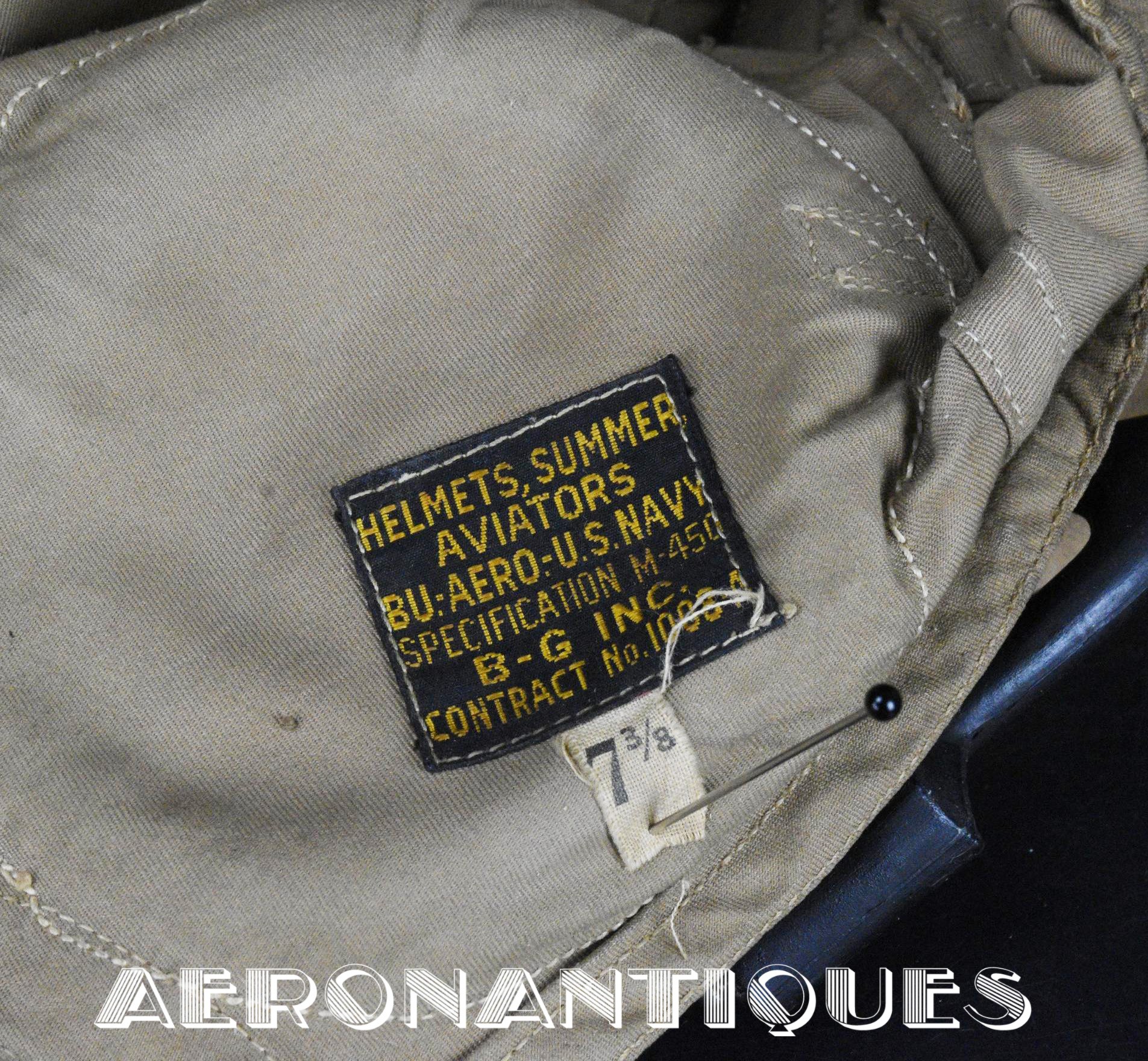 WWII US Navy or Marine Corps naval aviation pilots M-450 summer flying helmet. Made by BG INC. Rigger modified with Complete with chamois lined chin cup (rigger made the BG chin cups have no lining) , chamois covered TC-66 rubber and foam cups with TH-37 earphones made by TELEPHONICS. Size 7 3/8 (58-59 cm). Goggles and display head aren't included. Iconic piece of WWII naval aviation fighter pilots gear.