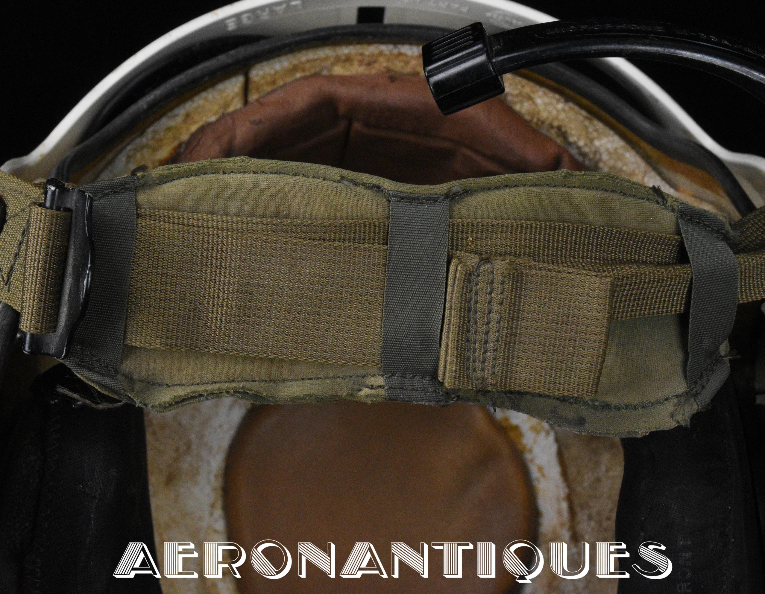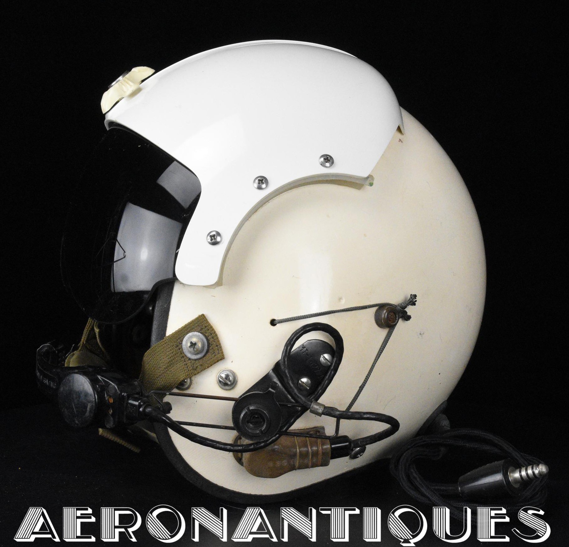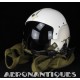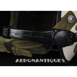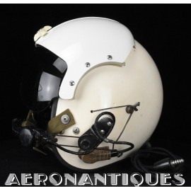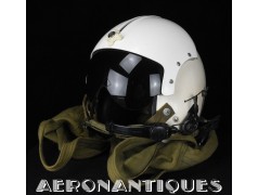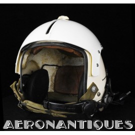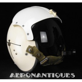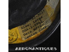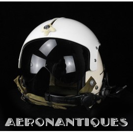 APH-5 Army type helicopter crew flight helmet, made by GENTEX. Dated 12/65. Size LARGE. 2nd pattern with process coloured white plastic visor housing. Complete with boom mic, headphones, cable and U-93A/U jack. Leather covered cushion pads. Excellent condition. Typical period equipment for helicopter crews during the early years of Vietnam war. Most pilots and door gunners will camouflage them with OG-107 paint for obvious survival reasons. These helmets will be superseded by the green ones from year 1966-67. Also included, the original carrying bag.