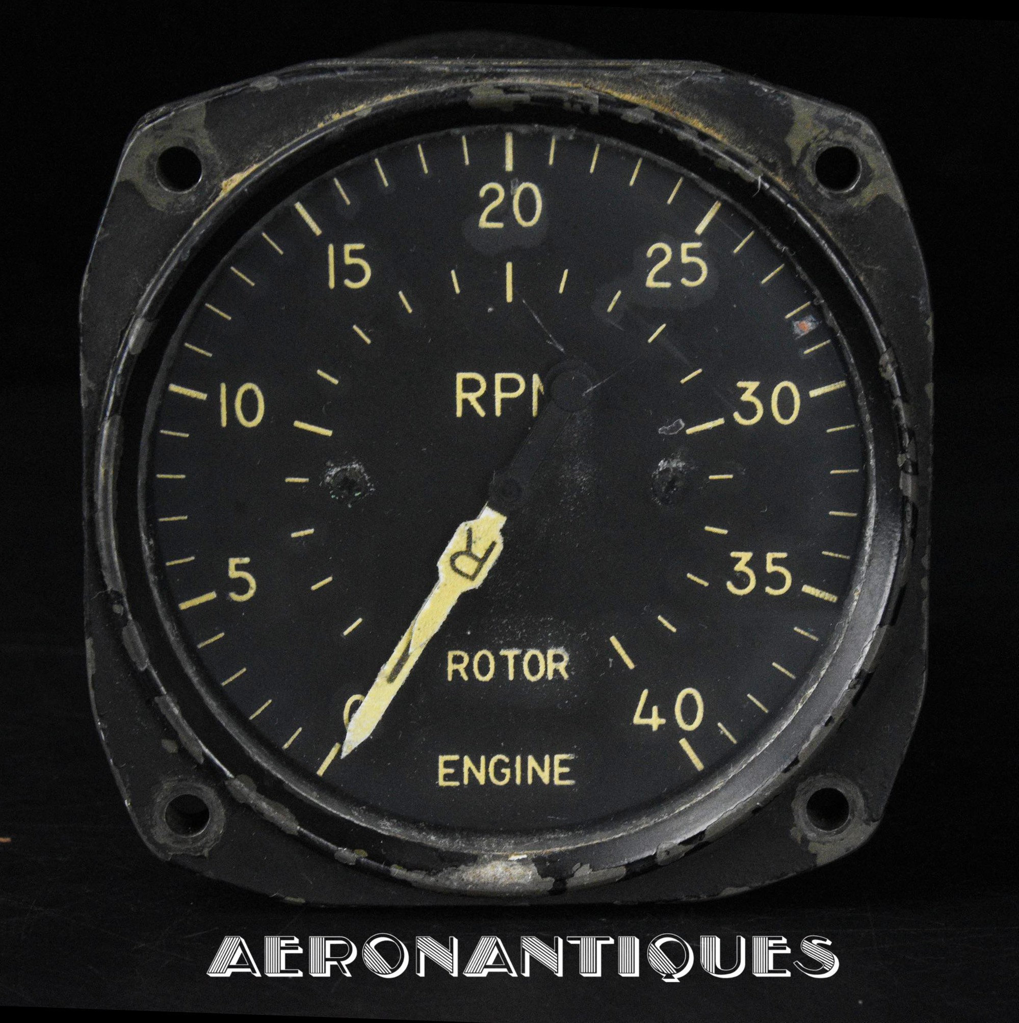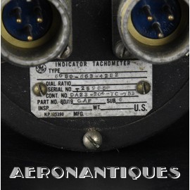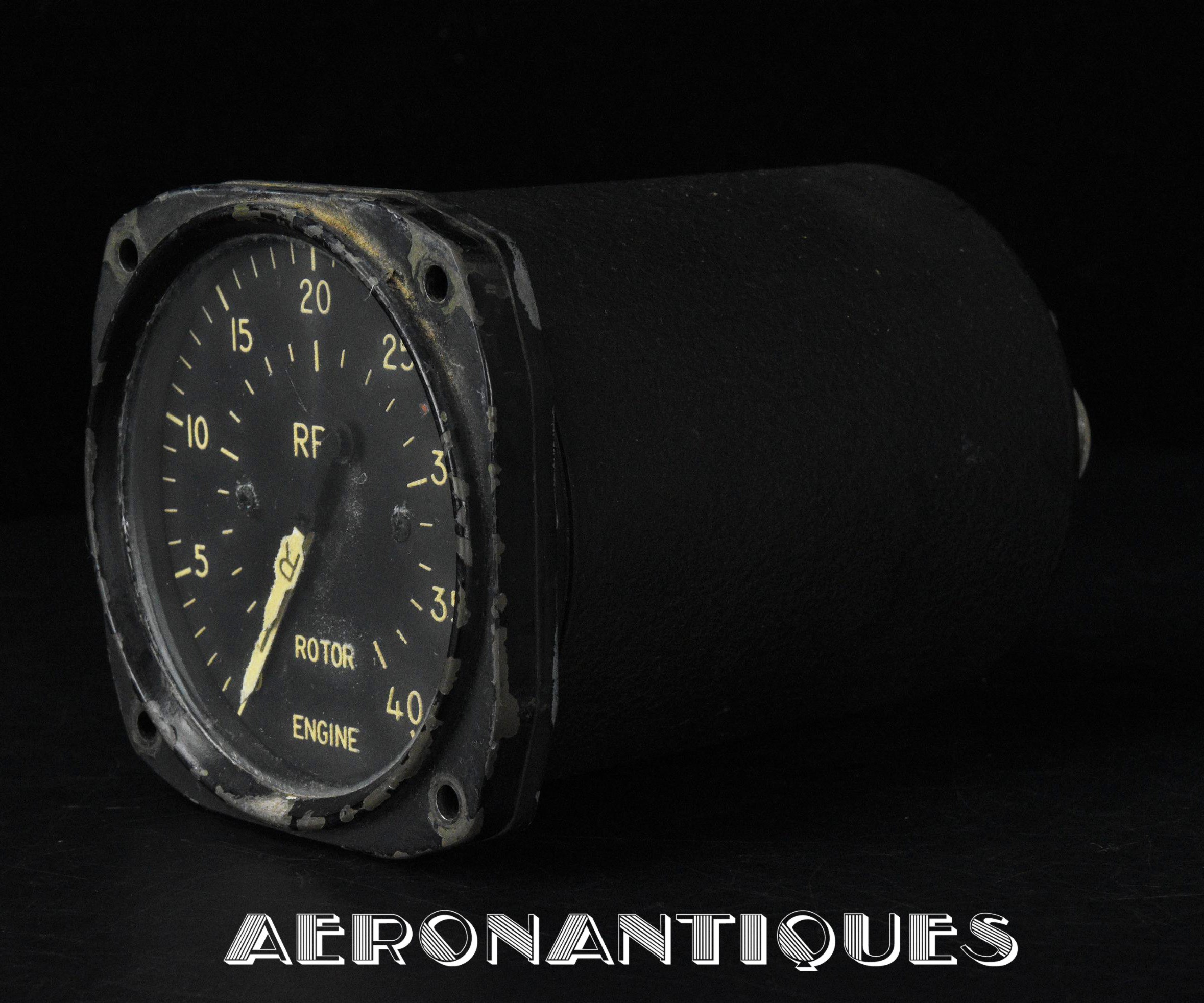 Dual-reading tachometer from the legendary US Army and Navy Sikorsky H-34 helicopter, 1950s manufacture, graduated from 0 to 4000 with a dual needle indicating engine and rotor speed. Diameter 85 mm. Depth 130 mm. A beautiful display piece.
