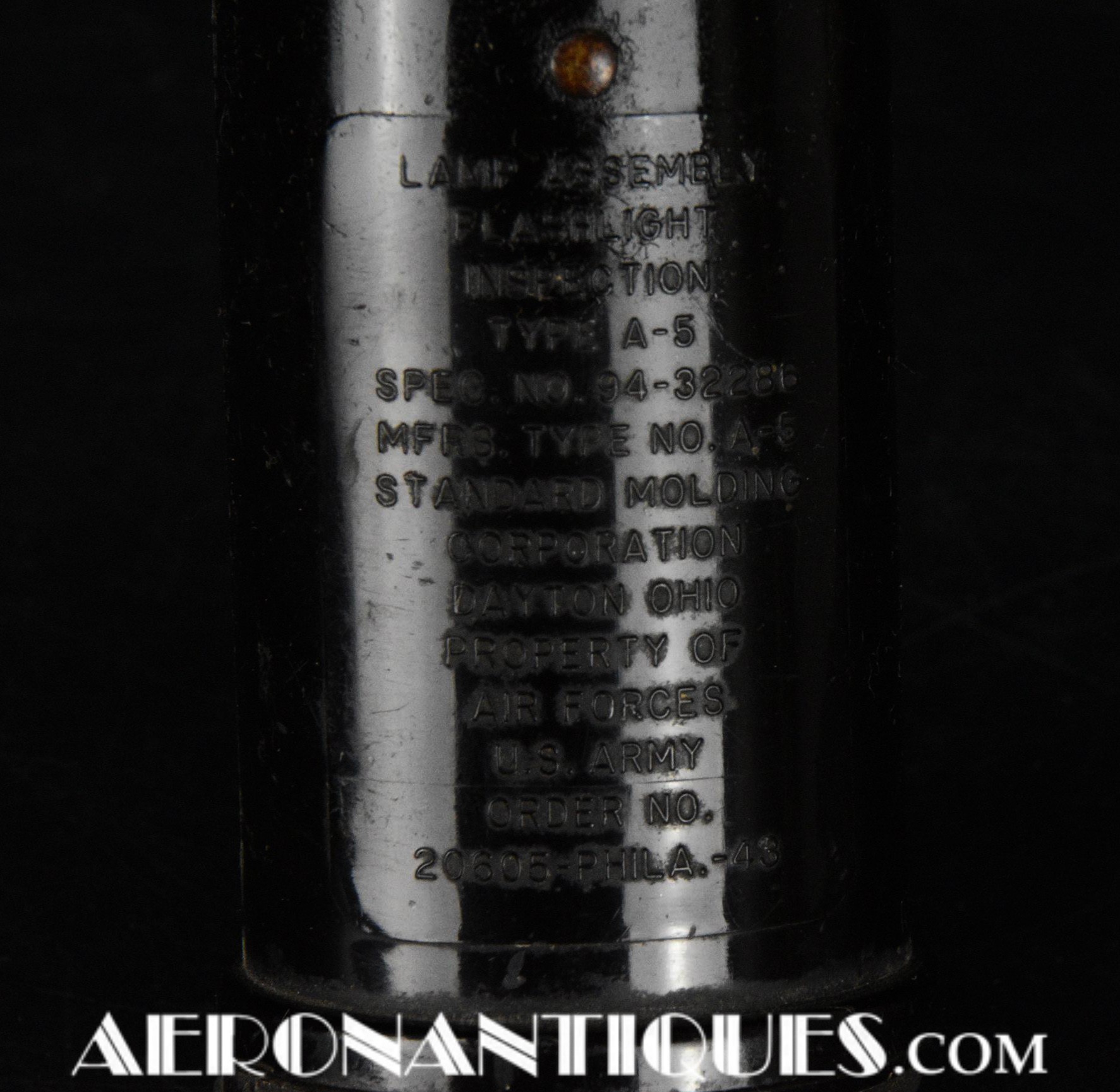 US Army Air Force Type A-5 inspection lamp, made of black Bakelite with a flexible gooseneck, USAAF WWII contract of 1943. Manufactured by SMC (Standard Molding Corp). Length: 51 cm.