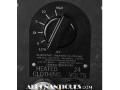 Rheostat for electrically heated flying suits (type F-1 and F-2). American manufacture by General Electric. 1943 contract. It comes with the very rare cord connecting the heating assembly to the adjustment module. Mint condition.