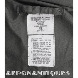 NOMEX CWU-27 flame-retardant flight suit. Size 40R. Dated 1989. TACTICAL AIR COMMAND patch on right breast. Major ranks on shoulder straps. Excellent condition, with no stains or tears. All zippers are in working order.