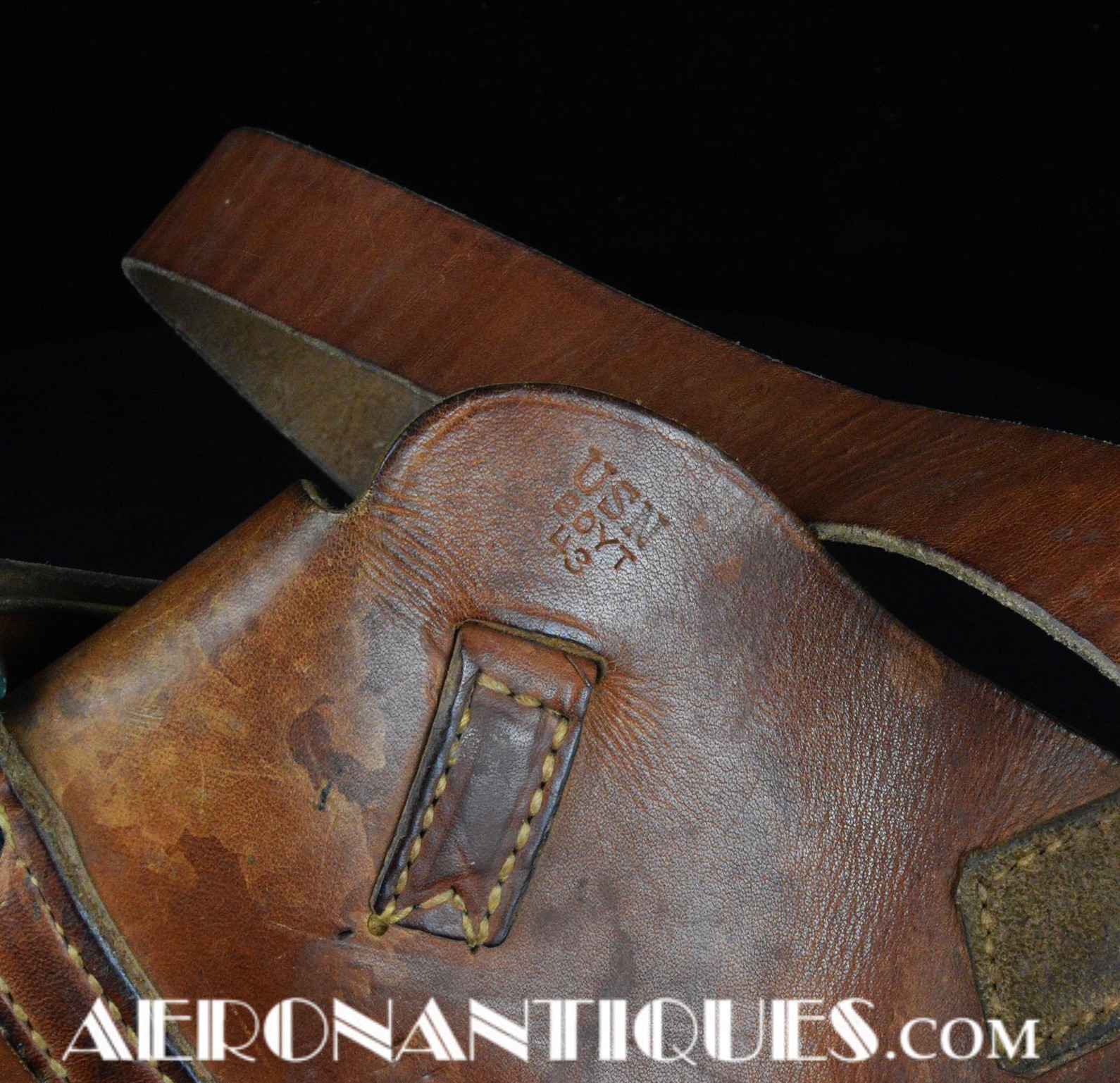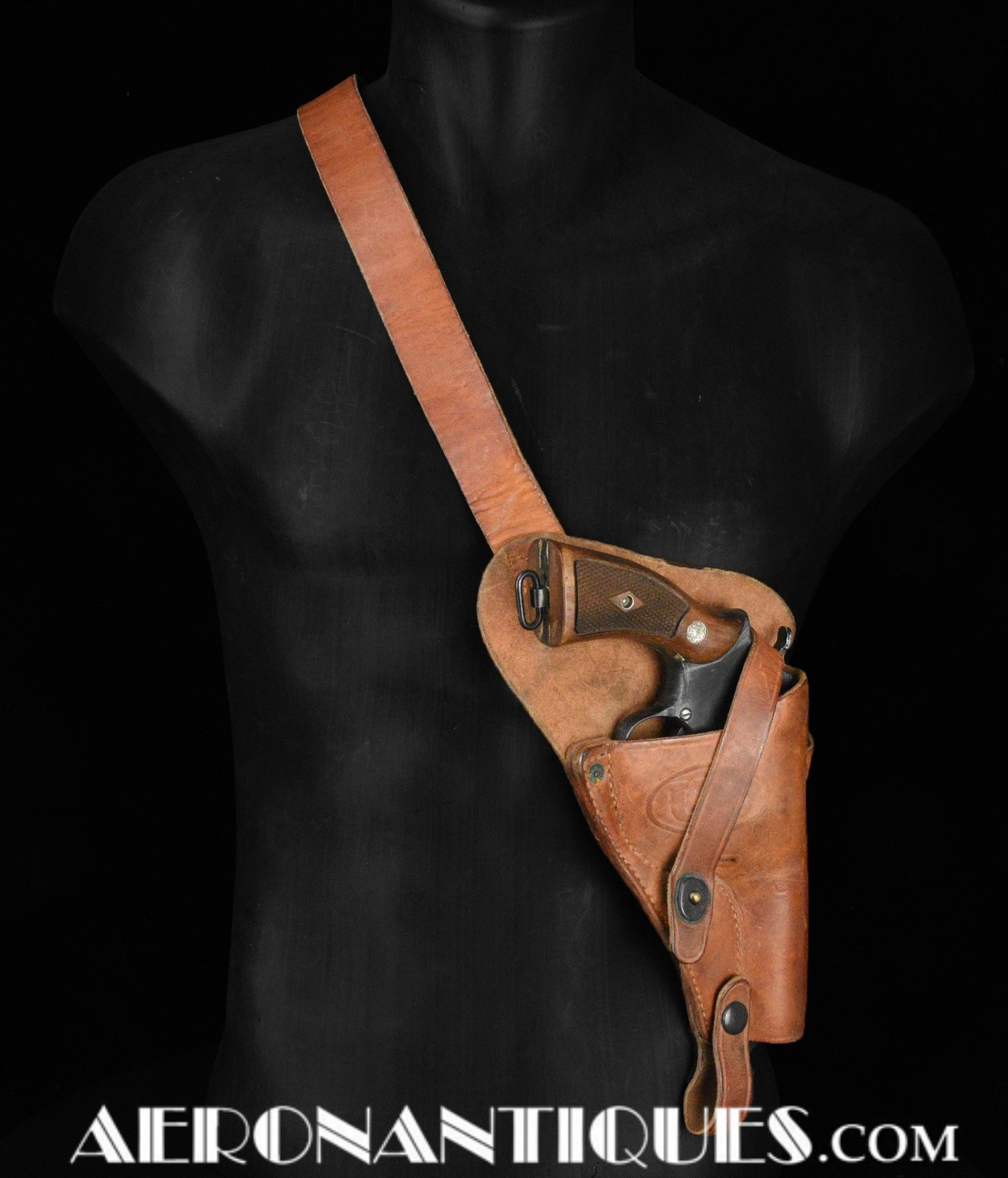 US Navy pilots Smith & Wesson Victory revolver leather shoulder holster. Dated 1943. Made by BOYT. Complete with adjusting buckle and belt securing strap. Revolver isn't included.