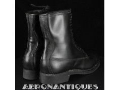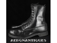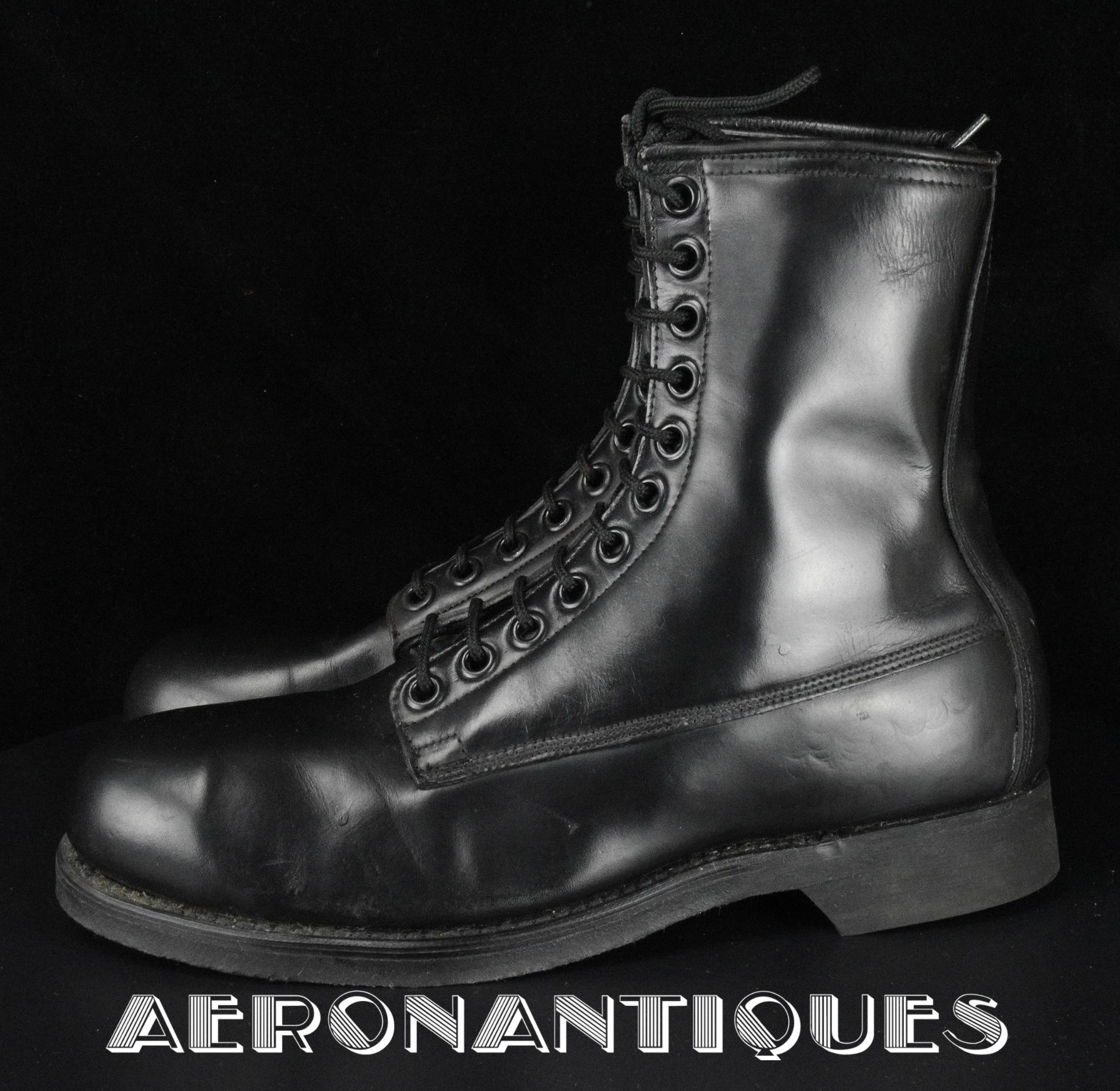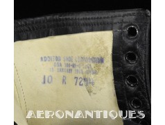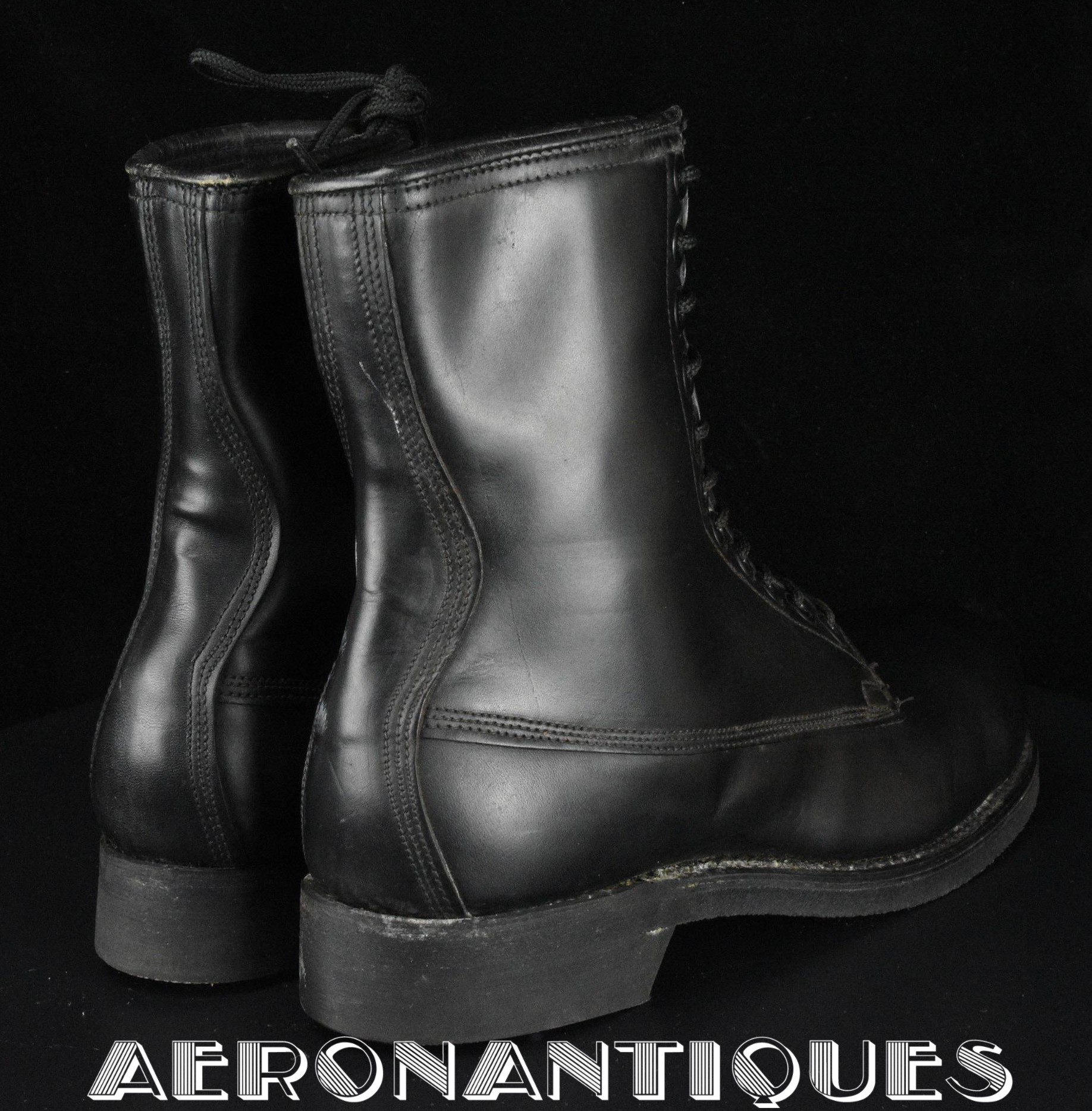 Vietnam era black leather US Navy or Air Force Pilots regulation flight boots. Dated 1969. Made by ADDISON SHOE CO. Special non skid rubber soles for oily runways. Size 10R. Mint condition.