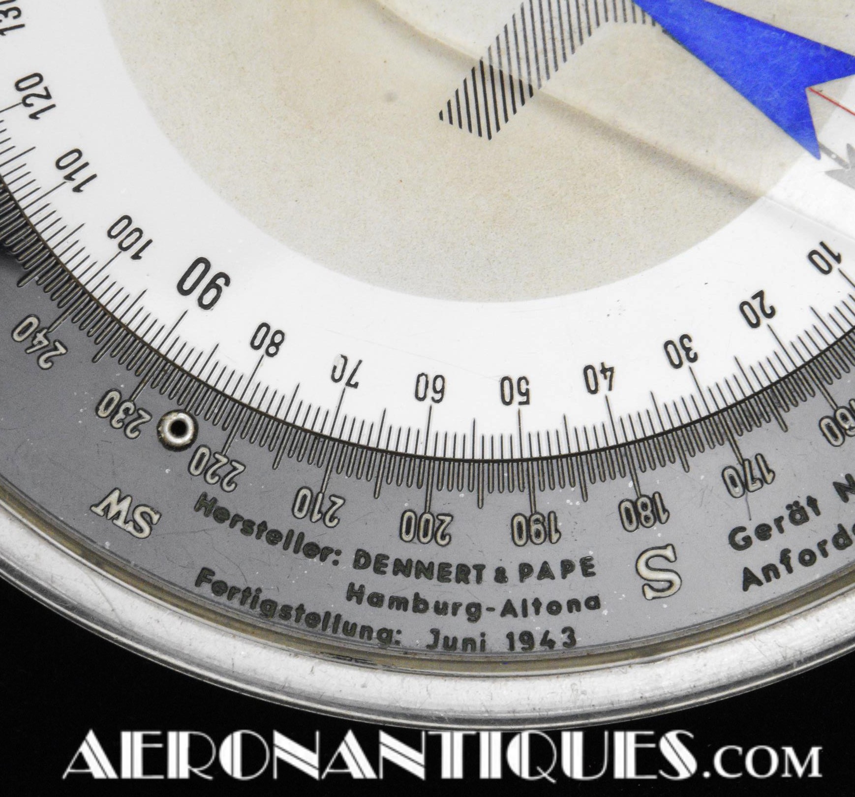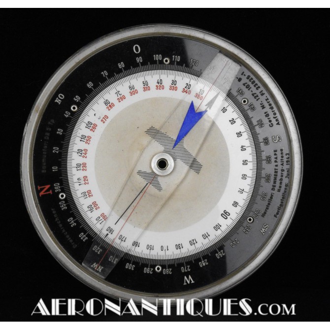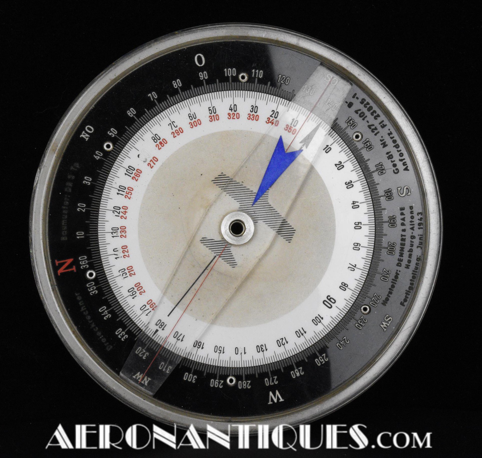 WWII German Luftwaffe two-sided calculating wheel that allows triangular calculations of winds using the sine theorem. Type DR-3 dated 1943 made by DENNERT & PAPE. Diameter: 150 mm.