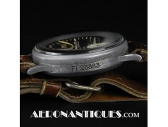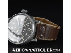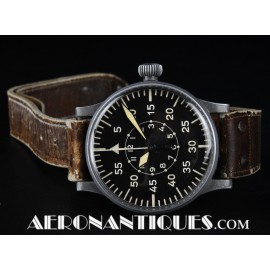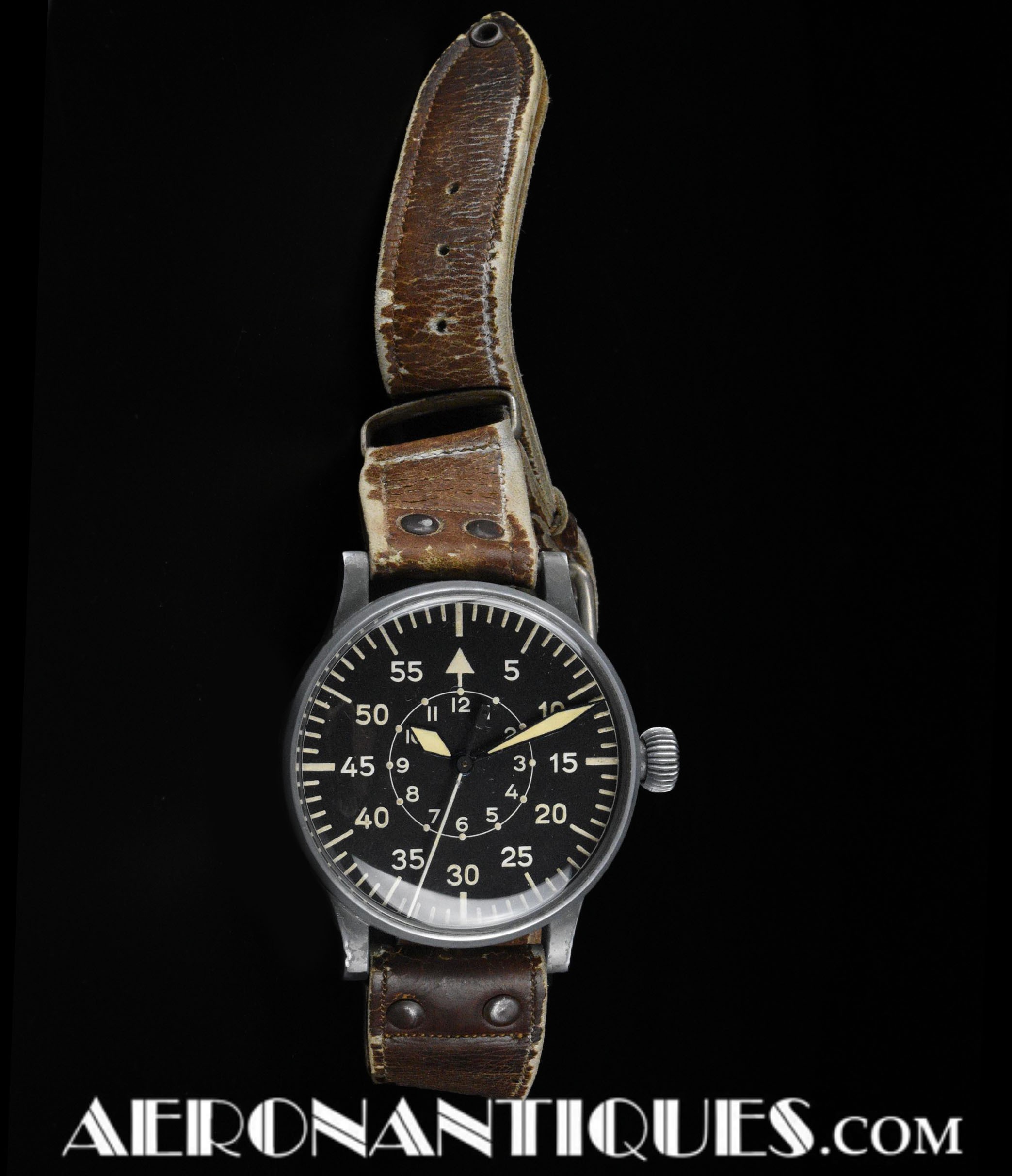 Outstanding 1941 Luftwaffe B Uhr (Beobachtungs-uhren) observer's watch, type Fl 23883, German made by STOWA, built by Walter Storz in Pforzheim, pocket watch 20 jewels manual winding movement with setting crown at 3 o'clock, centre seconds. Inner 12 hour ring read and graduated circumference for seconds and numbered every five minute point (B type, 1941 on). 55 mm diameter. Original brown wristband in its original length to wear over flight suits and gloves. Superb item in outstanding and working condition. Serviced by Master Watchmaker in 2024.