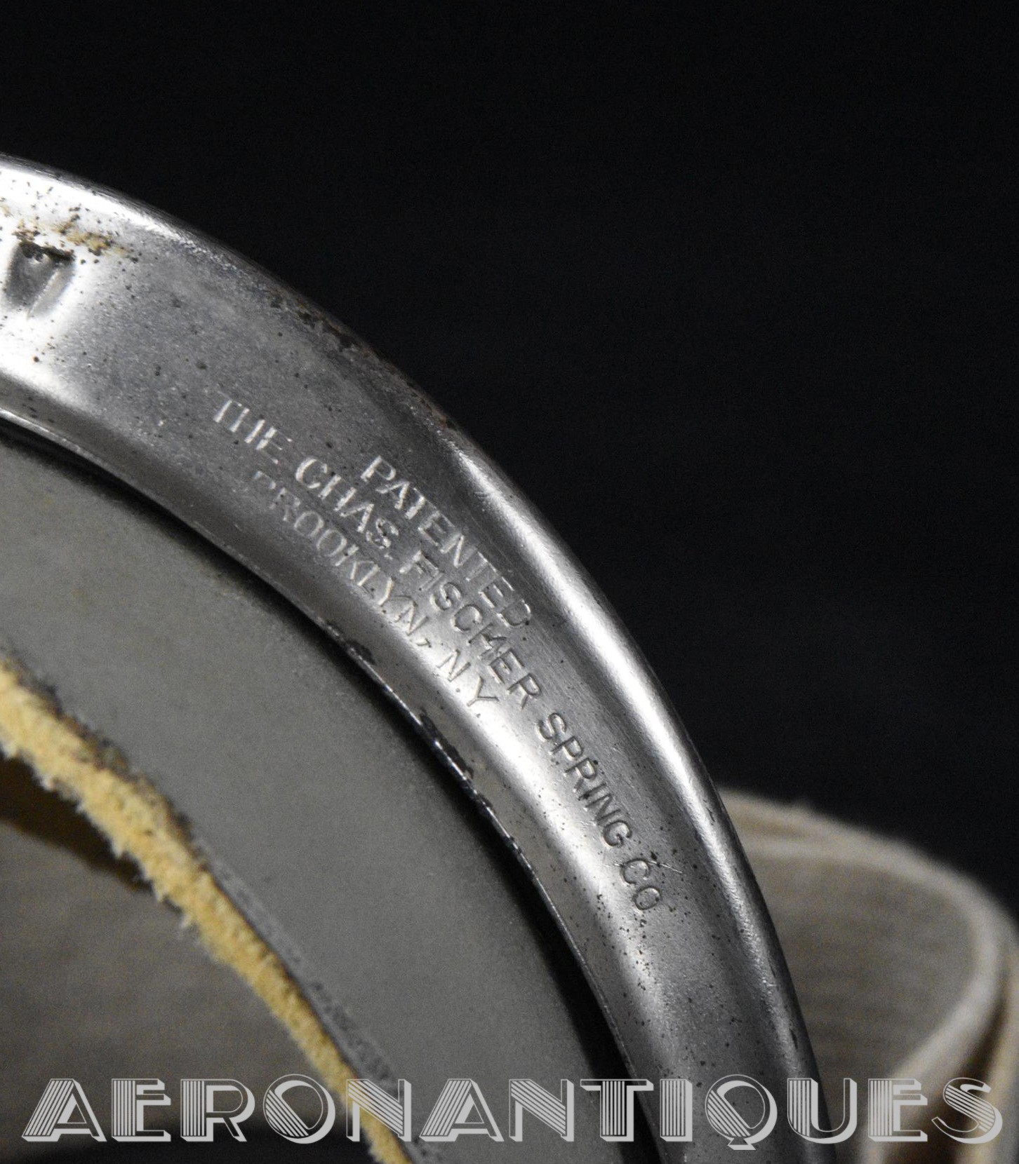 WWII US Army Air Force flying goggles AN-6530 type, one piece second pattern made by CHAS FISCHER SPRING CO. Amber mineral glass lenses. grey rubber mask lined with chamois leather. White elastic headband with adjustment buckle. Rubber is pliable without any cracks. Laundry Number on elsatic band.