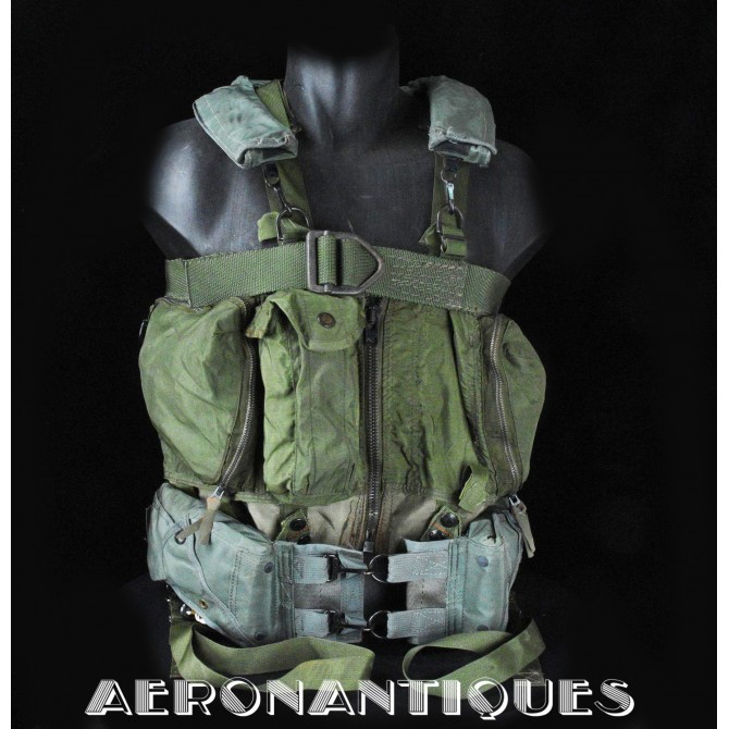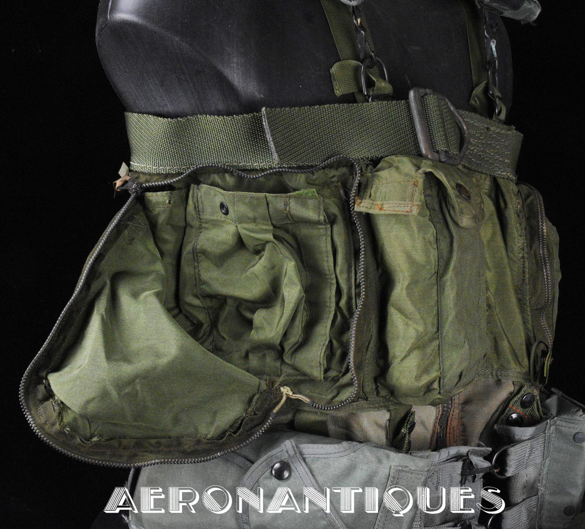 Nice Vietnam era US Navy flying personnel set consisting of LPA-2 life preserver and an SV-2A survival vest, both dated 1970. The life preserver is complete with inflation bladder and triggers, the gas cylinders have been removed for shipping. The SV-2A vest has been modified with the addition of an axillary strap and D-ring for helicopter extraction in case of ejection at sea or on land. It is in its original configuration with uncut straps.