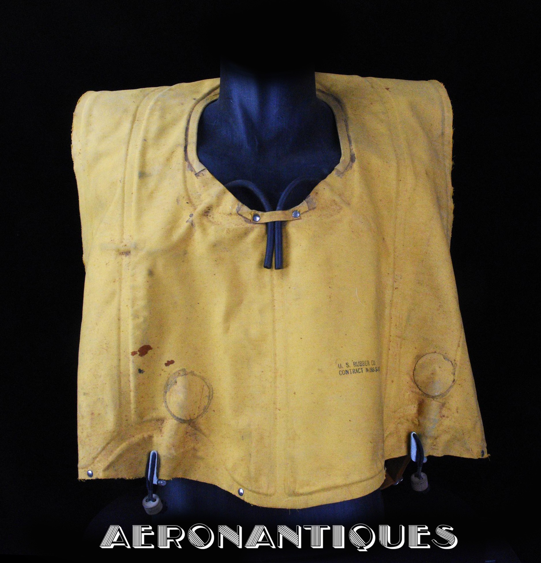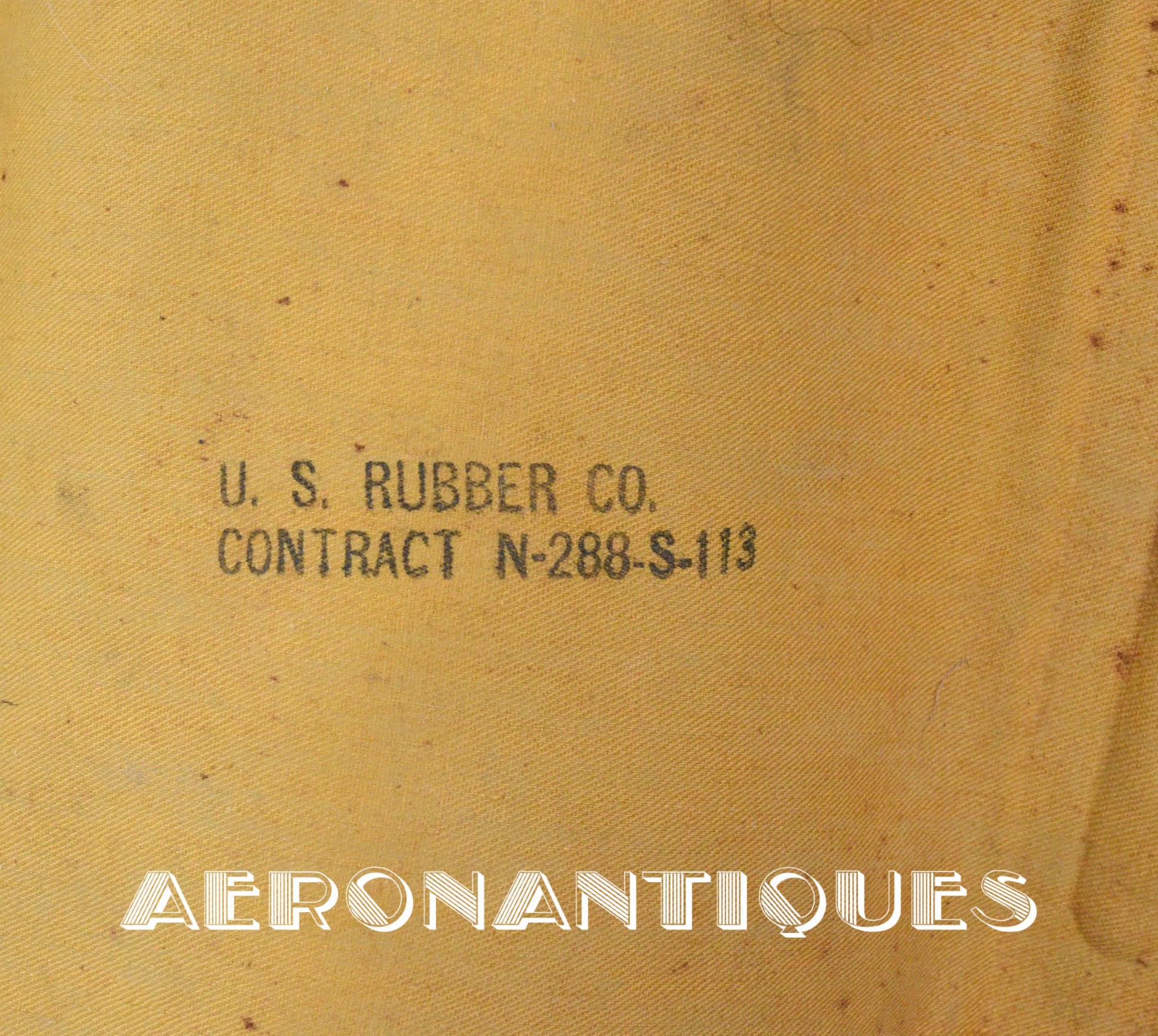 Extremely rare MK-I type life jacket, also known as a "Mae-West," for US Navy pilots and crew. Manufactured in the early 1940s by the US firm RUBBER CO. Complete with all straps, triggers, and emergency inflation tubes. Exceptional condition, totally pliable.