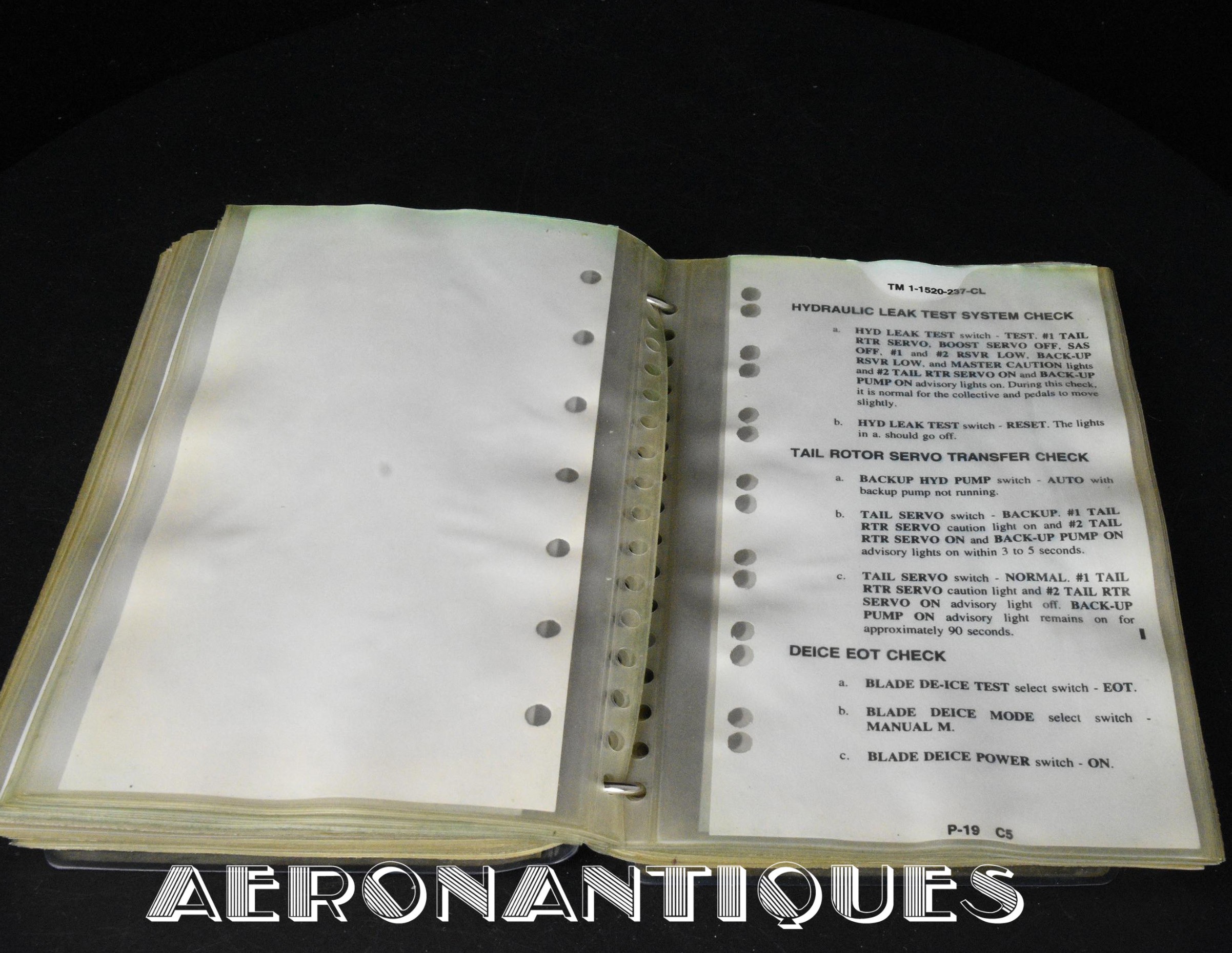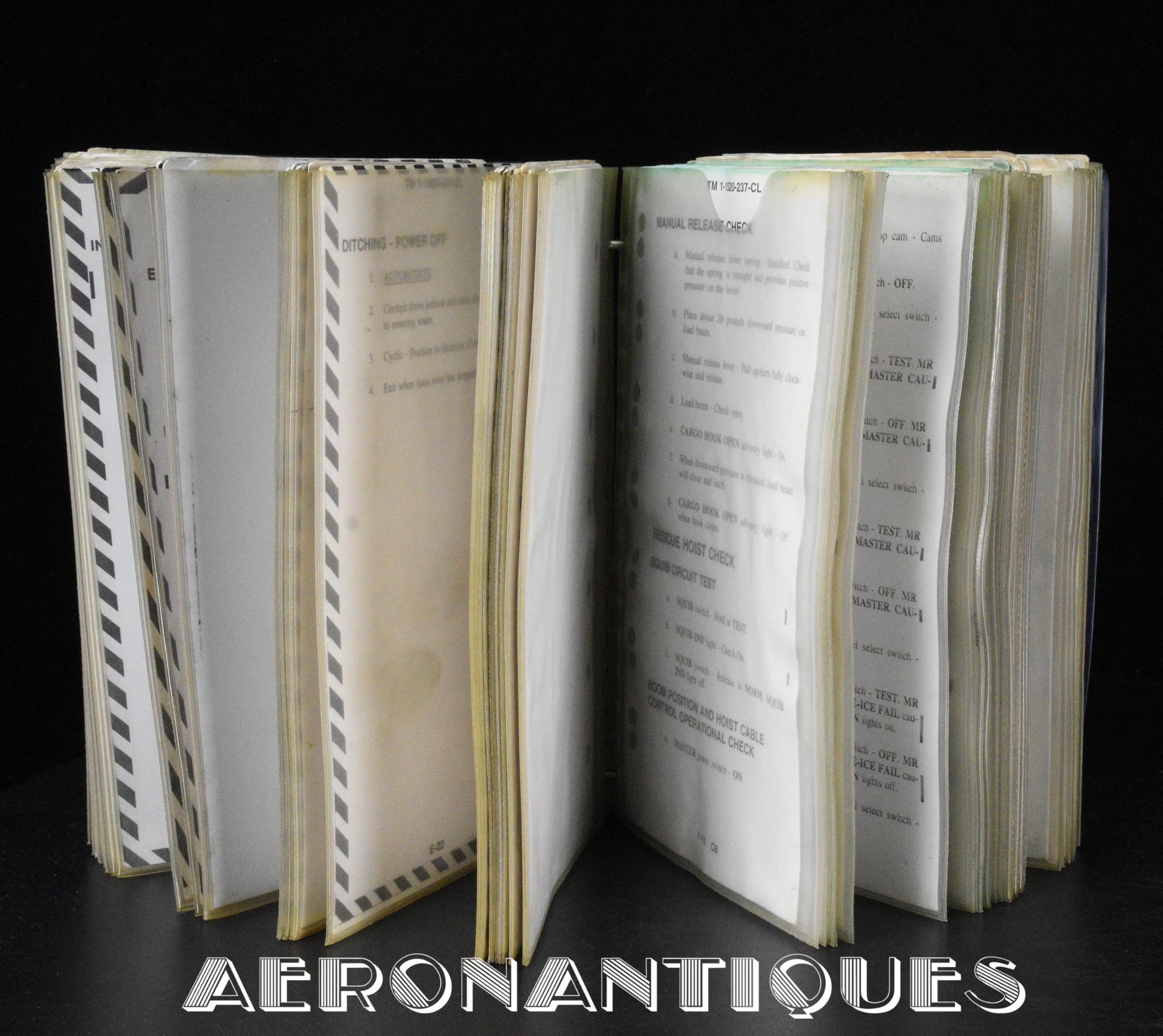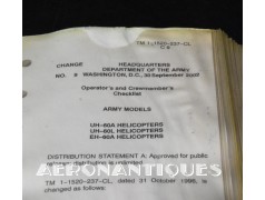 Huge original US Army's UH-60 Black Hawk helicopter checklist. Dimensions 20.5 cm x 14 cm. Dated 1996 with 2002 updates. A must for all enthusiasts of this iconic helicopter, made famous by ridley Scott's movie. More than 3 pounds of documentation.
