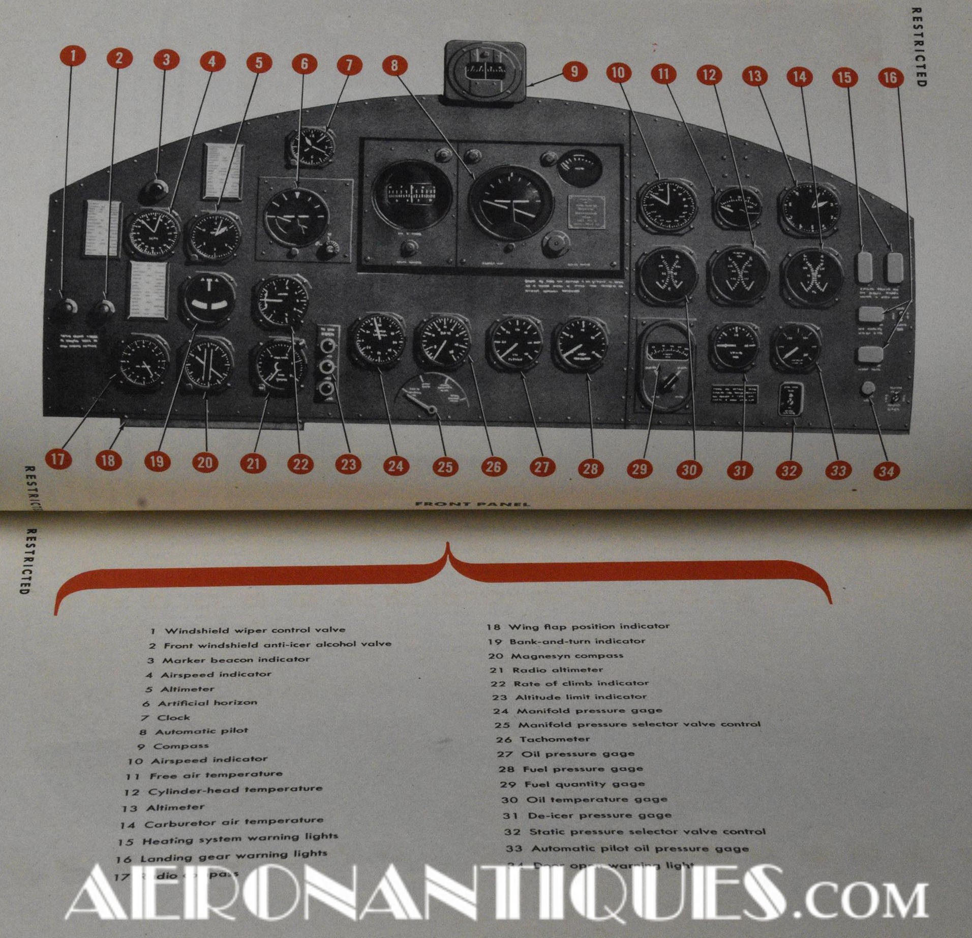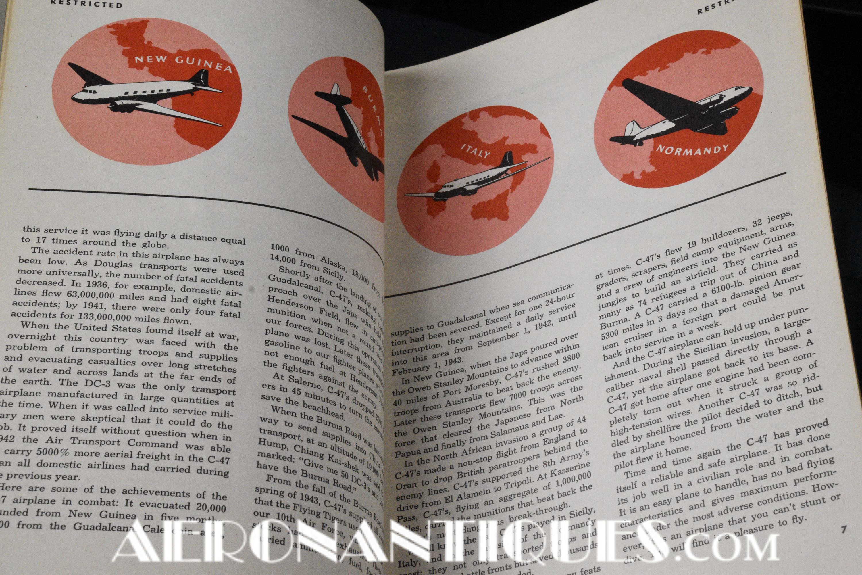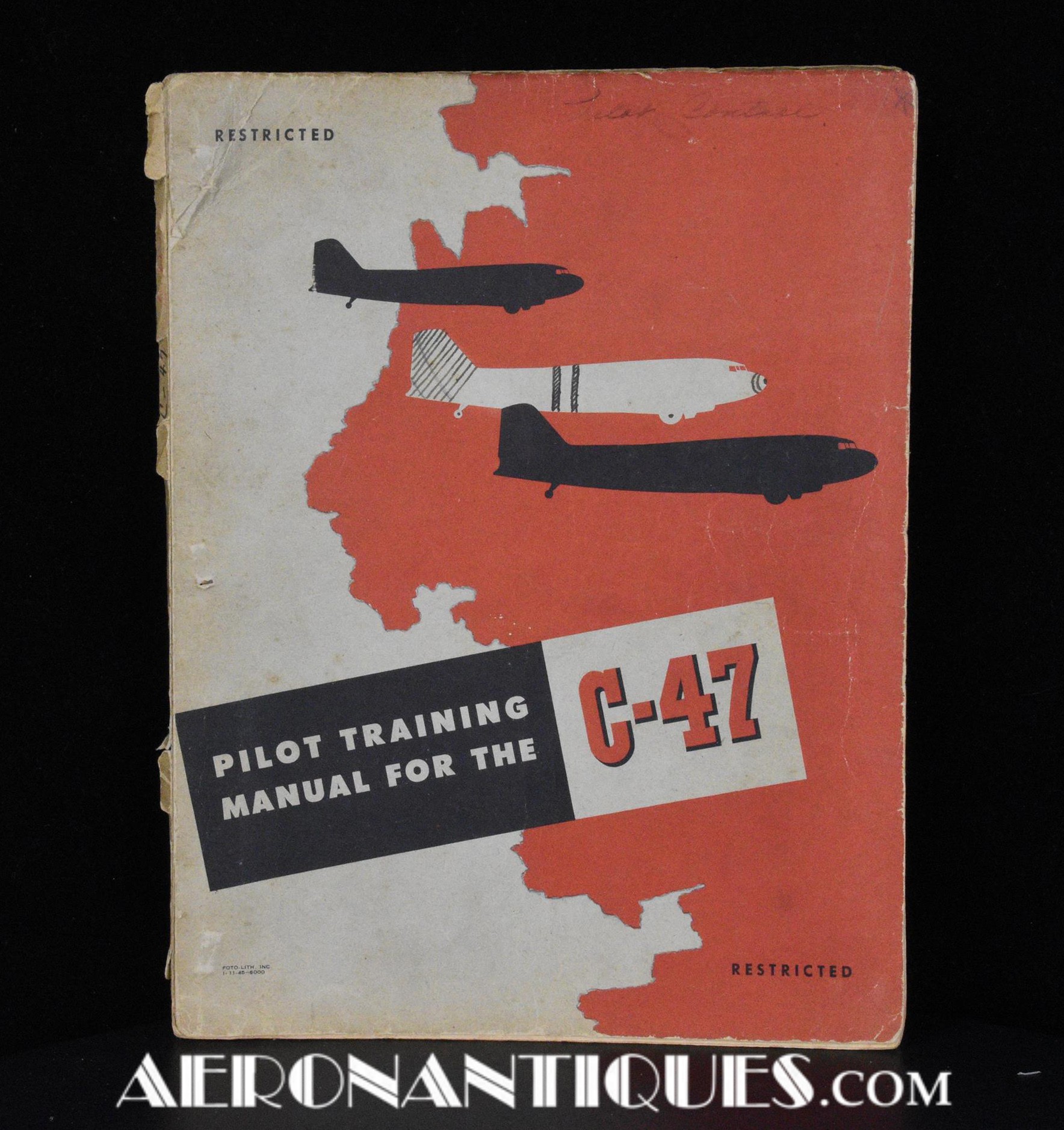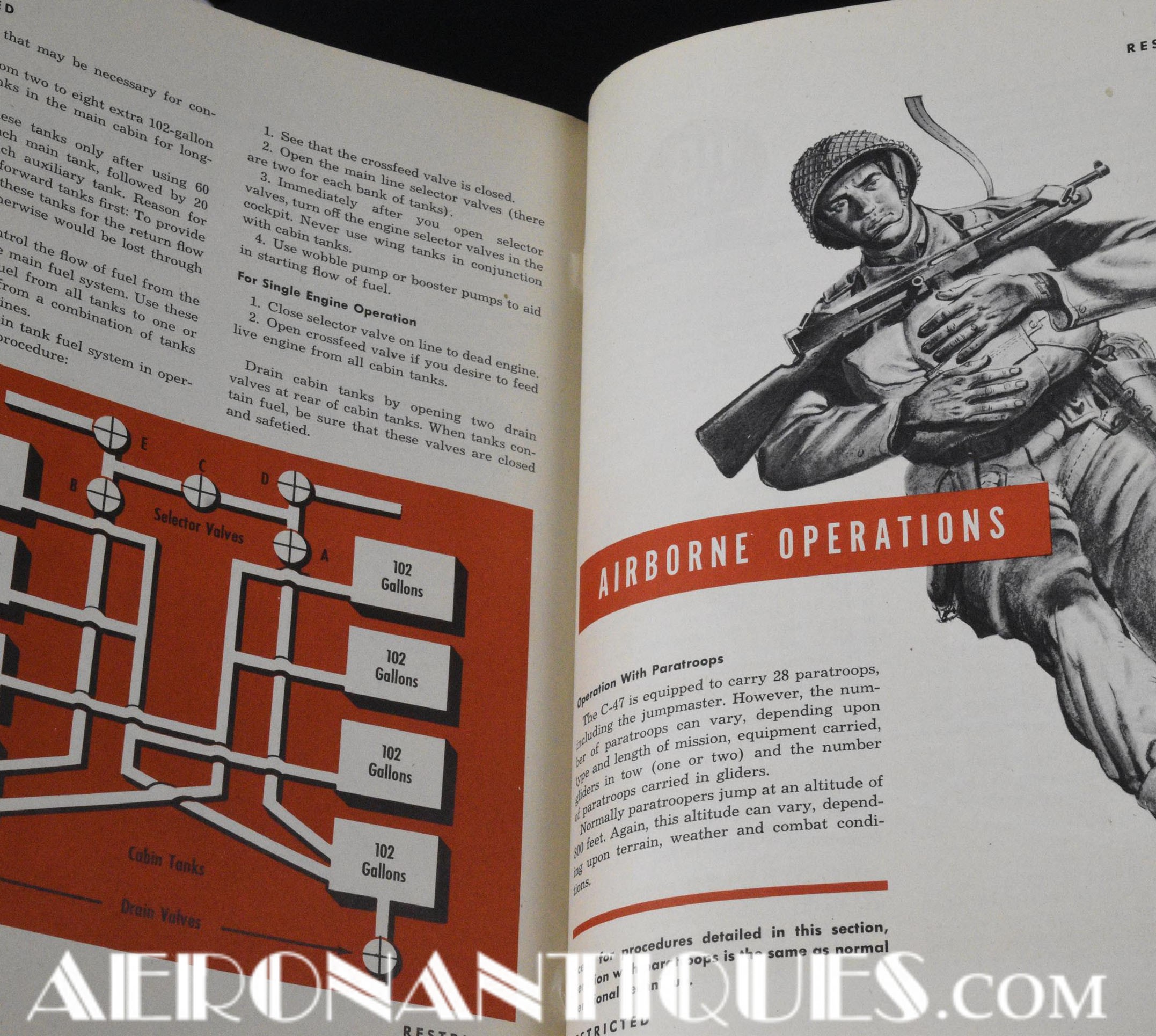 January 1945 dated original print of the WWII US Army Air Force C-47 Dakota Skytrain pilot training and flight manual. Dimensions 27,5 cm X 20,5 cm. A total of 110 pages presenting the aircraft and its different flying technics with numerous colour plates. A great source of information on this iconic US Army Air force WWII transport aircraft.