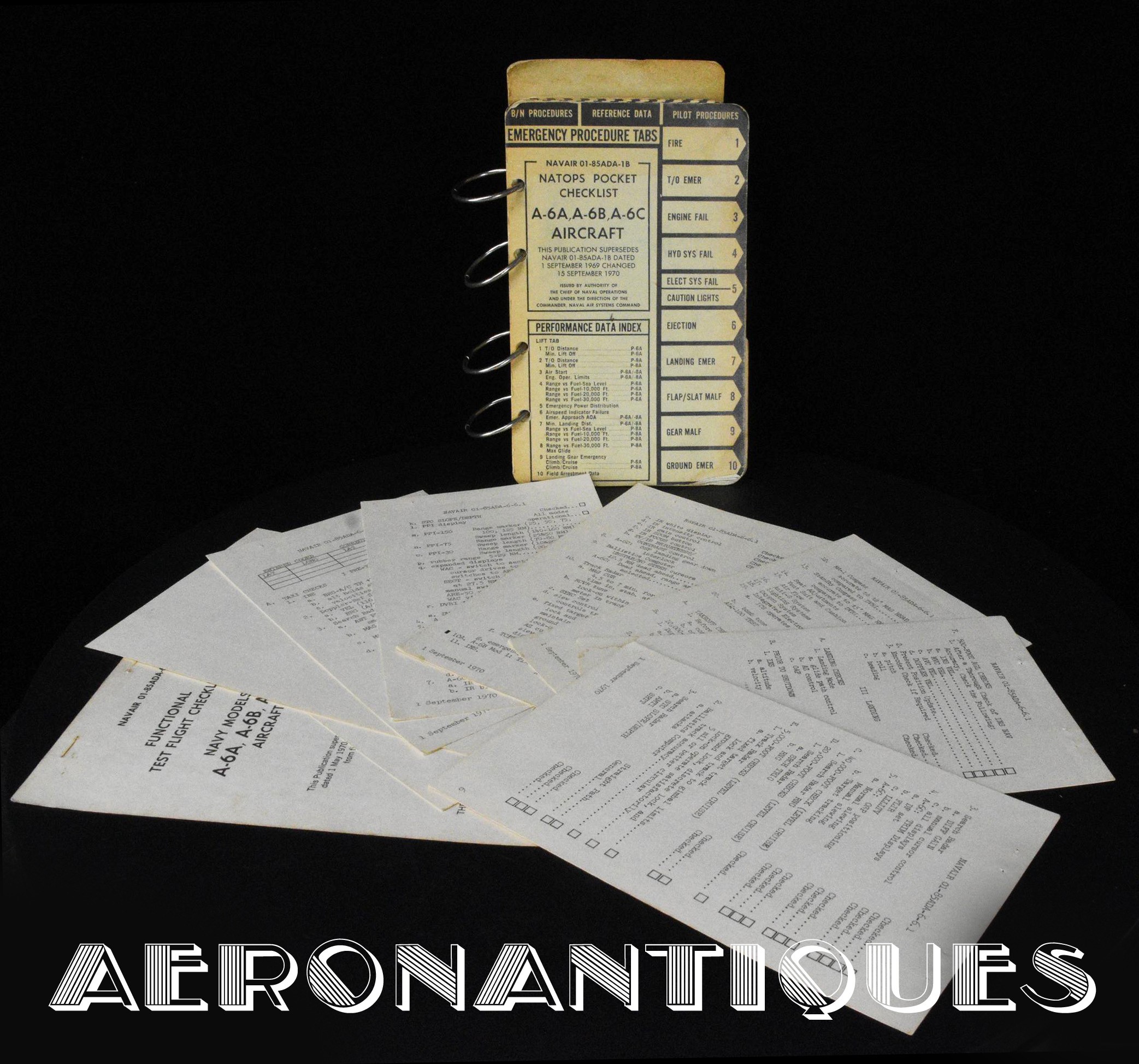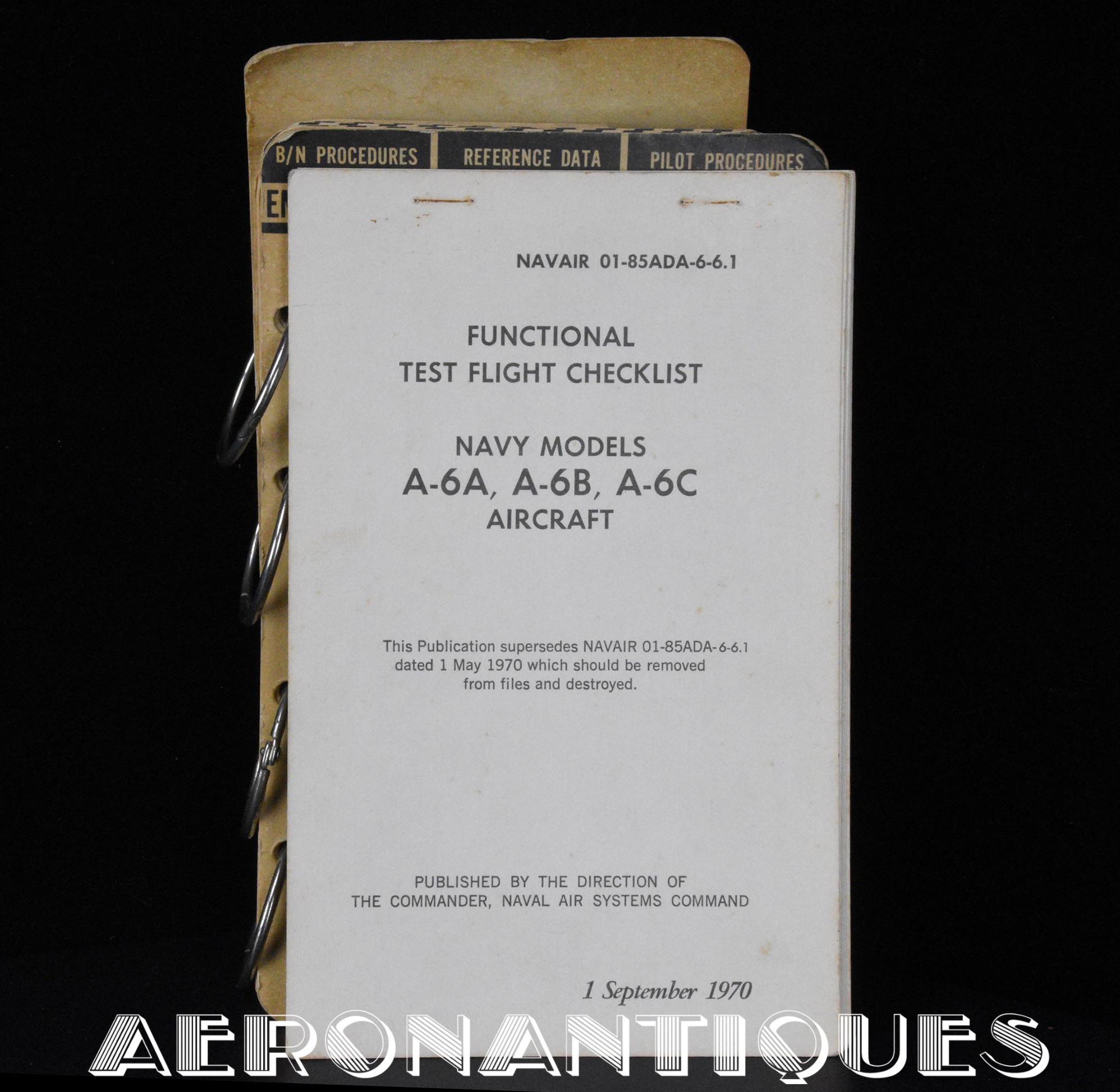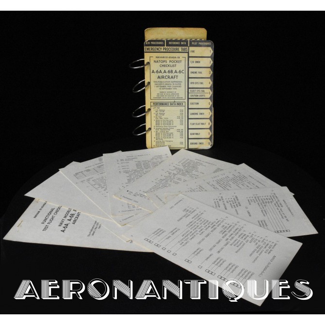 NATOPS checklists for US Navy or USMC pilots of the A-6 A/B/C Intruder fighter-bomber. Dated 1970. Dimensions 13 cm x 21 cm. Also included are the functional checklists dated 1970. Nice set that belonged to a pilot of one of the most legendary ground-attack aircraft of the US Navy during the Vietnam War.