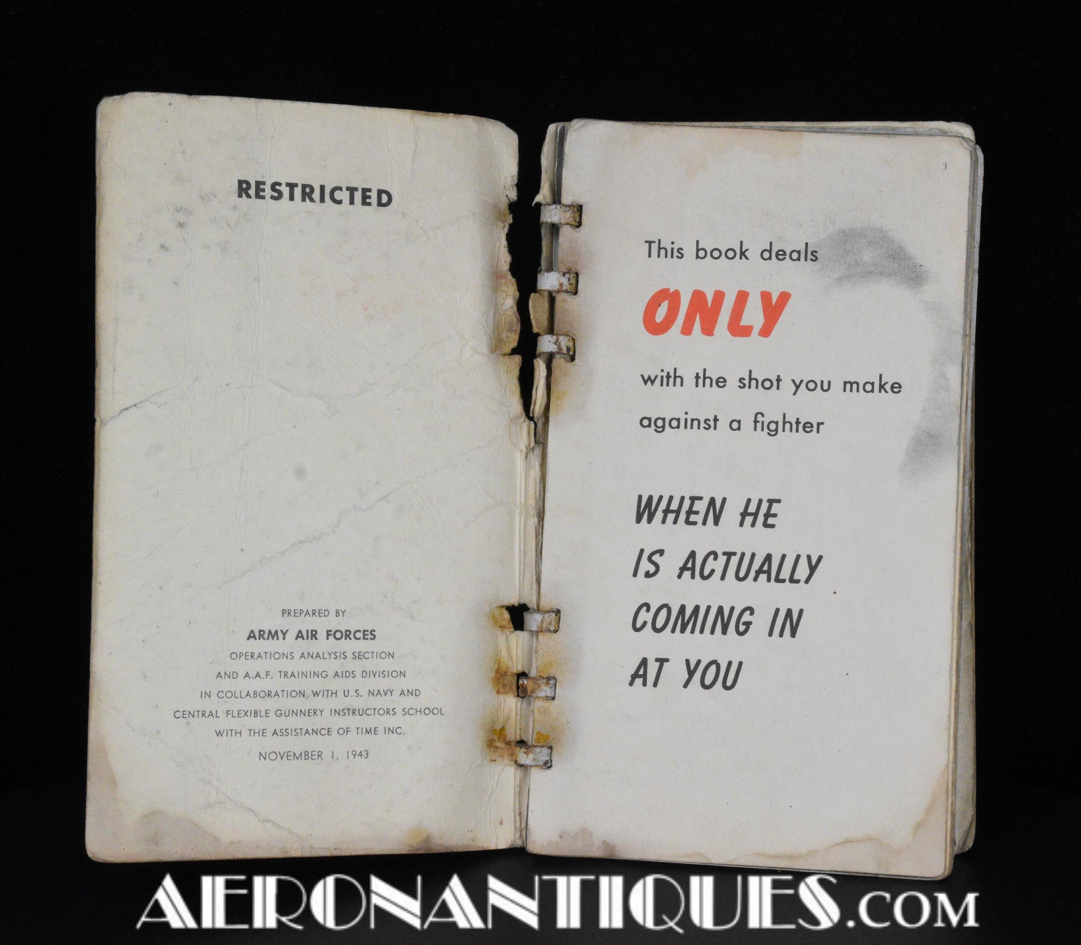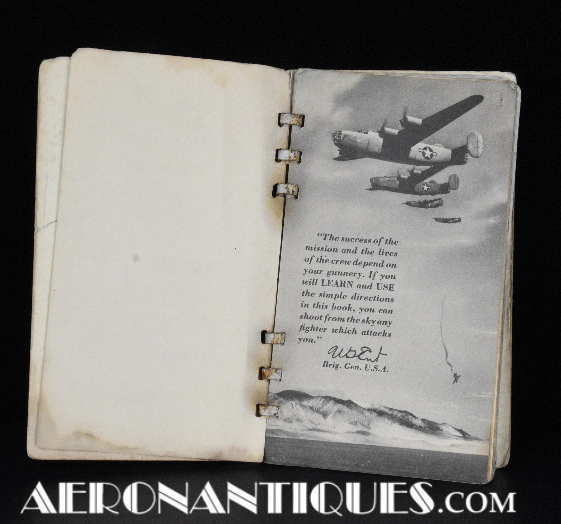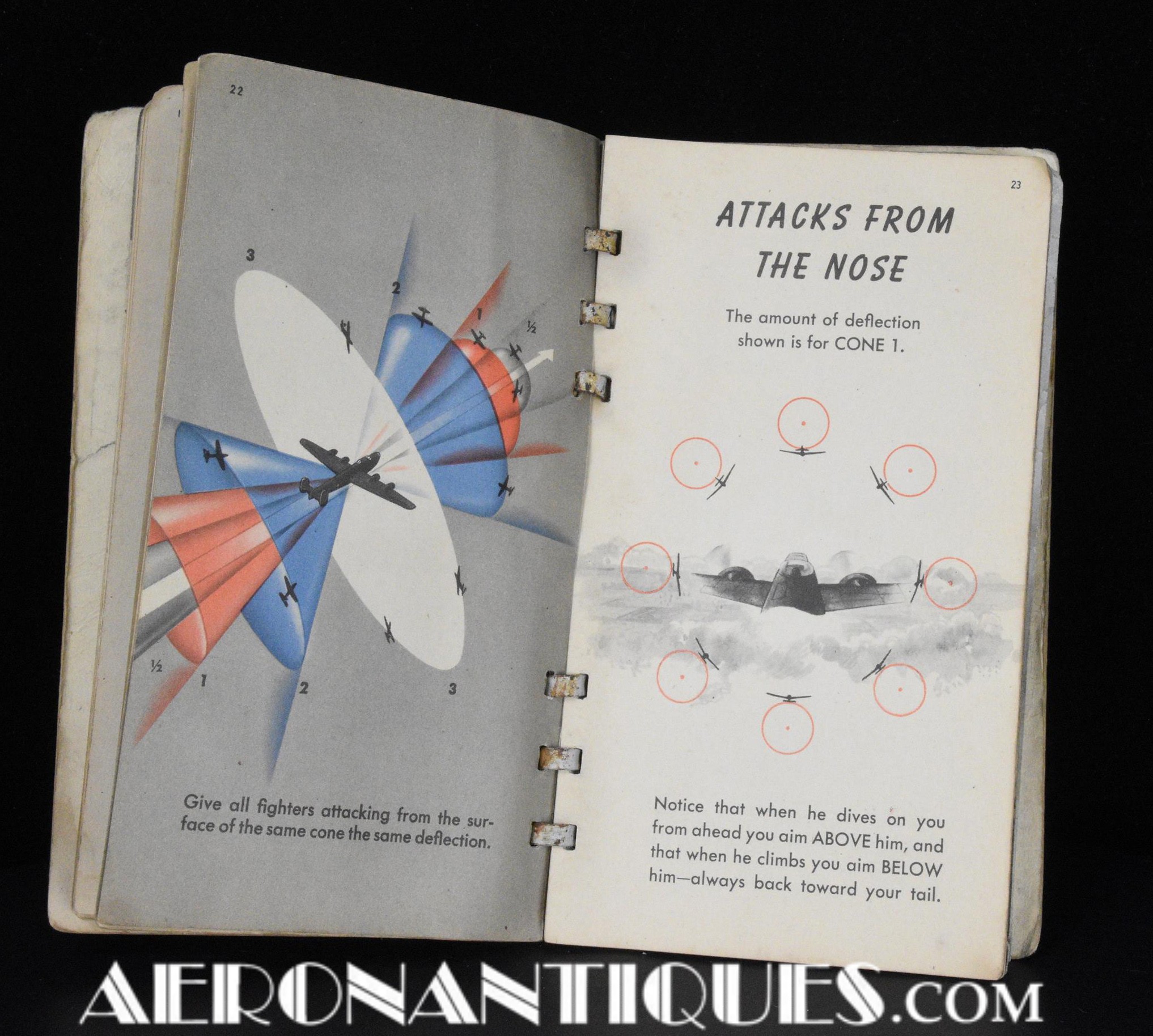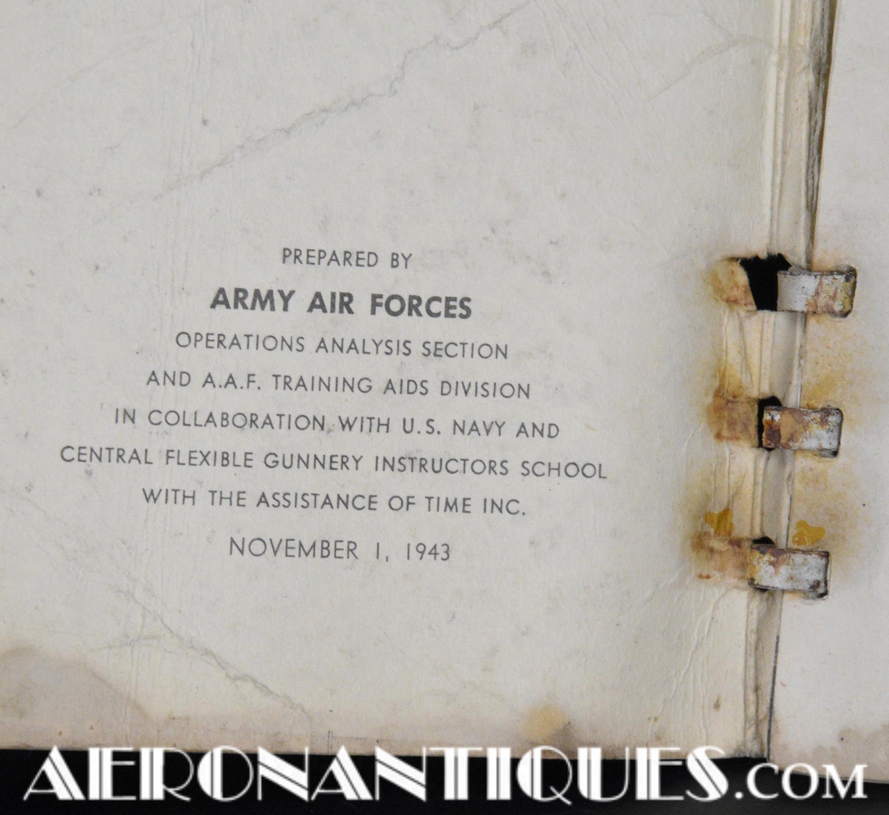 1943 original print of the WWII US Navy Aircrewman's Gunnery Manual. Dimensions 17 cm X 10 cm. 50 pages on gunners aiming technics and aircrafts identifications with numerous colour plates. Some humidity traces. A great source of information for the serious USAAF collectors and a great item to complete a gunner display.