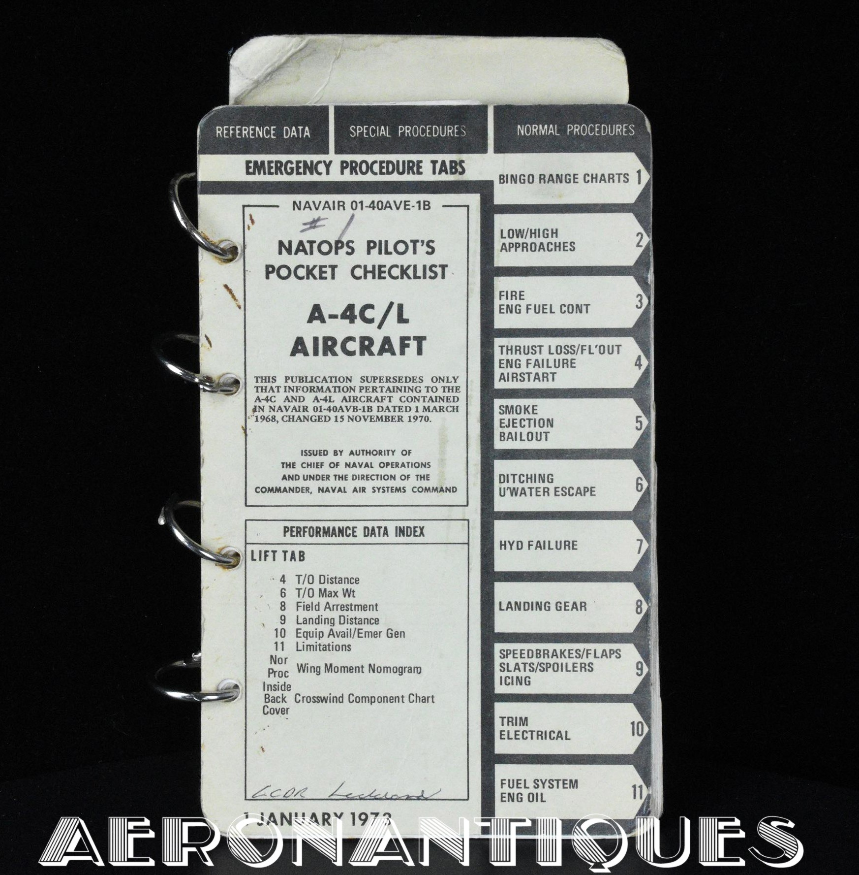 Vietnam era original NATOPS checklist for C & L versions of the McDonnel Douglas A-4 Skyhawk attack aircraft. Containing all the normal and emergency procedures. Dated 1973. Dimensions 21 cm X 13 cm. 100 pages. A great source of essential information on this iconic US Navy attack aircraft.