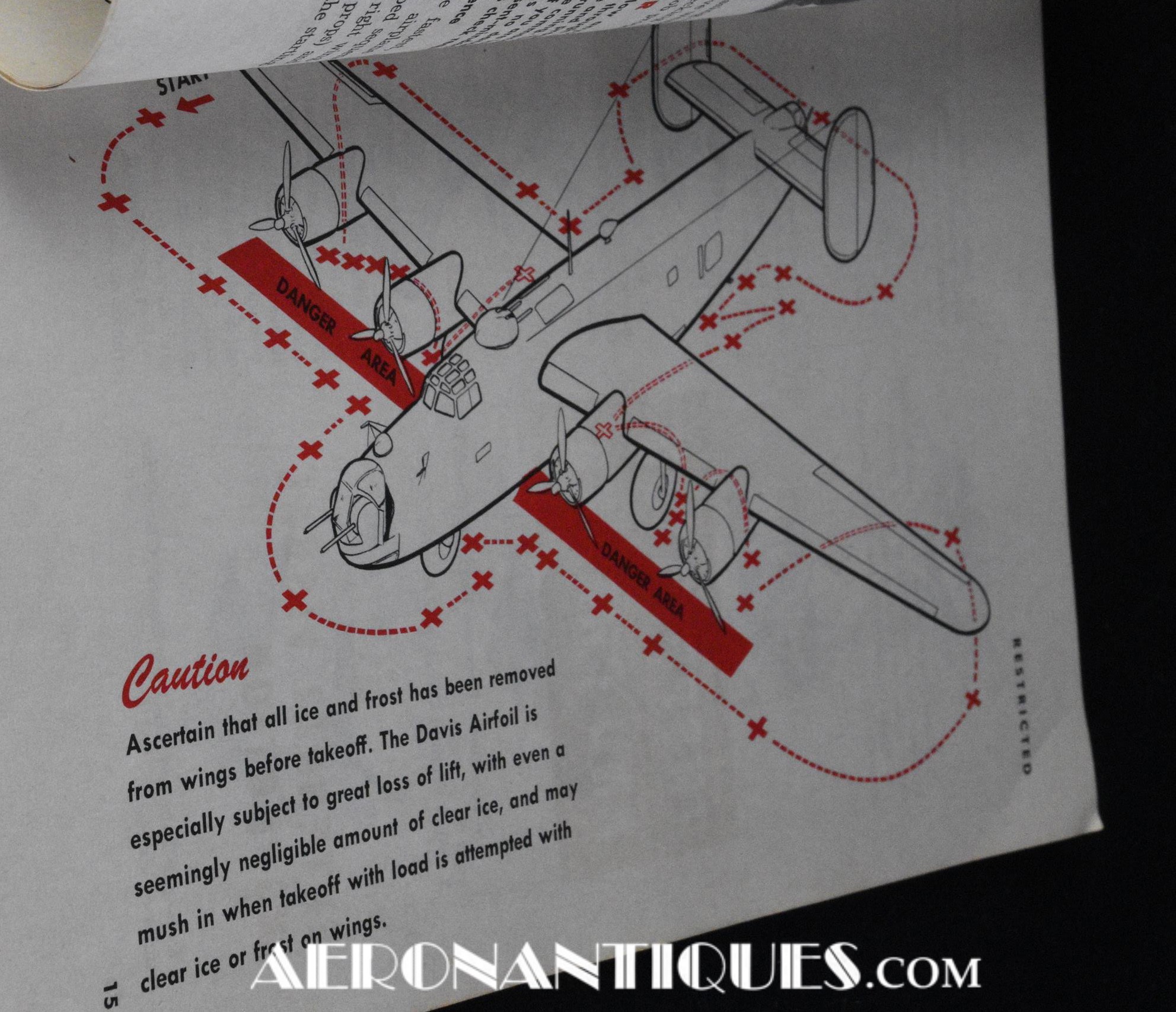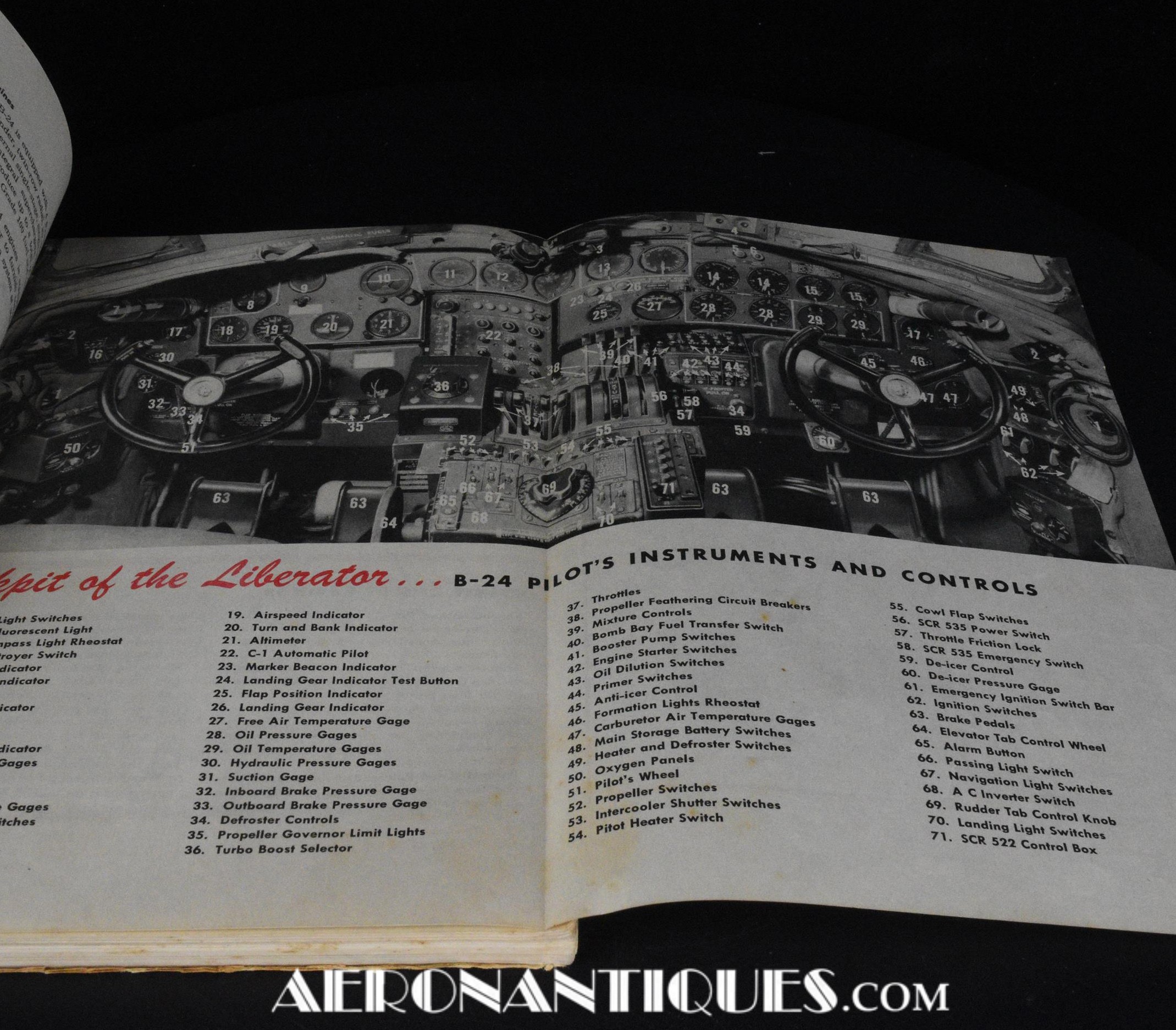 October 1944 dated original soft cover print of the WWII US Army Air Force Consolidated B-24 LIBERATOR D versions pilot training and flight manual. Dimensions 27 cm X 20,5 cm. A total of 250 pages presenting the aircraft and its different flying technics with numerous color plates. A great source of inform ation on this iconic US Army Air force WWII bomber aircraft.