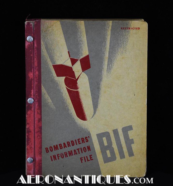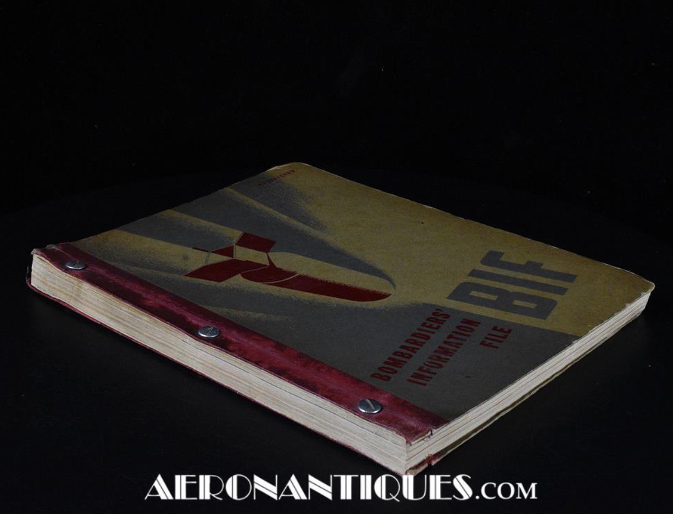 March 1945 dated original print of the WWII US Army Air Force Regulation Bombardiers Information File. Dimensions 21 cm X 28 cm X 2 cm. Approx 200 pages on US Army Air Force bombers equipments with numerous colour plates. A great source of information for the serious AAF collectors and a great item to complete a bomber display.