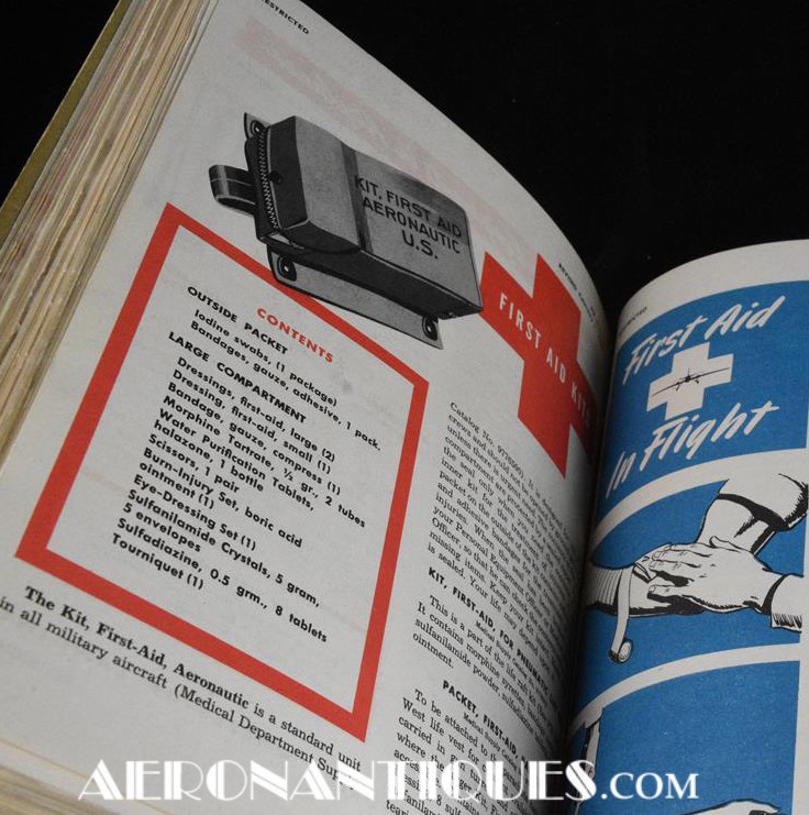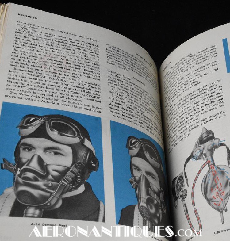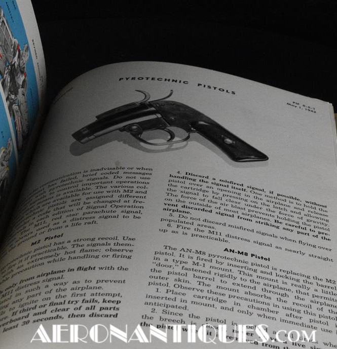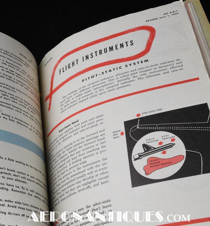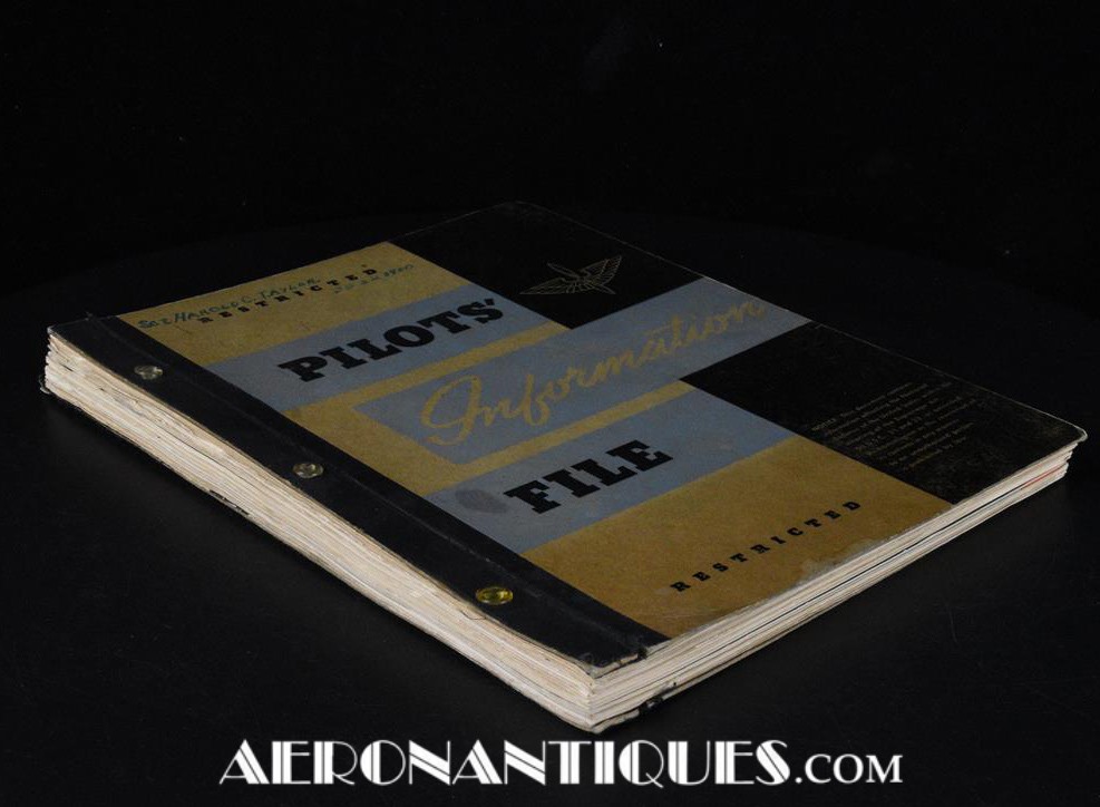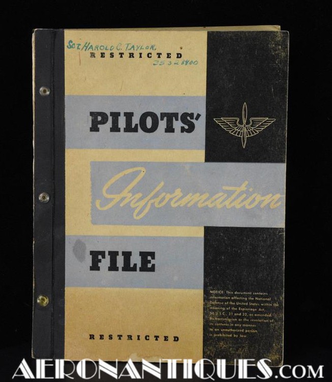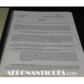 November 1944 original print of the WWII US Army Air Force Regulation Pilot Information File with updates to May 1945. Dimensions 21,5 cm X 28 cm X 2 cm. More than 250 pages US Army Air Force flight equipment, theories and technics with numerous color plates. Very good condition. A great source of information for the serious AAF collectors and a great display item to complete a pilot briefcase. During the year 1944, these manuals were revised almost every month due to the fast development of equipment during that year, hence the differences between editions.