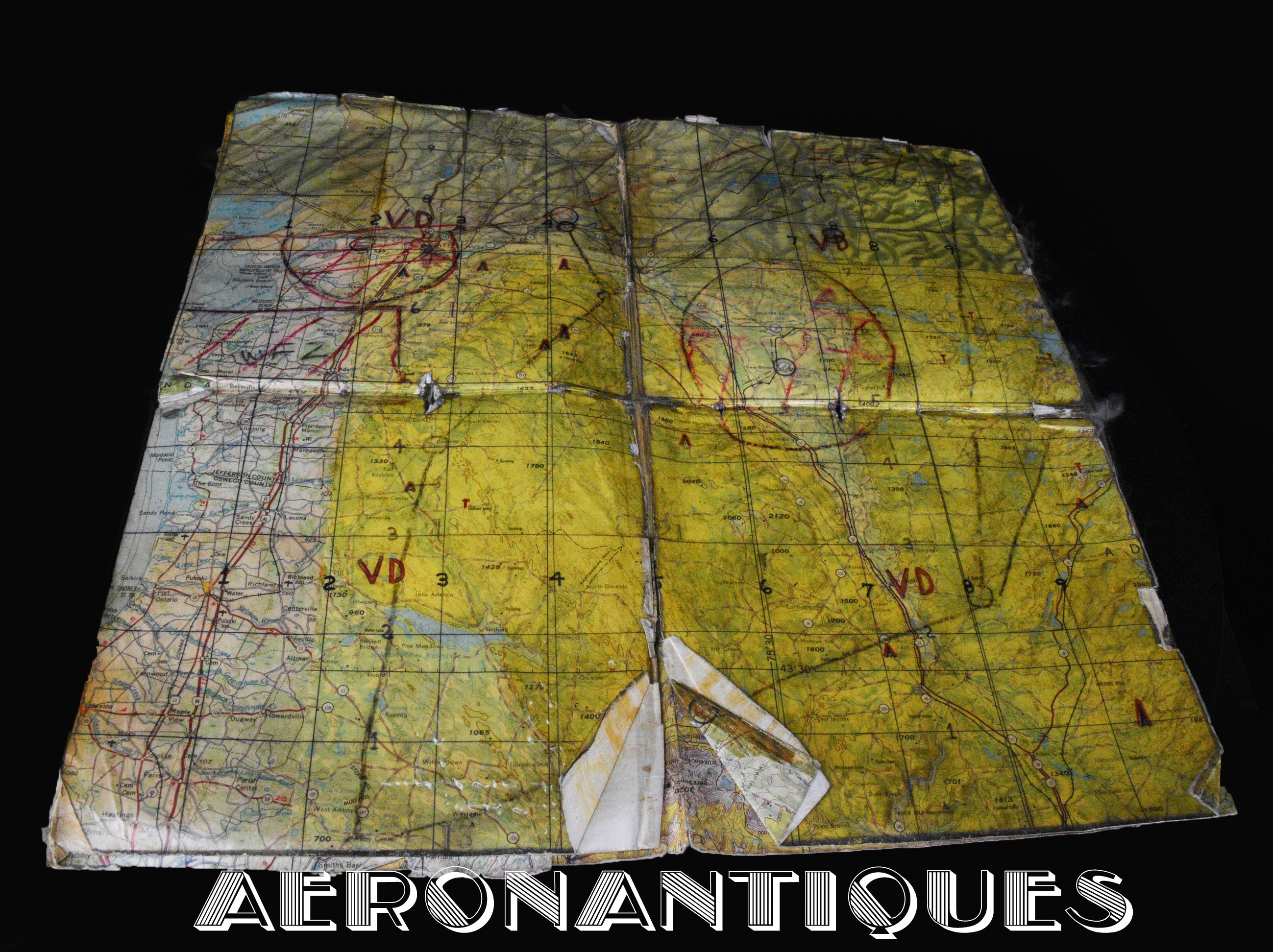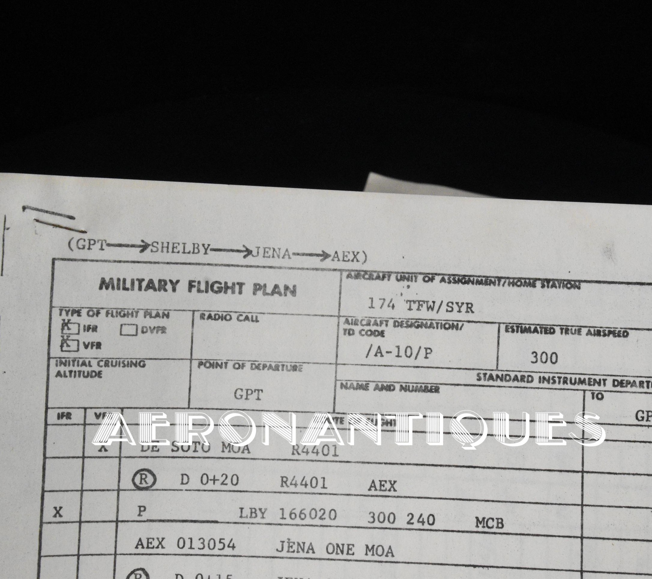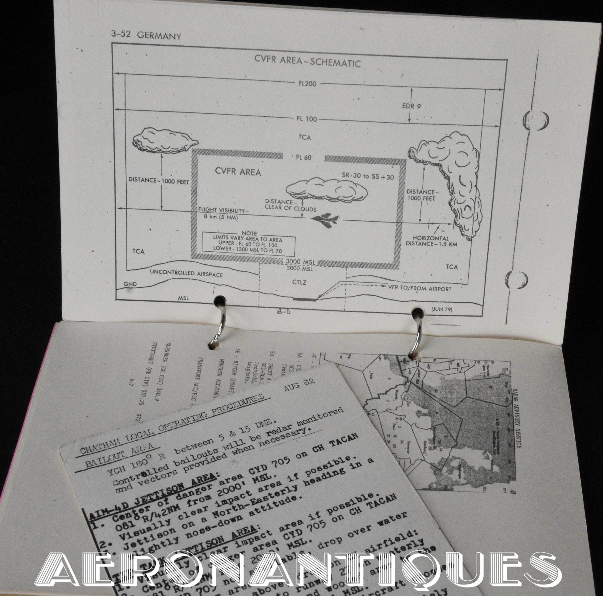 A collection of original documents, a map, and a checklist belonging to a US Air Force 174th TFS A-10 Thunderbolt single-seat ground attack aircraft pilot. The checklist is approximately 150 pages. Dimensions: 20.5 cm x 14 cm. Dated 1987 with 1988 updates. Also included are a laminated and annotated flight map, two flight plans and two operational manuals from the 174th Tactical Fighter Squadron. found in the same pilot's estate. Essential for all enthusiasts of this legendary American attack aircraft, which distinguished itself during the Gulf War and the conflict in Afghanistan.