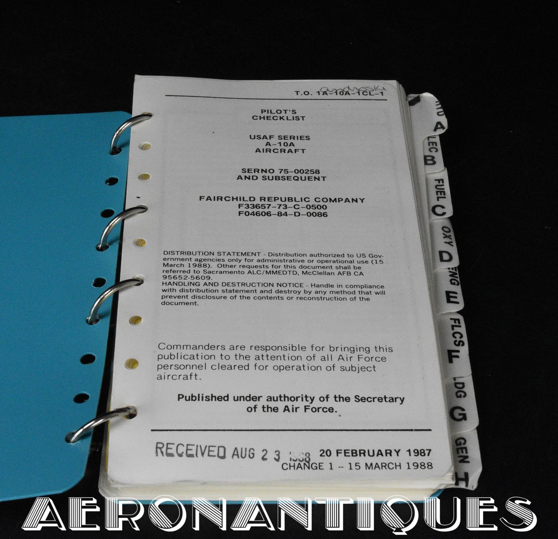 A-10 Thunderbolt Pilot Checklist Pilot US Air Force