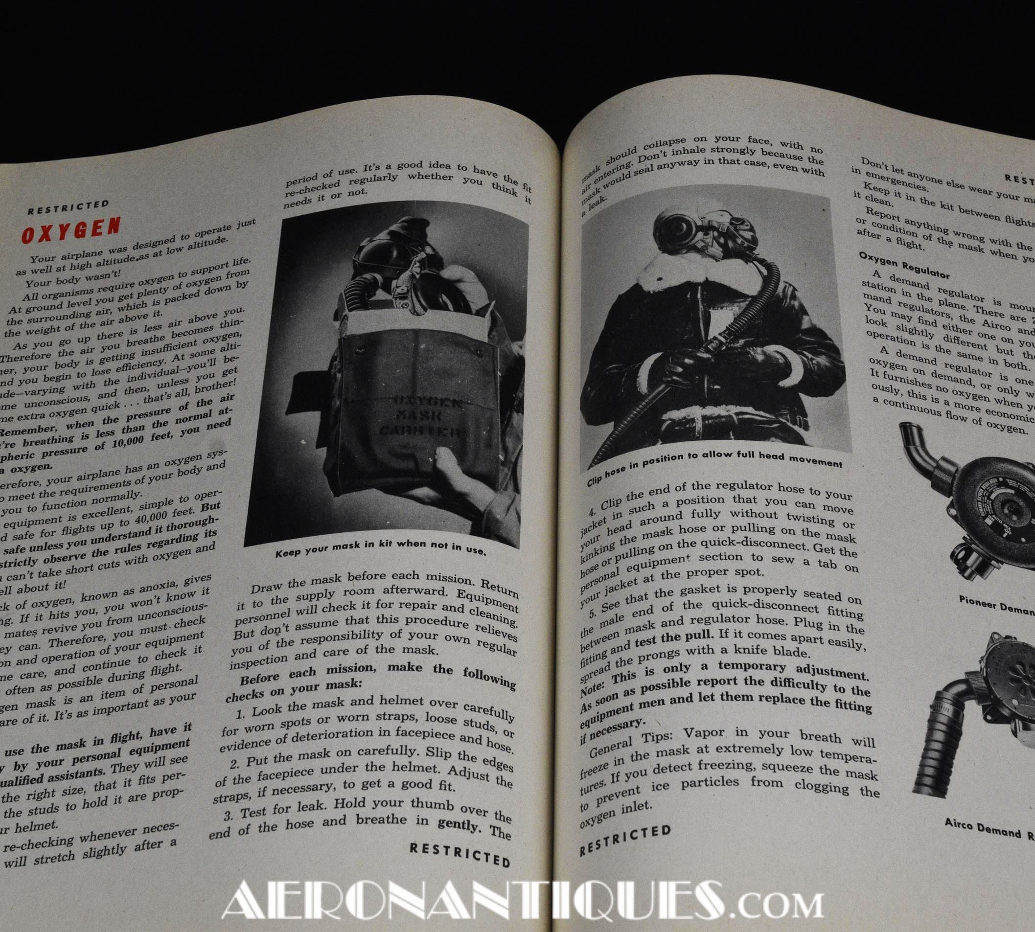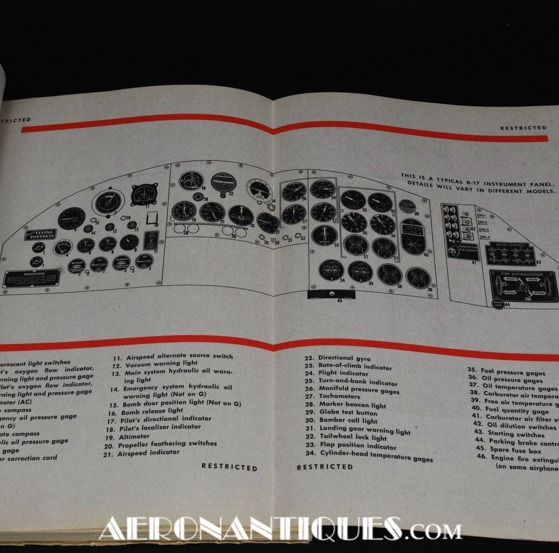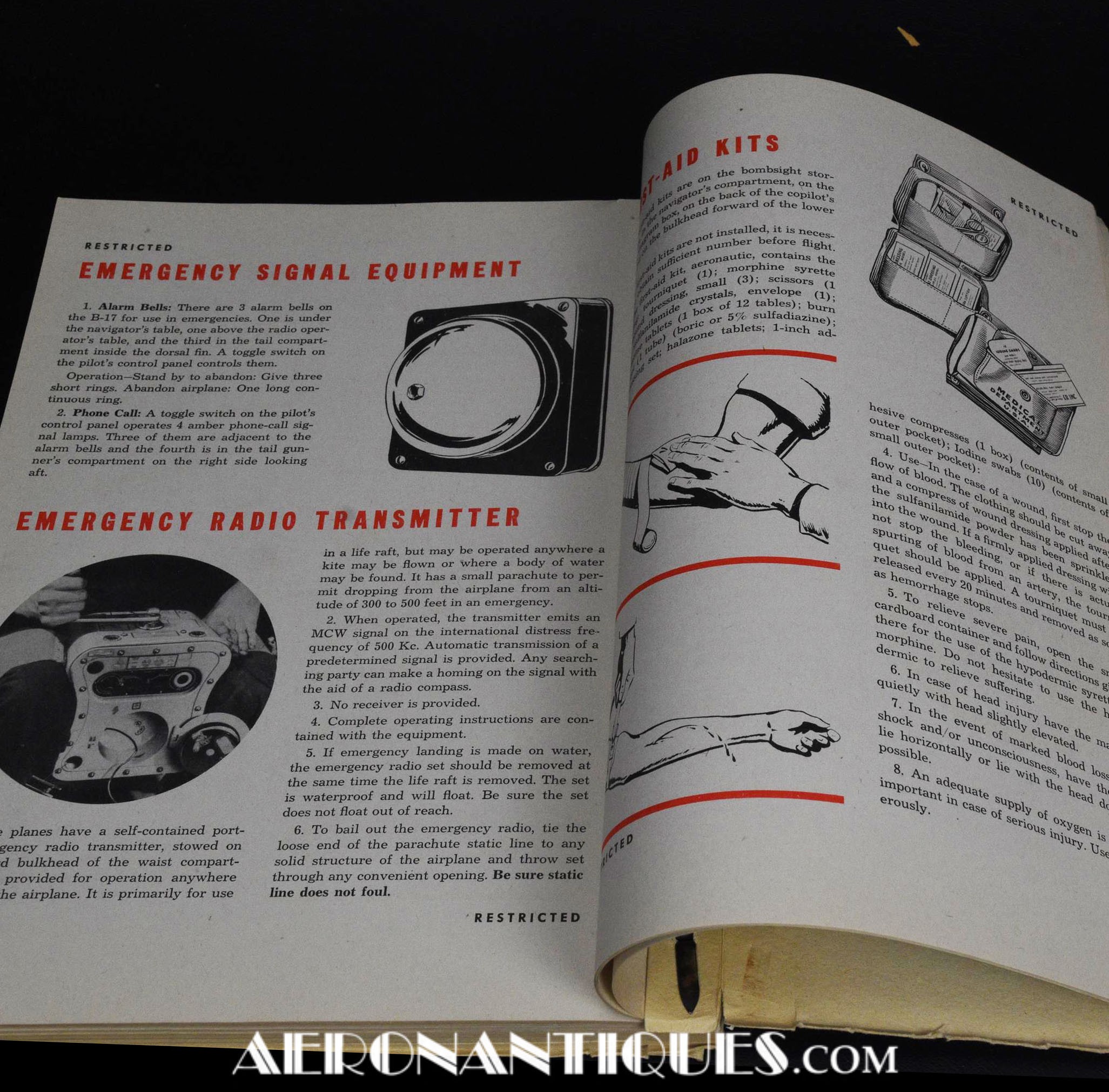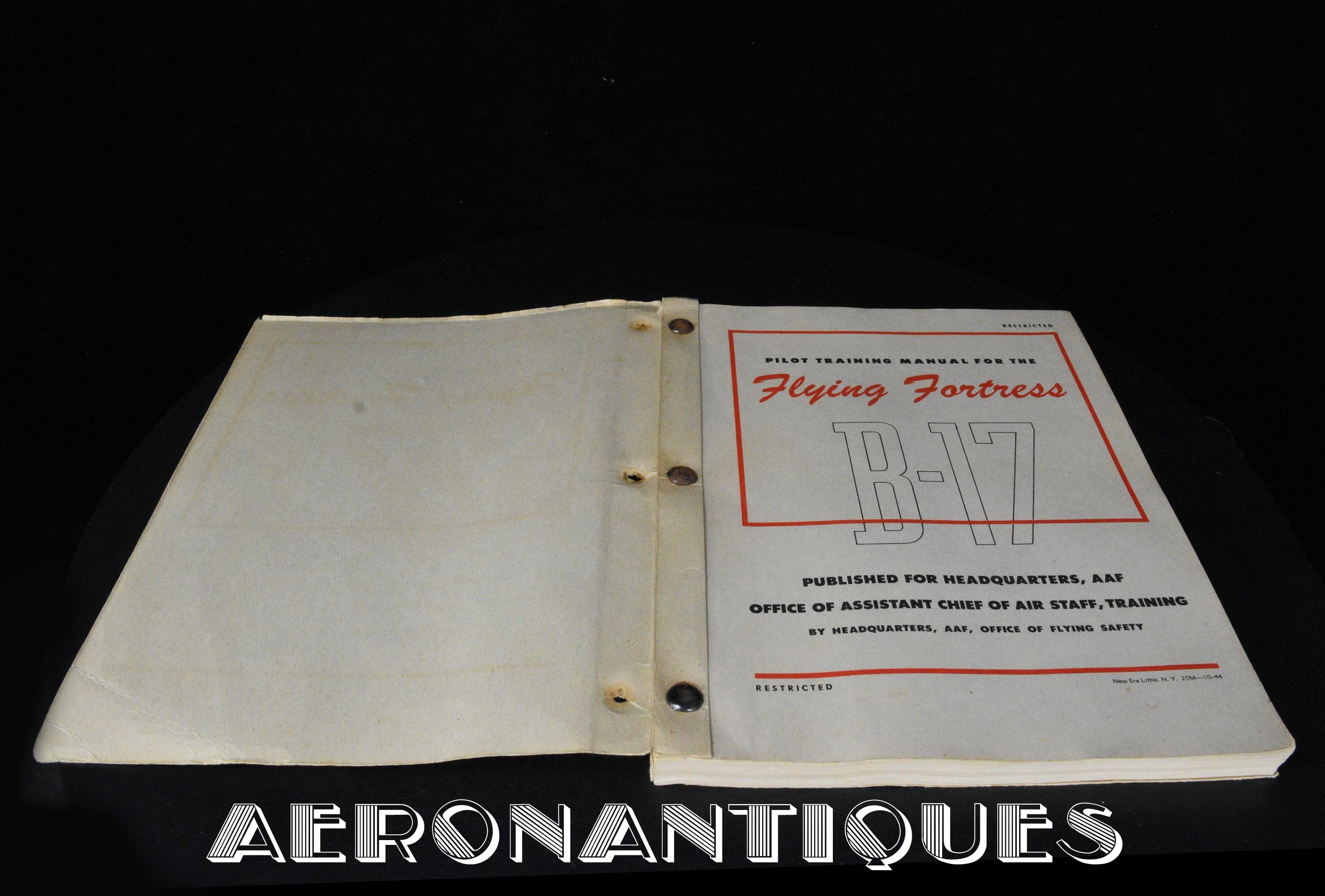 October 1944 dated original print of the WWII US Army Air Force B-17 Flying Fortress pilot training and flight manual with the instructor supplement. Dimensions 27,5 cm X 20,5 cm. Approx 300 pages presenting the aircraft and its different flying technics with numerous color plates. A great source of information on this iconic US Army Air force WWII bomber aircraft.