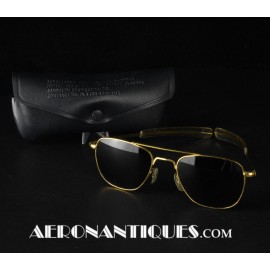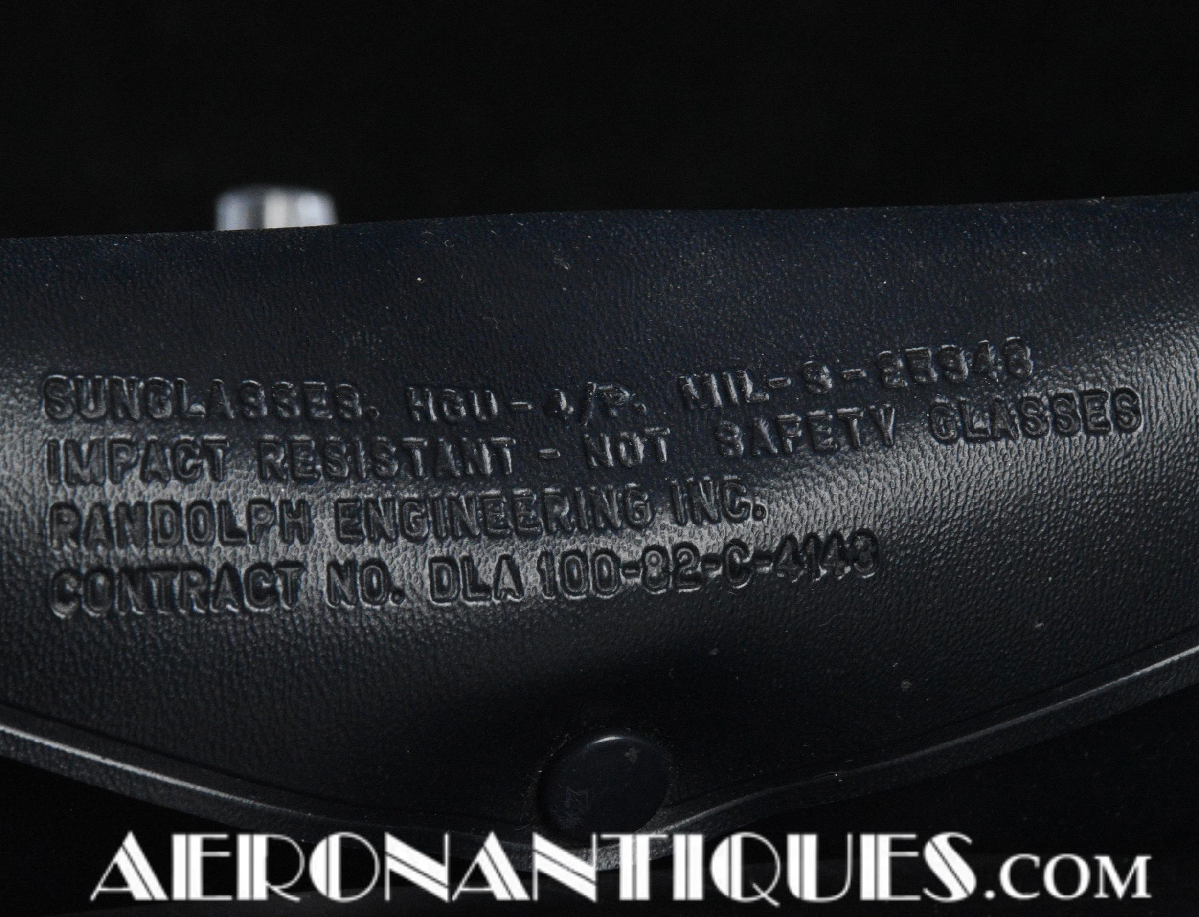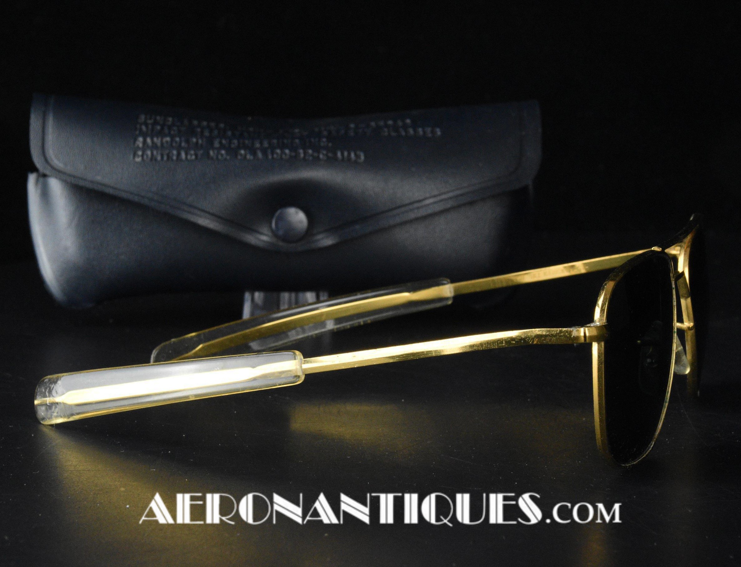 US Air Force or Navy regulation sunglasses type HGU-4/P complete with original case dated 1992. 5 1/2 model, gold electroplated, made by RANDOLPH ENGINEERING. Excellent condition. Iconic pilot sunglasses from the Vietnam era to Top Gun.