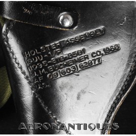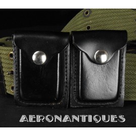 Complete set including a USAF black leather holster, leather ammo pouches and M-1956 pistol belt. Black leather holster is a USAF regulation  GUU-1/P dated 1966. 1976 dated black leather USAF regulation ammo pouches. Typical equipment carried by US Air Force fighter pilots and some US Army helo drivers in Vietnam, including the famous Ace Robin Olds (see pic. Great set to complete a Nam era Mig Killer or US Army Helo driver.