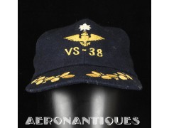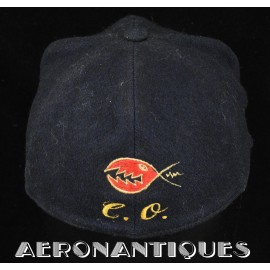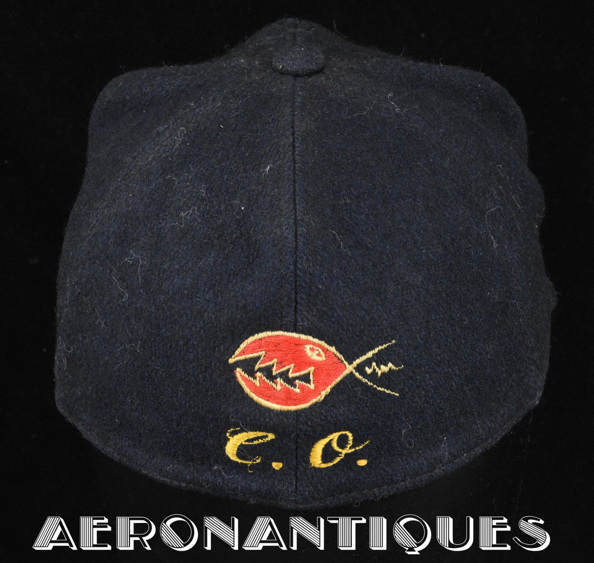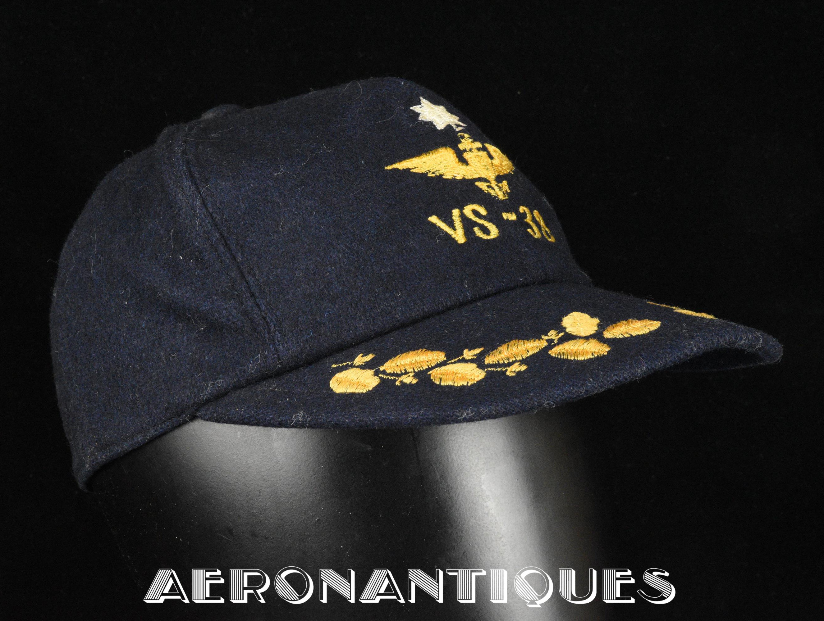 Exceptional baseball cap worn by the Commanding Officer of Sea Control Squadron 38 "Red Griffins" during one of their deployments aboard the USS Bennington during the Vietnam War in 1968. He can be seen in a group photo taken aboard the aircraft carrier wearing the very same cap. Japanese made of embroidered navy blue wool. Beautiful patina.