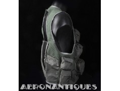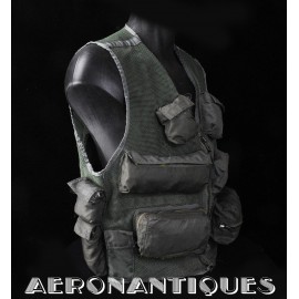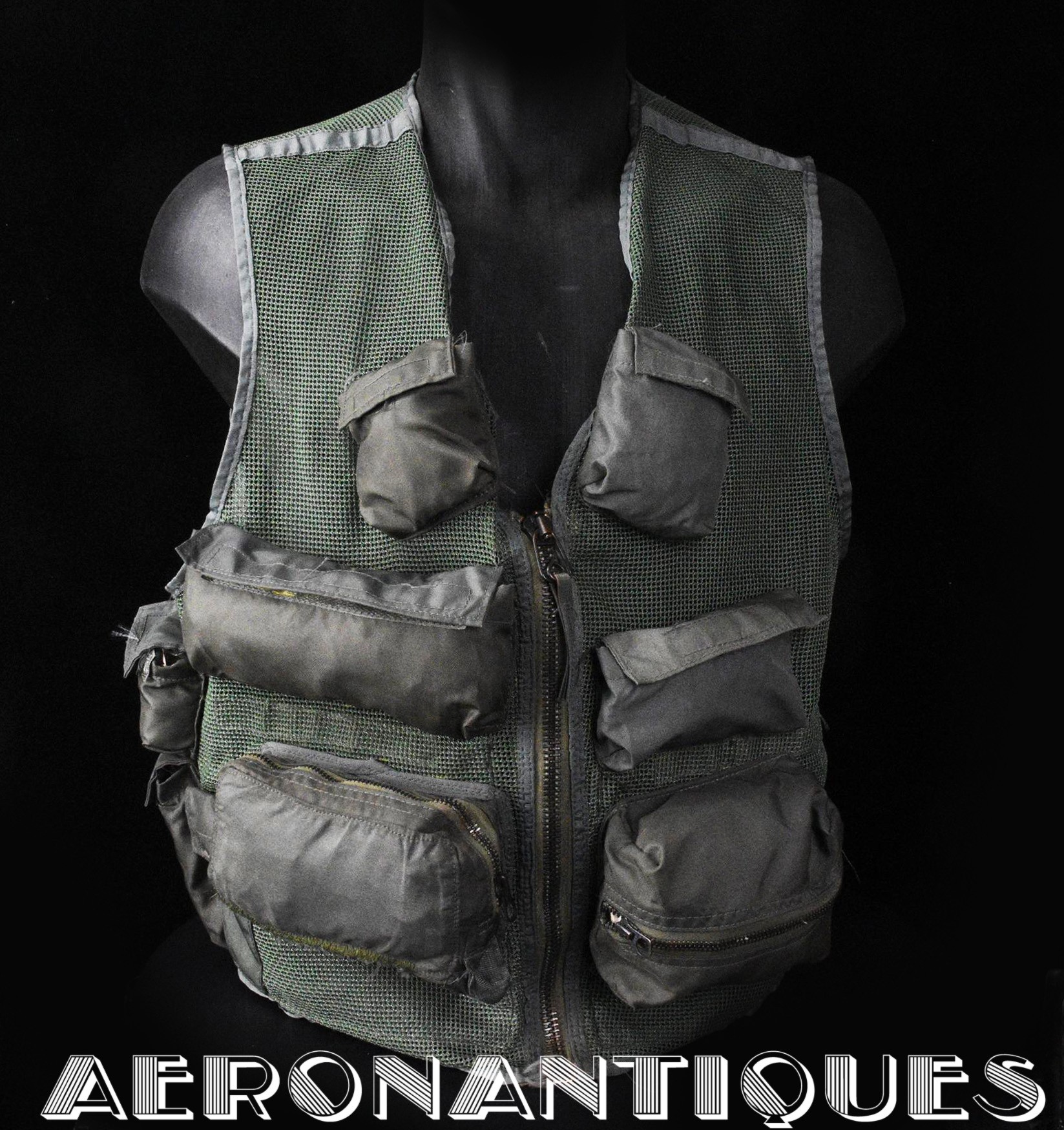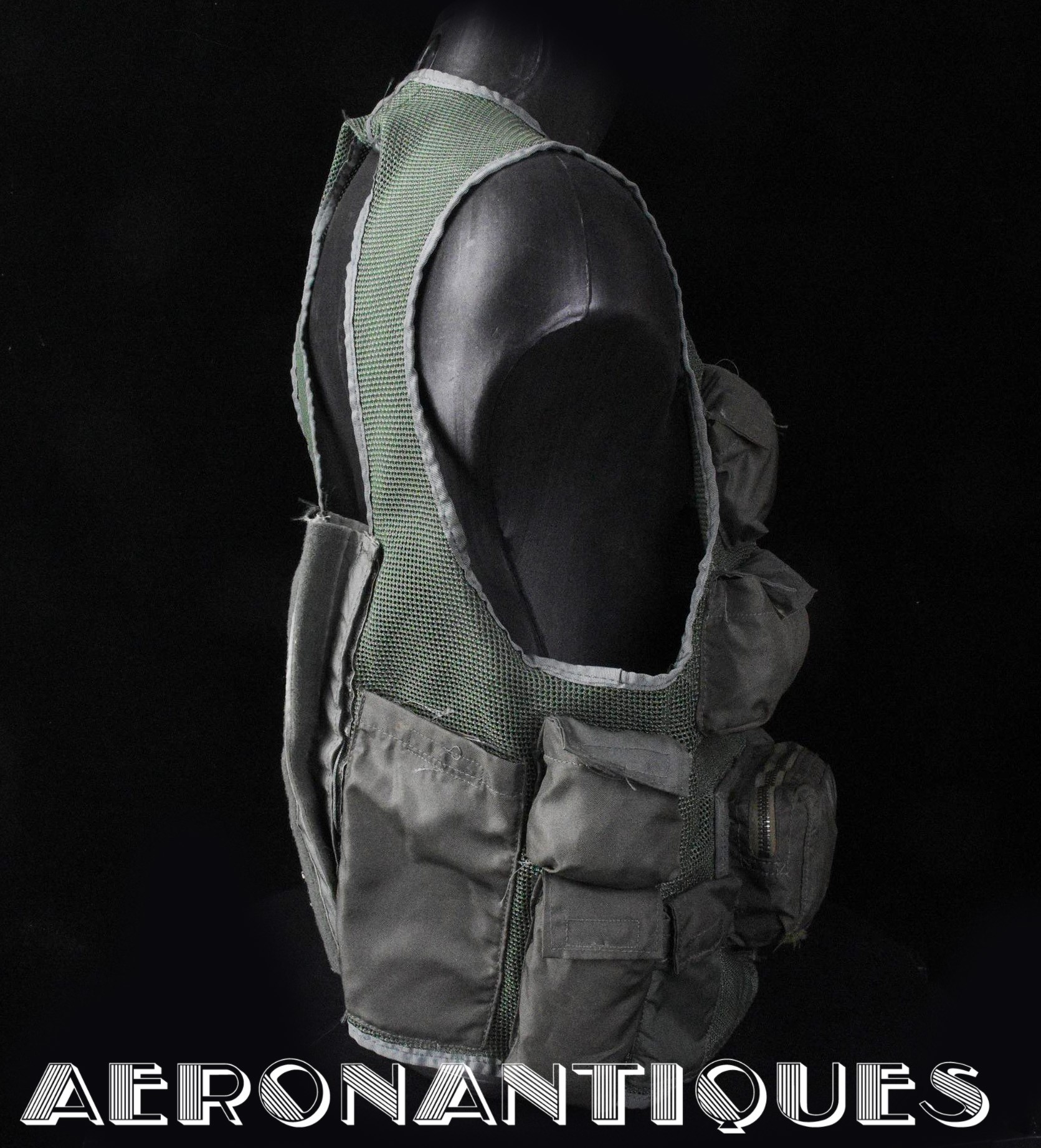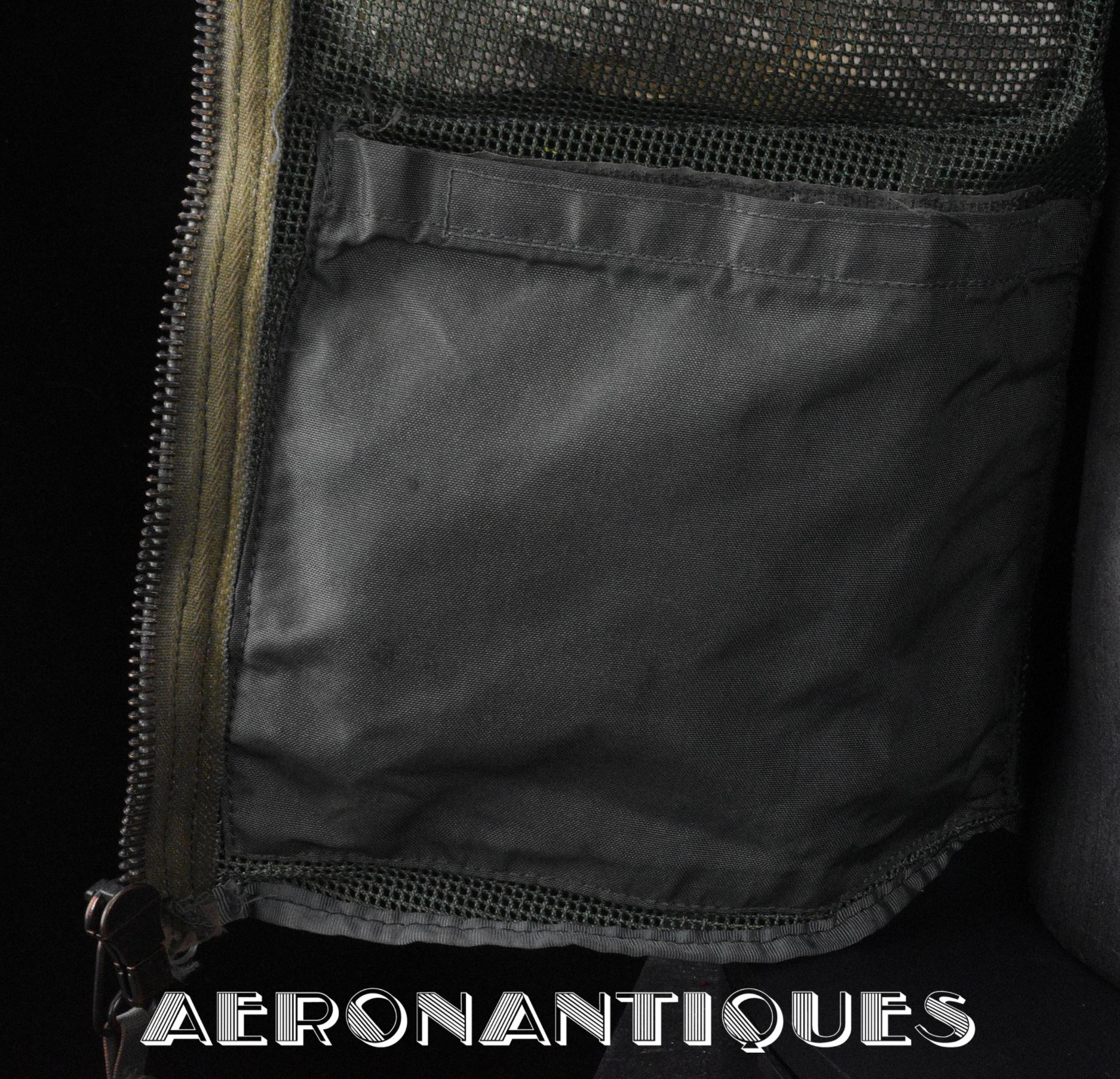 SRU-21/P survival mesh vest for US Air Force & Army pilots. 2nd pattern with hook & pile closing pockets. RT-10 zippered radio pocket. Numerous pockets for survival gear as radio, rations, etc... Size MEDIUM. Made by LITE INDUSTRIES. Dated 1973. Designed and issued to USAF fighter, bomber, transport and observation pilots and aircrews but also used by Army aviation helicopter pilots.