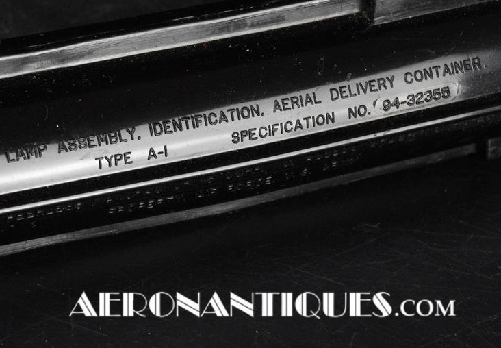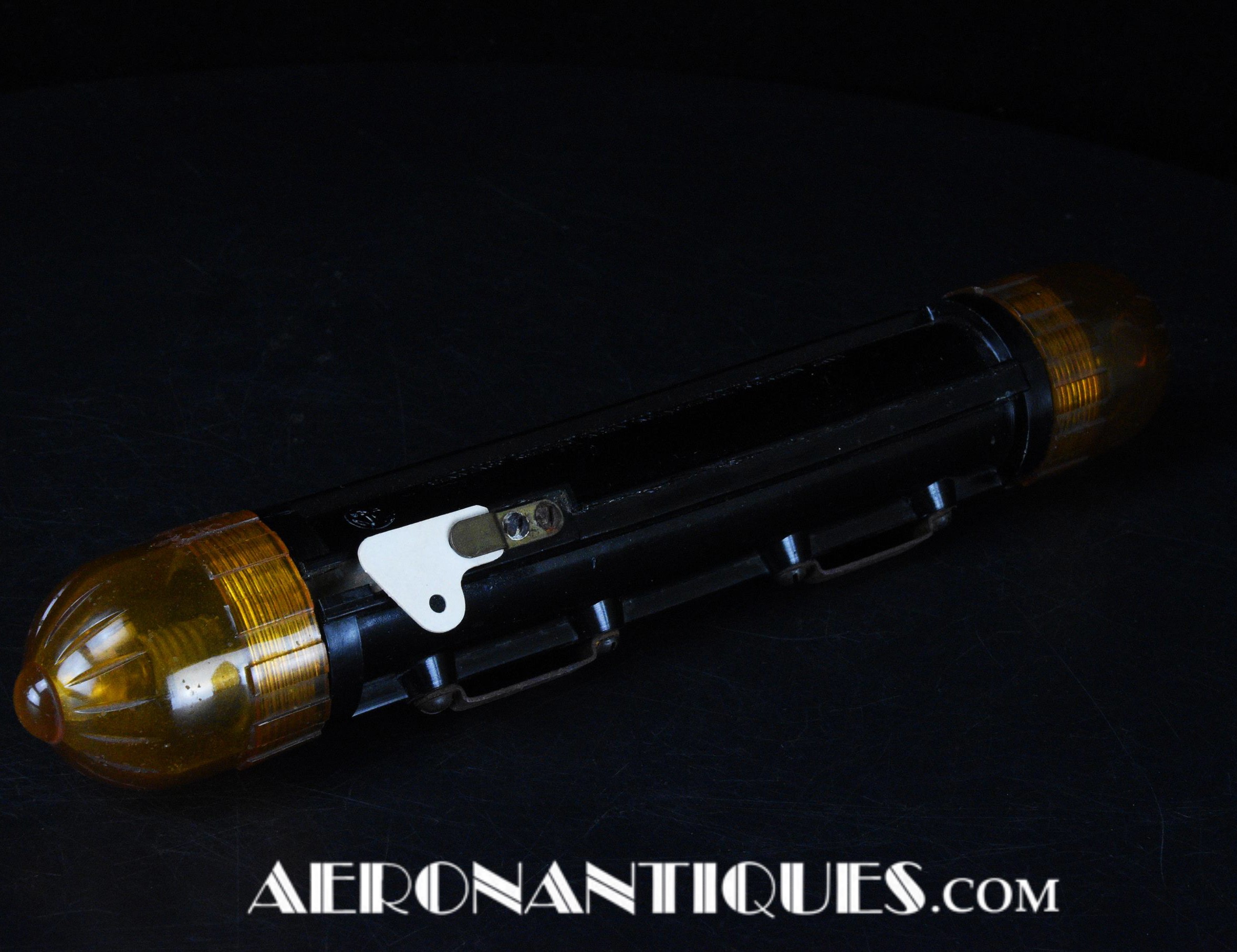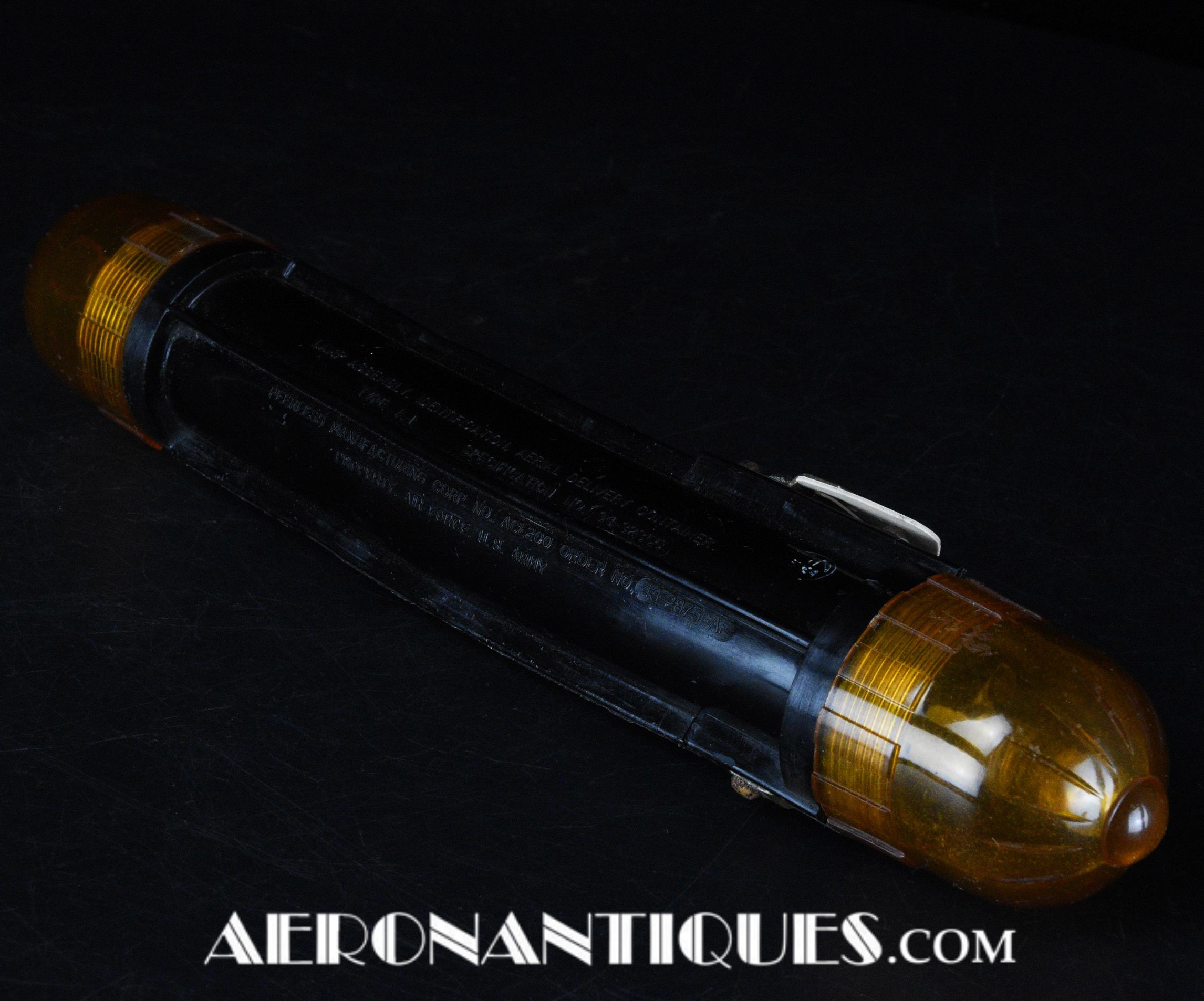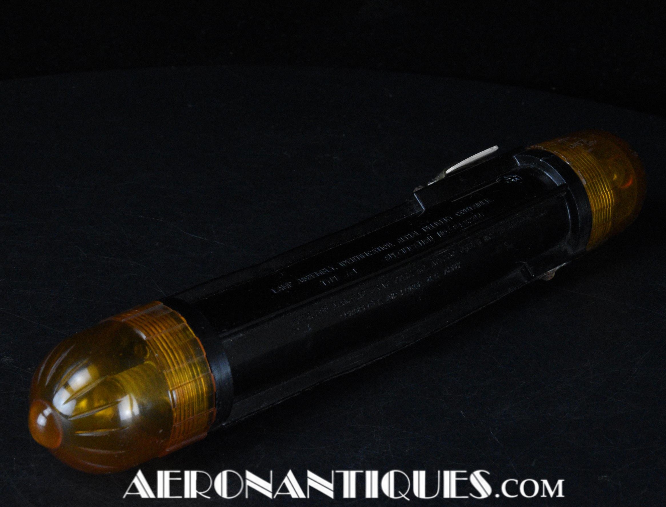 WWII US Army aerial delivery container identification lamp type A-1. Complete with both lamps, amber covers and cardboard trigerring device. 1943 contract, made by PEERLESS MFG CO.