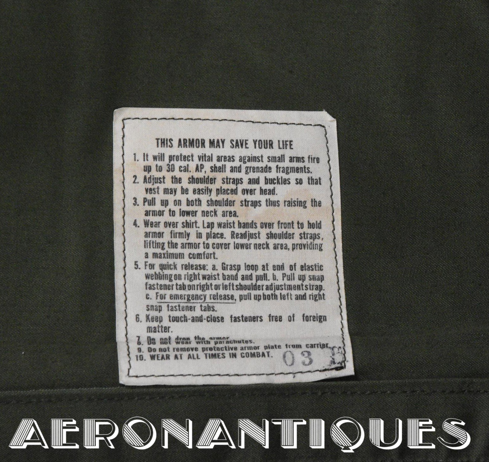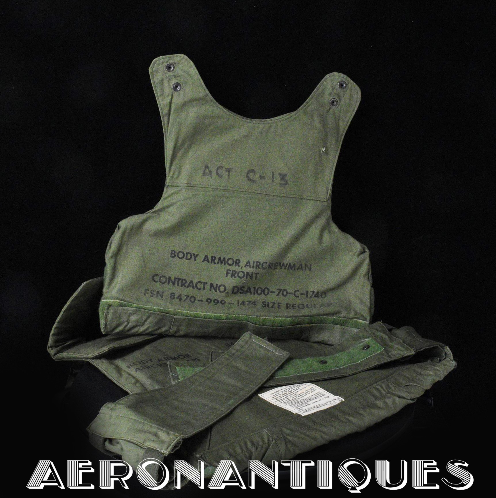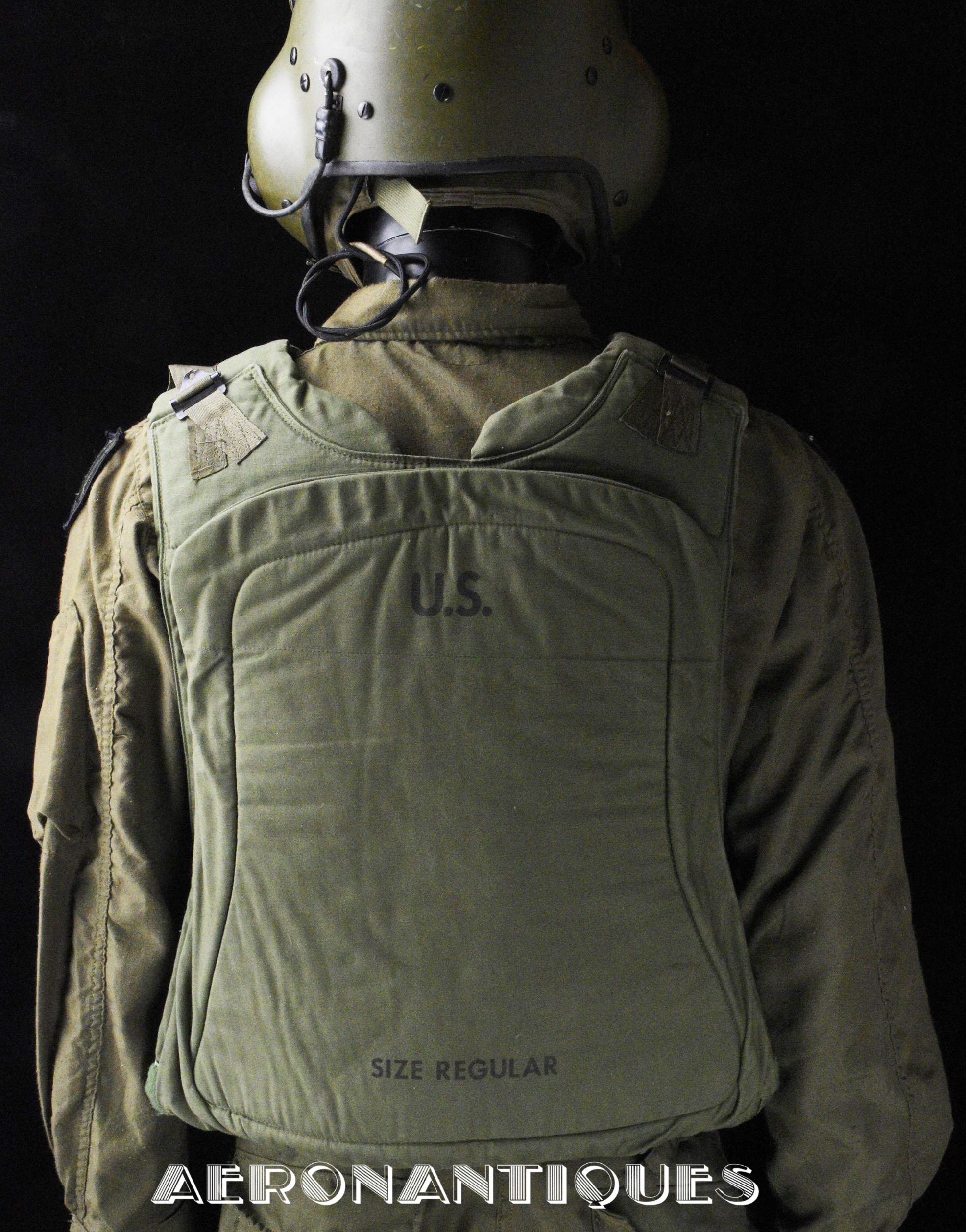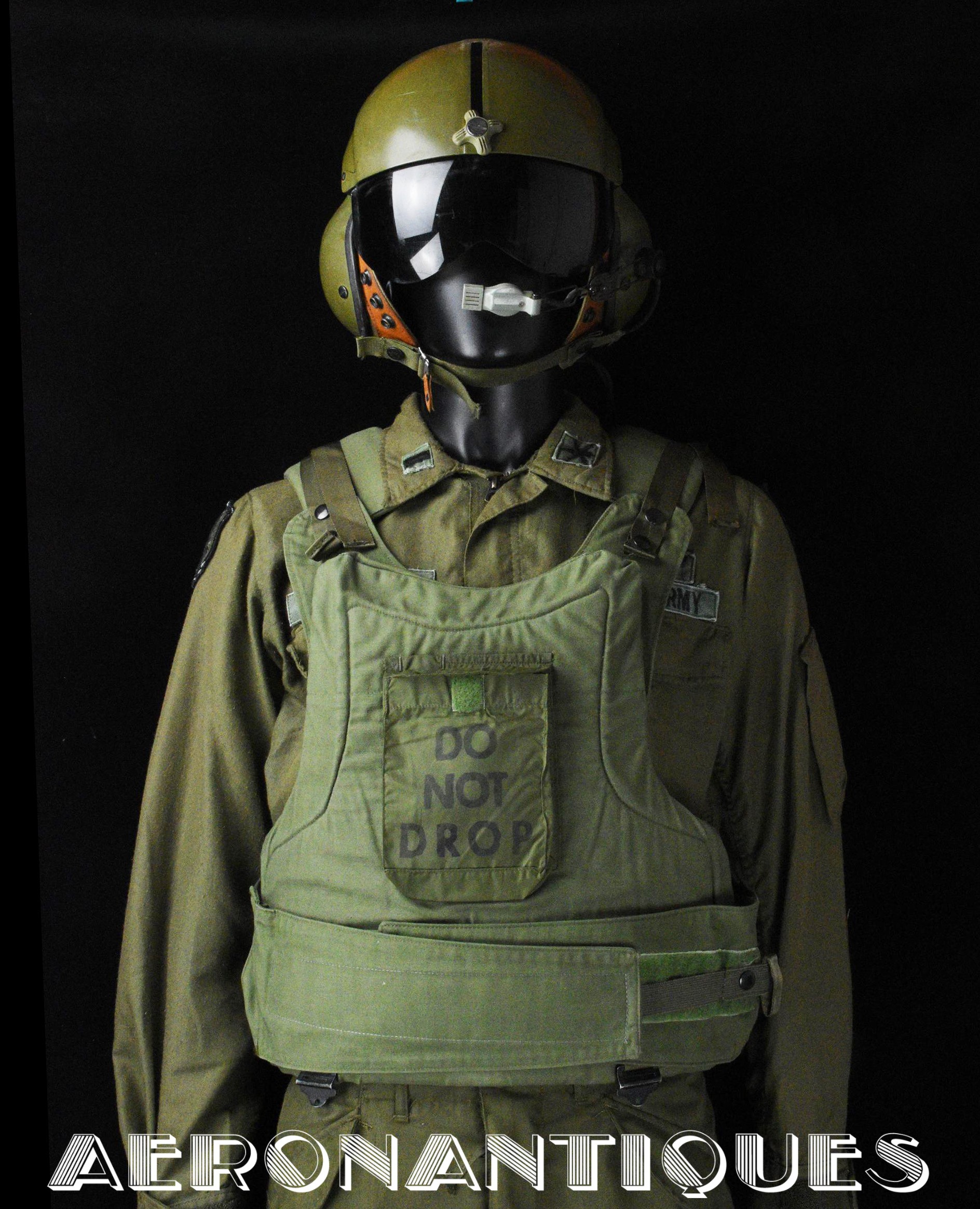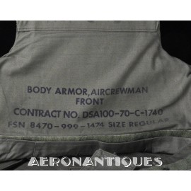 Extremely rare US Army flak vest aka "Chicken Vest" or "Chicken Plates" specifically designed for helicopter crews during the Vietnam War, starting in 1969. Manufactured in 1970. Regular size. Excellent condition, a very nice display piece for a US Army helicopter crew member. PLEASE NOTE: THE CERAMIC PLATES ARE NOT INSIDE. Display accessories are not included.
