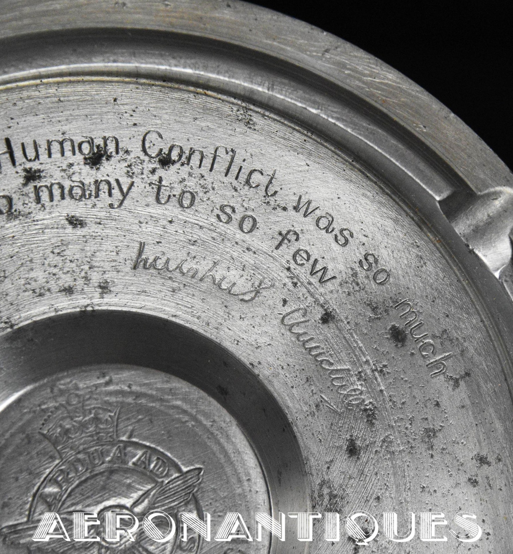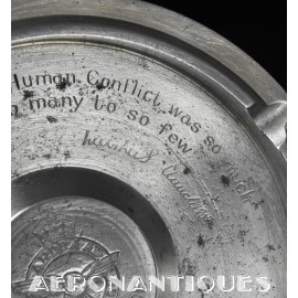 A beautiful souvenir ashtray made from a Rolls-Royce Merlin engine piston, used during the Battle of Britain (August-October 1940), engraved with the RAF emblem and the famous quote by Sir Winston Churchill. Diameter: 13.5 cm