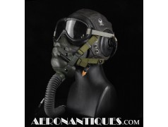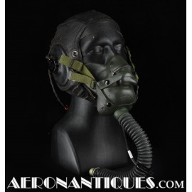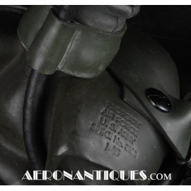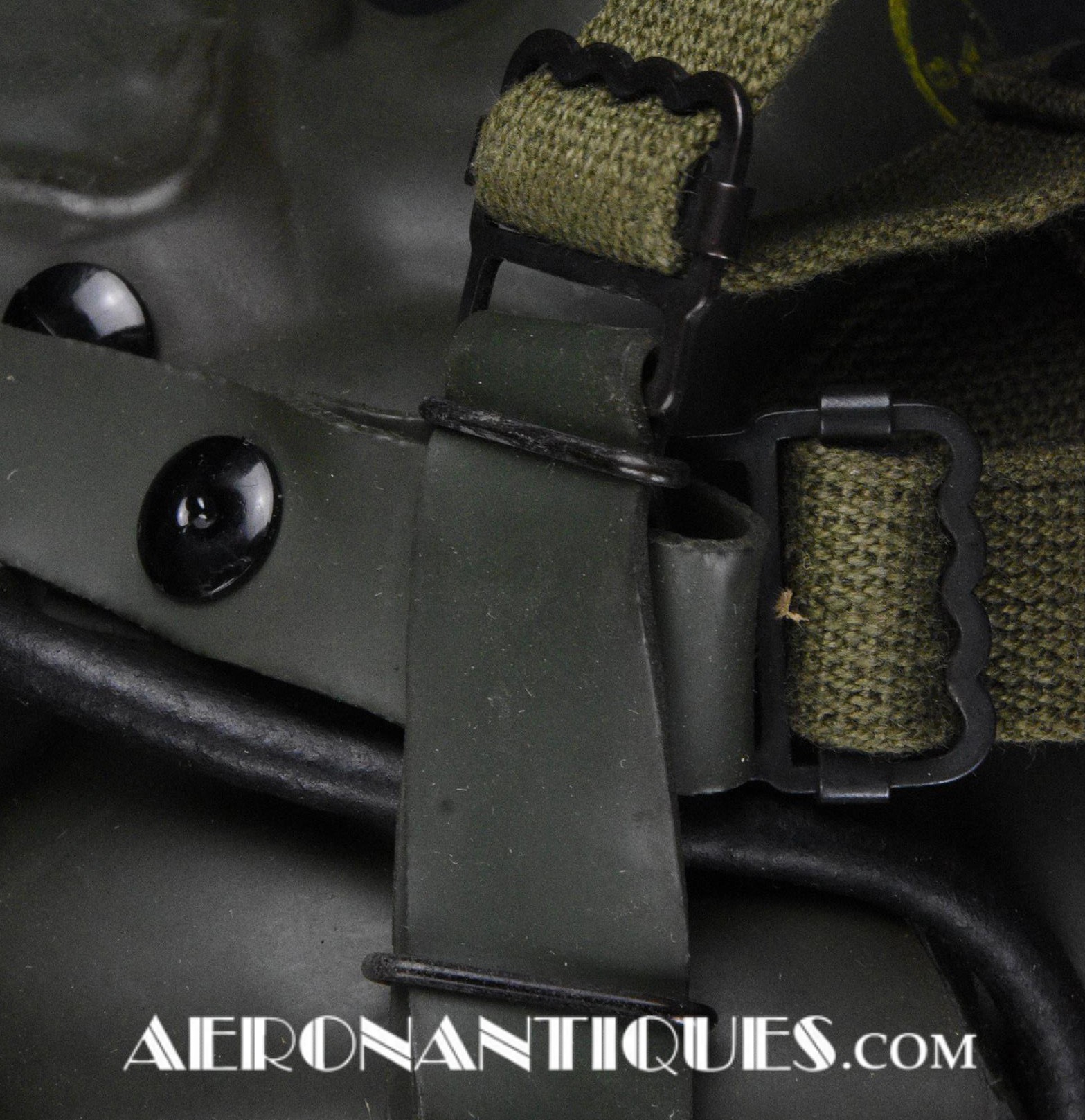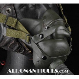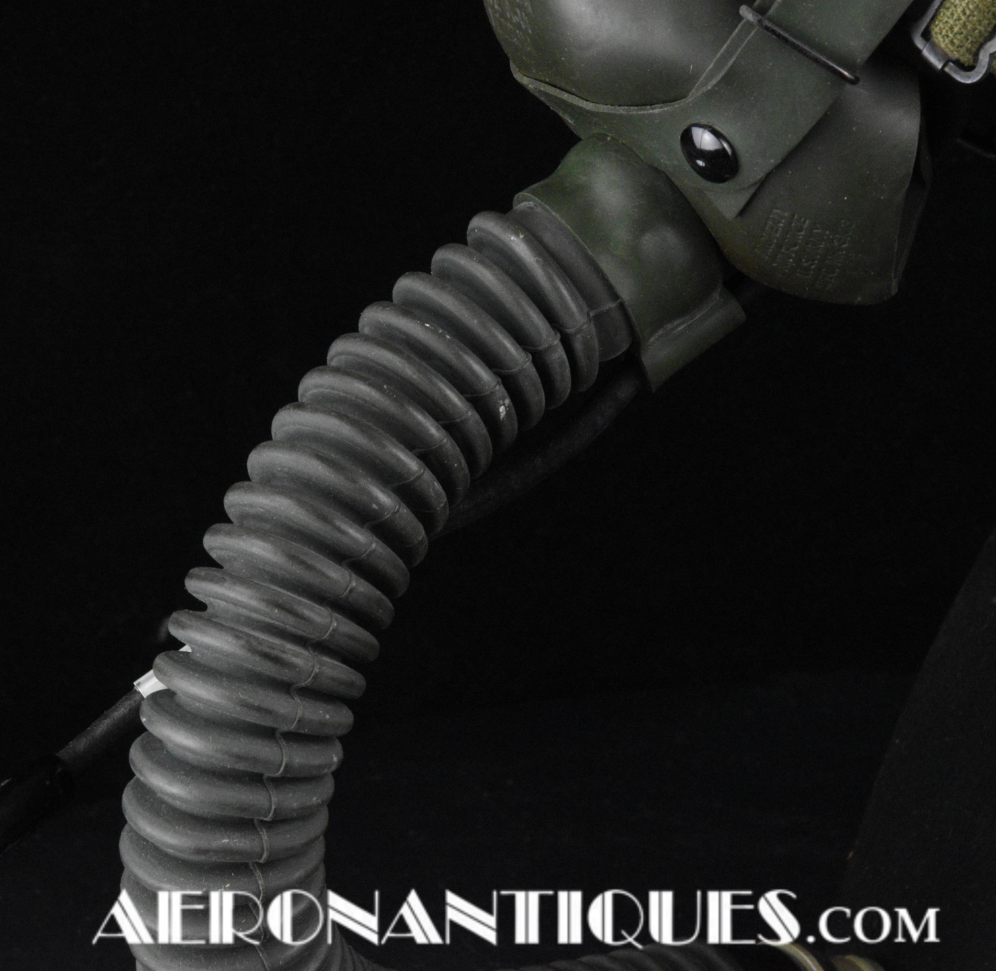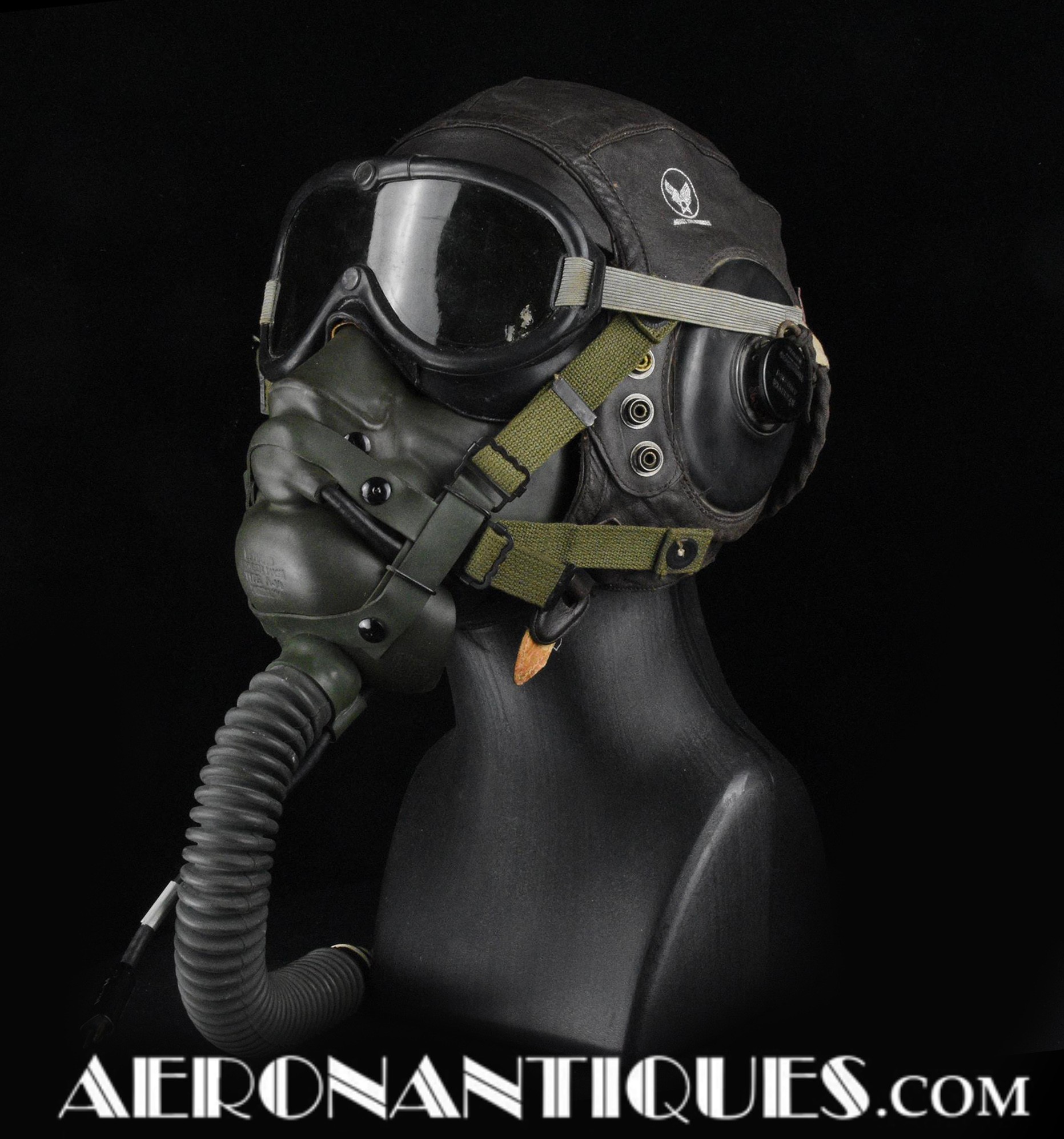 A-14 US Army Air Force regulation flying oxygen mask. Size MEDIUM. Dated 01/45. Made by OHIO CHEMICAL Co. Complete with storage box, instructions and accessories. New old stock, pliable with strong rubber fastening harness. Also included the originally fitted ANB-M-C1 microphone. Standardized on July 1943 this mask was issued to Army Air Force, Navy and USMC pilots during WWII. Helmet and display bust aren't included.