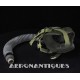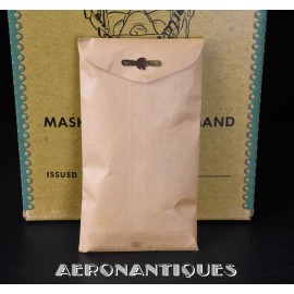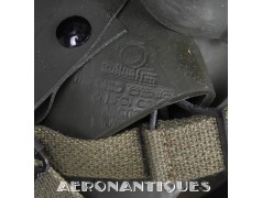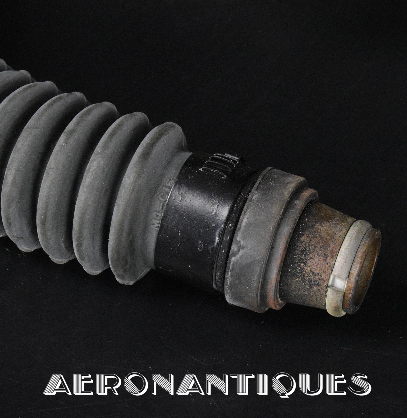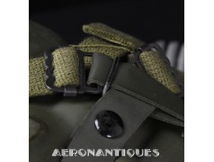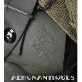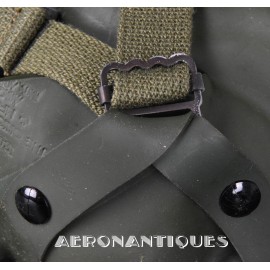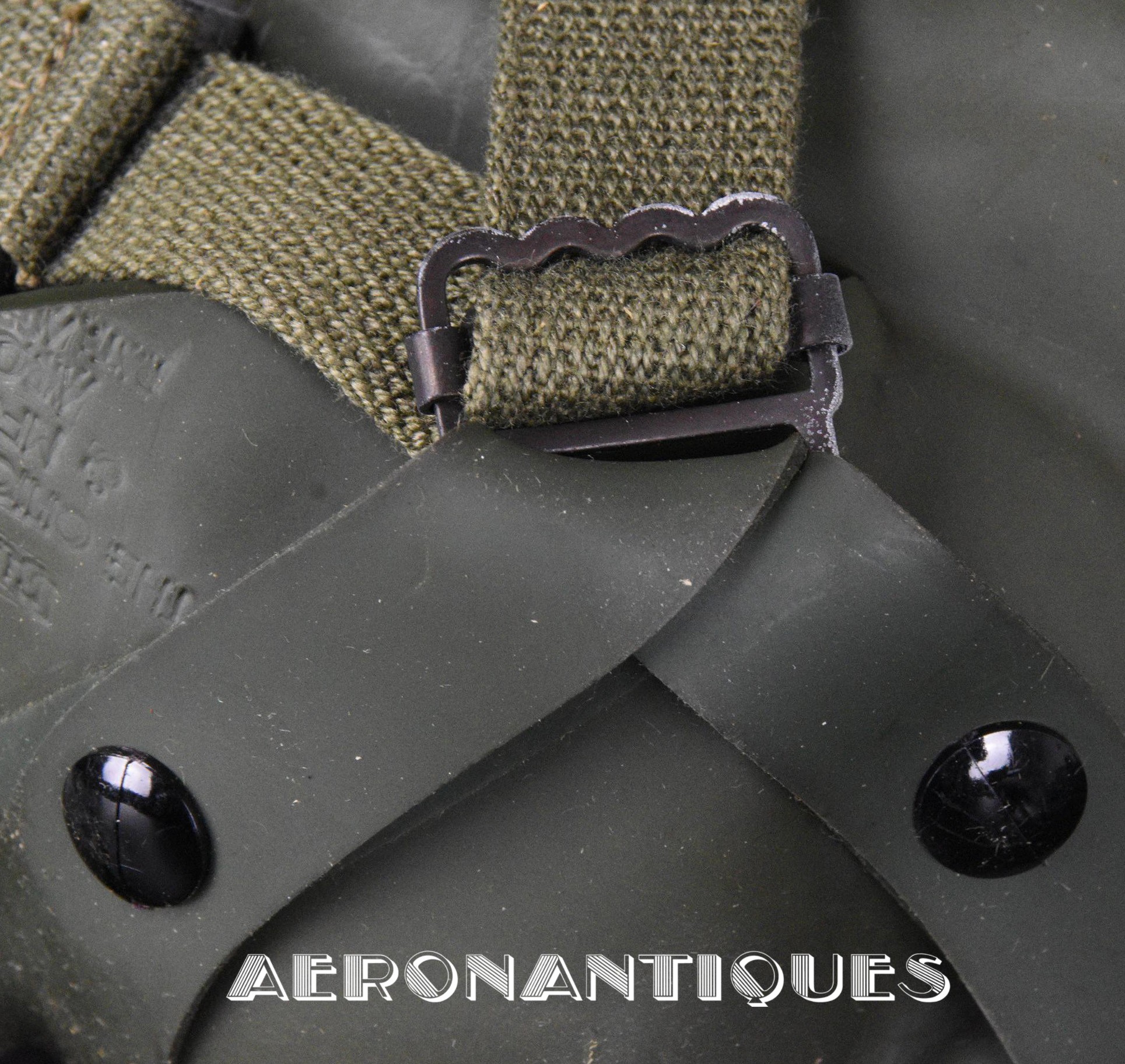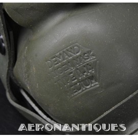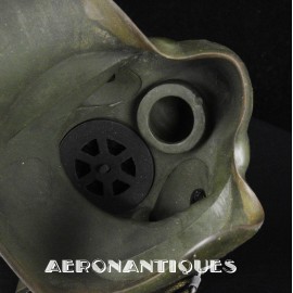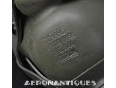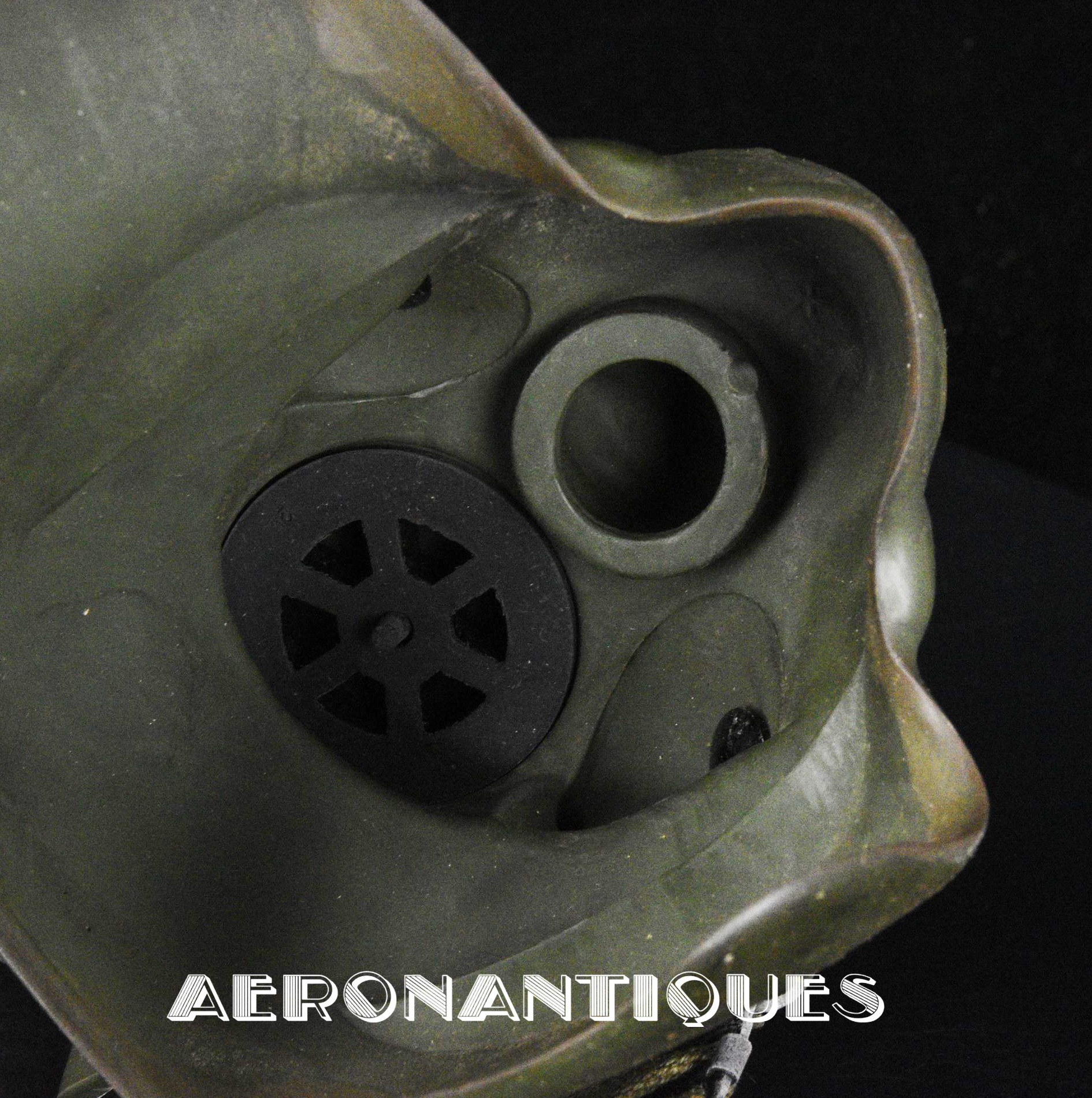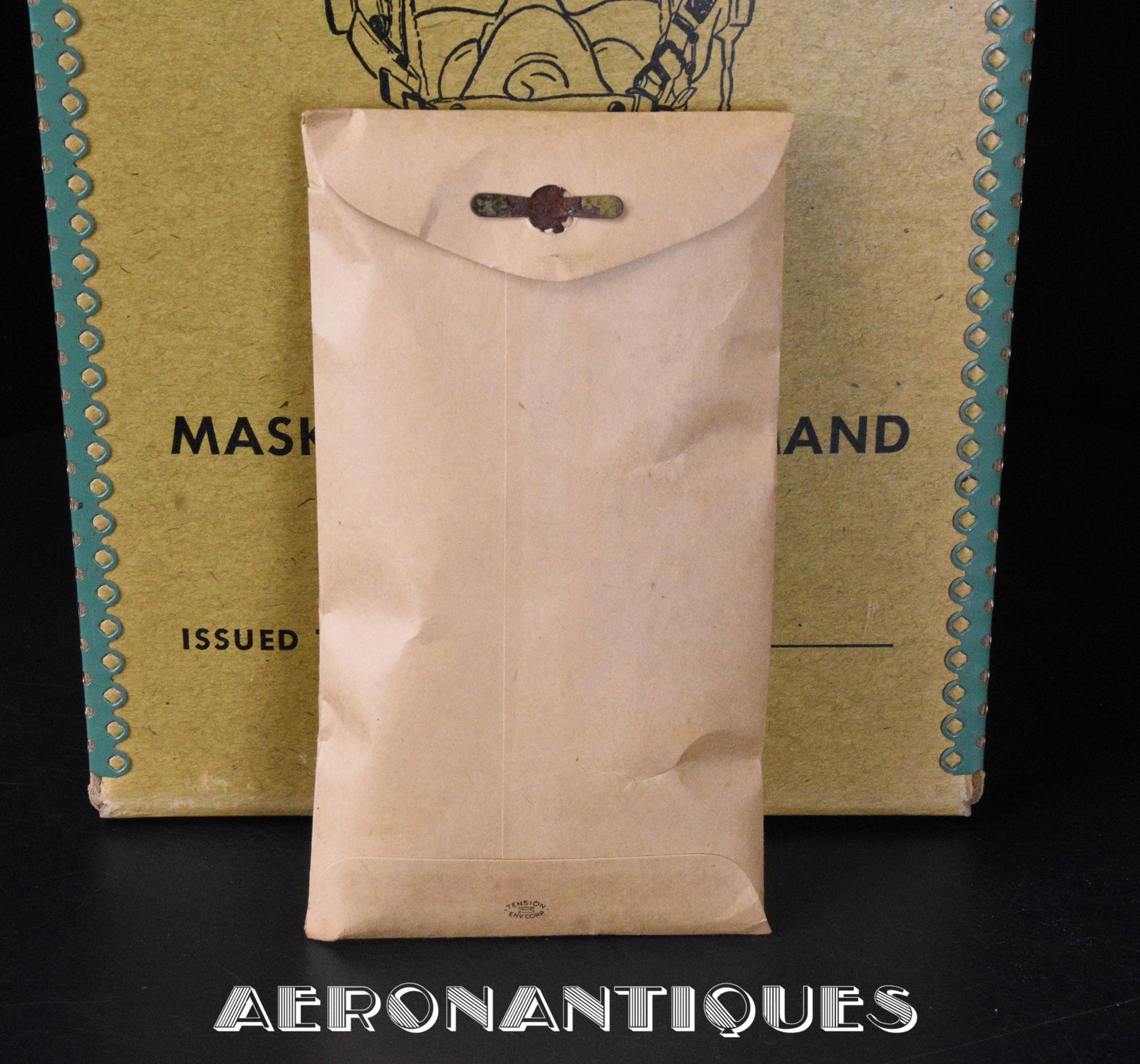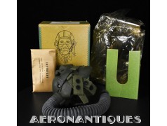 A-14 US Army Air Force regulation flying oxygen mask. Size MEDIUM. Dated 11/44. Made by OHIO CHEMICAL Co. Complete with storage box, instructions and accessories. New old stock, pliable with strong rubber fastening harness. Standardized on July 1943 this mask was issued to Army Air Force, Navy and USMC pilots during WWII. Helmet and display bust aren't included.