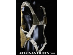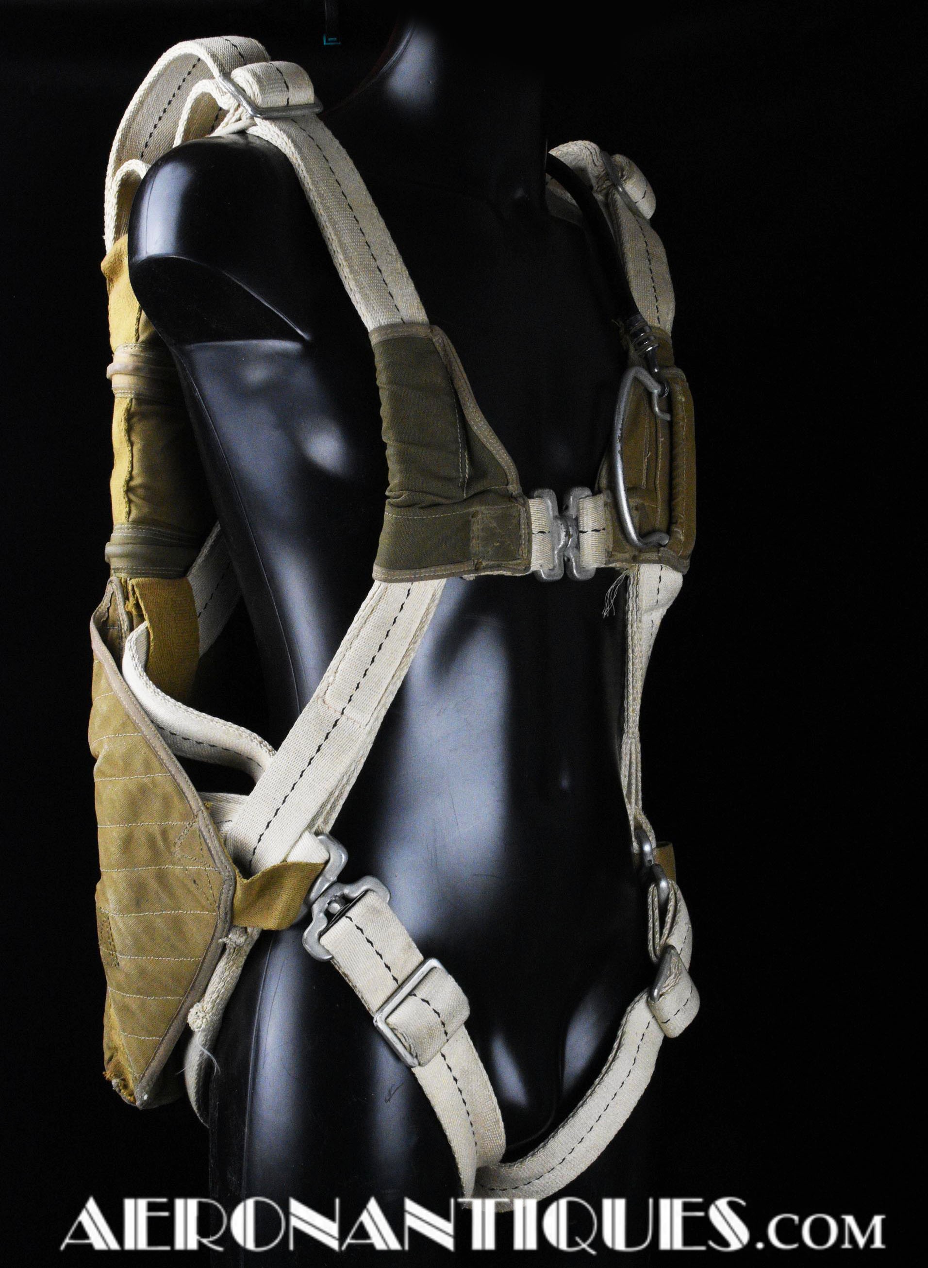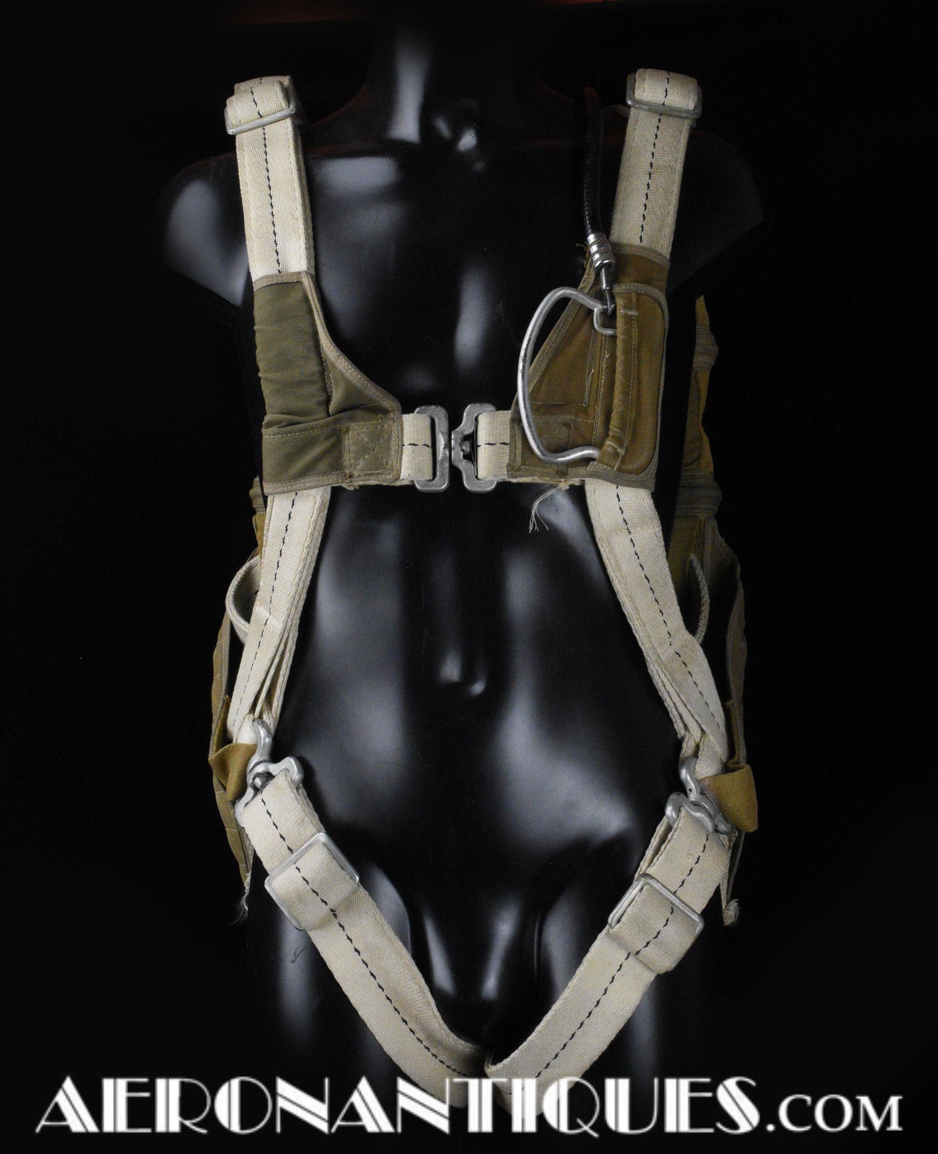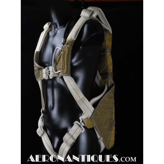 WWII US Army Air Force / Navy fighter or bomber pilot B-8 type back parachute, complete with canopy, lines, extractor and risers. Bayonet type harness made by NATIONAL AUTOMOTIVE FIBERS INC. DETROIT ,MICHIGAN, dated FEBRUARY 1944. Rare item, typical of 8th Air Force P-51 or P-47 fighter pilots. These parachutes were also issued to B-24 or B-26 pilots as can be seen on numerous period pics. Outstanding condition.