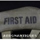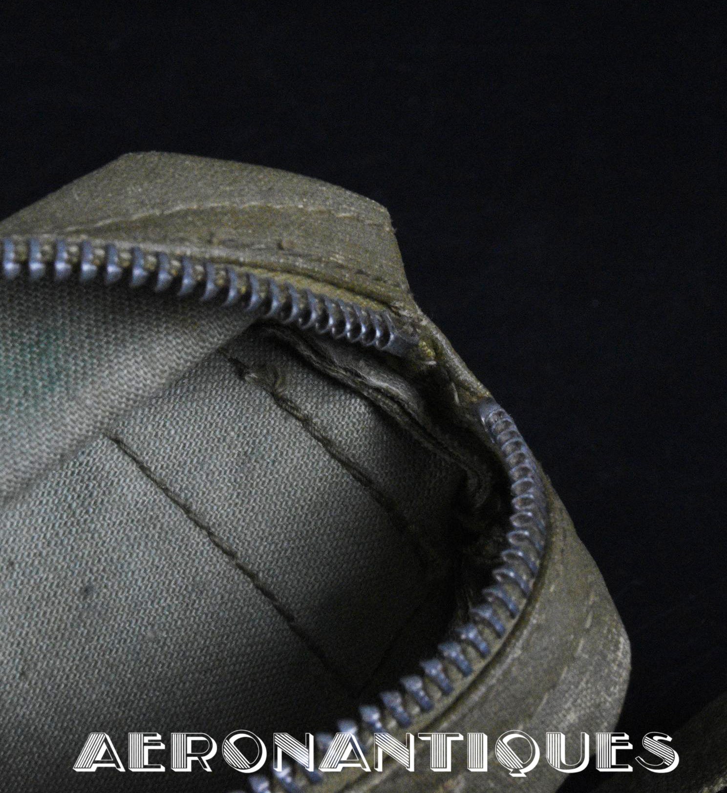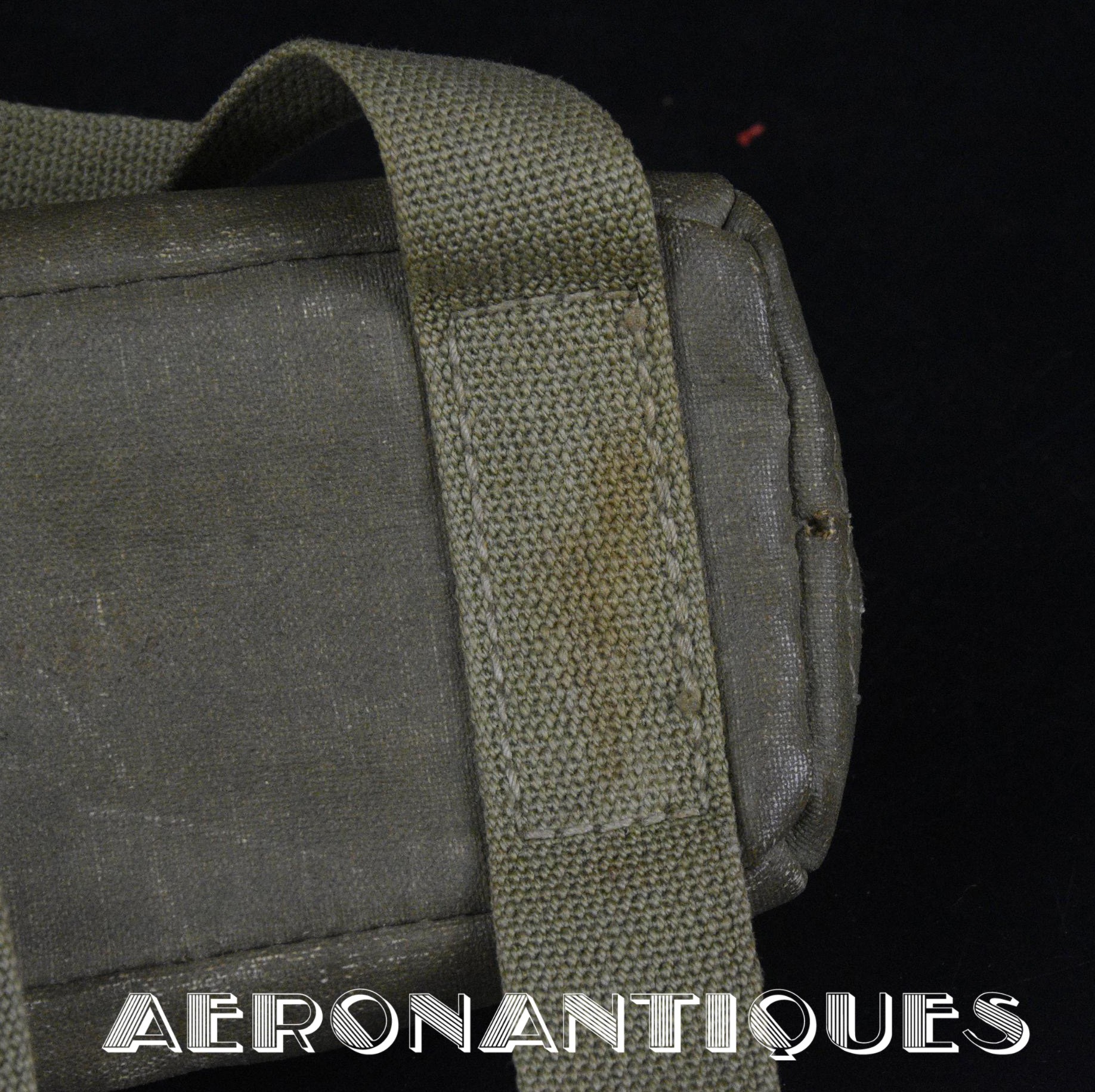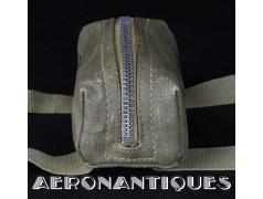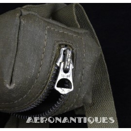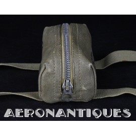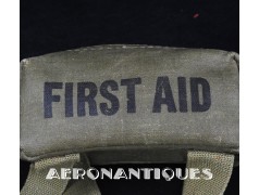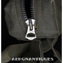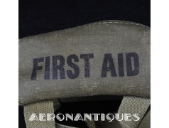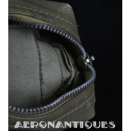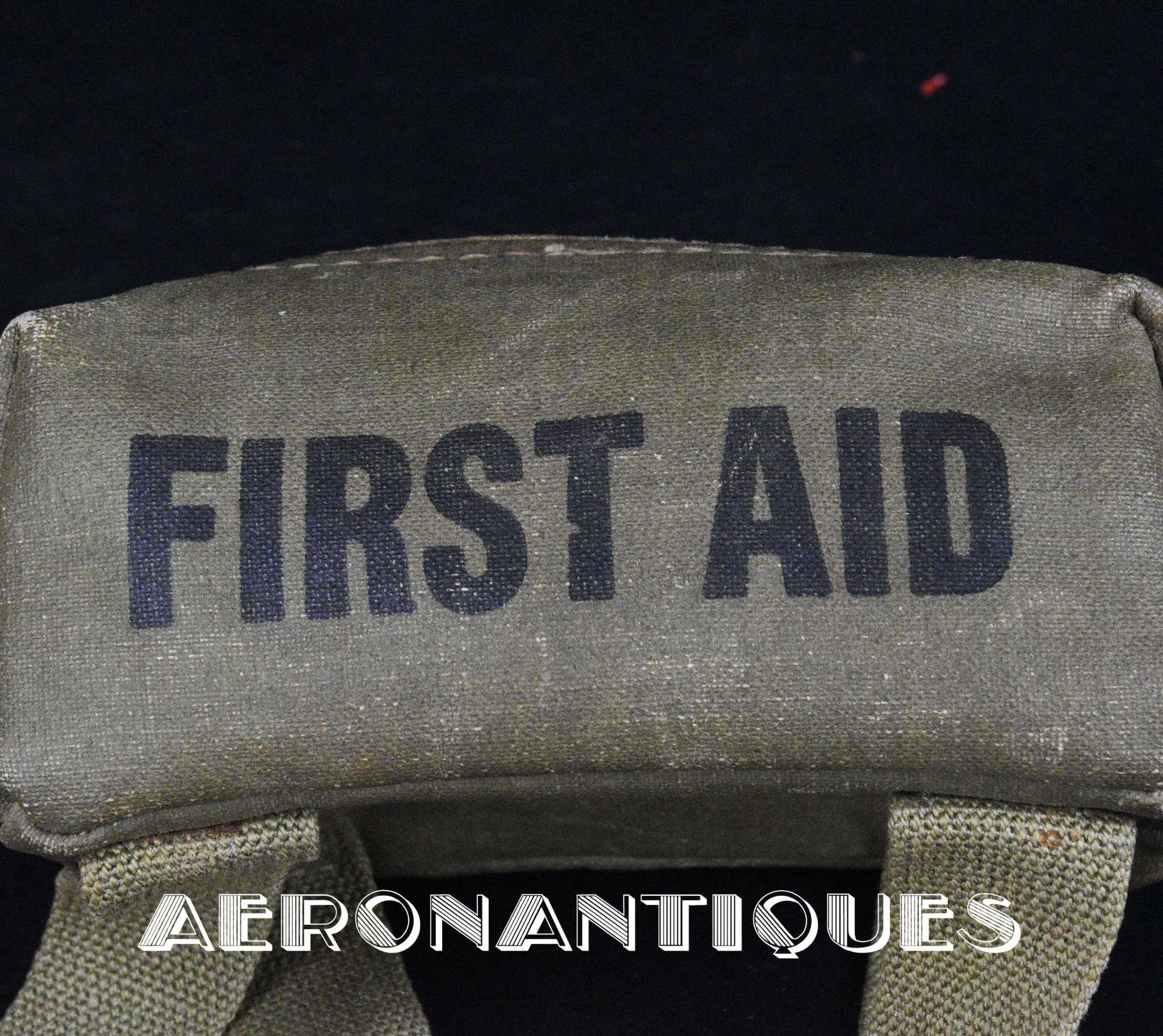 1942-43 1st pattern First-Aid Parachute Packet. Zippered waterproof coated canvas pouch, issued until 1944. This pouch contains one carlisle dressing, one tourniquet and one syrette. Functional "TALON" zipper. These kits were intended to be attached to the parachute harness with the ties. Outstanding condition. Original pouch and content
