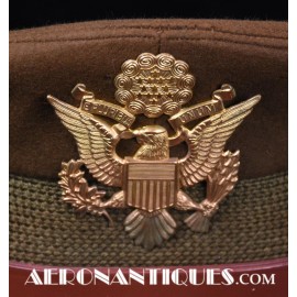 WWII US Army or Air Force regulation service officers hat. US tailor made by SMITH-GRAY (New-York). Melton wool top. Russet leather visor. Double cavalry style chinstrap. Small pattern gilded brass eagle. Size 7 (56 cm). Some moth holes.