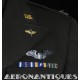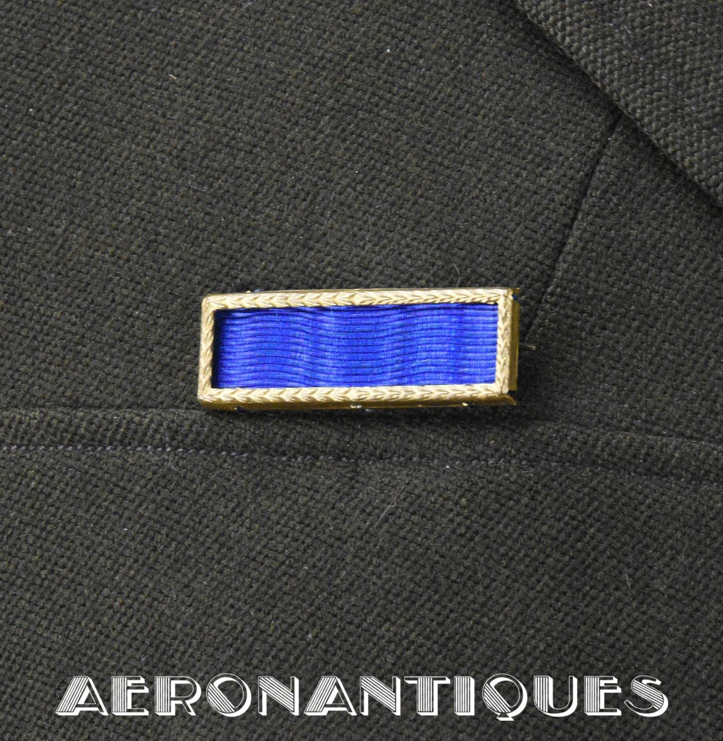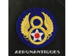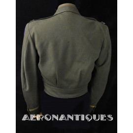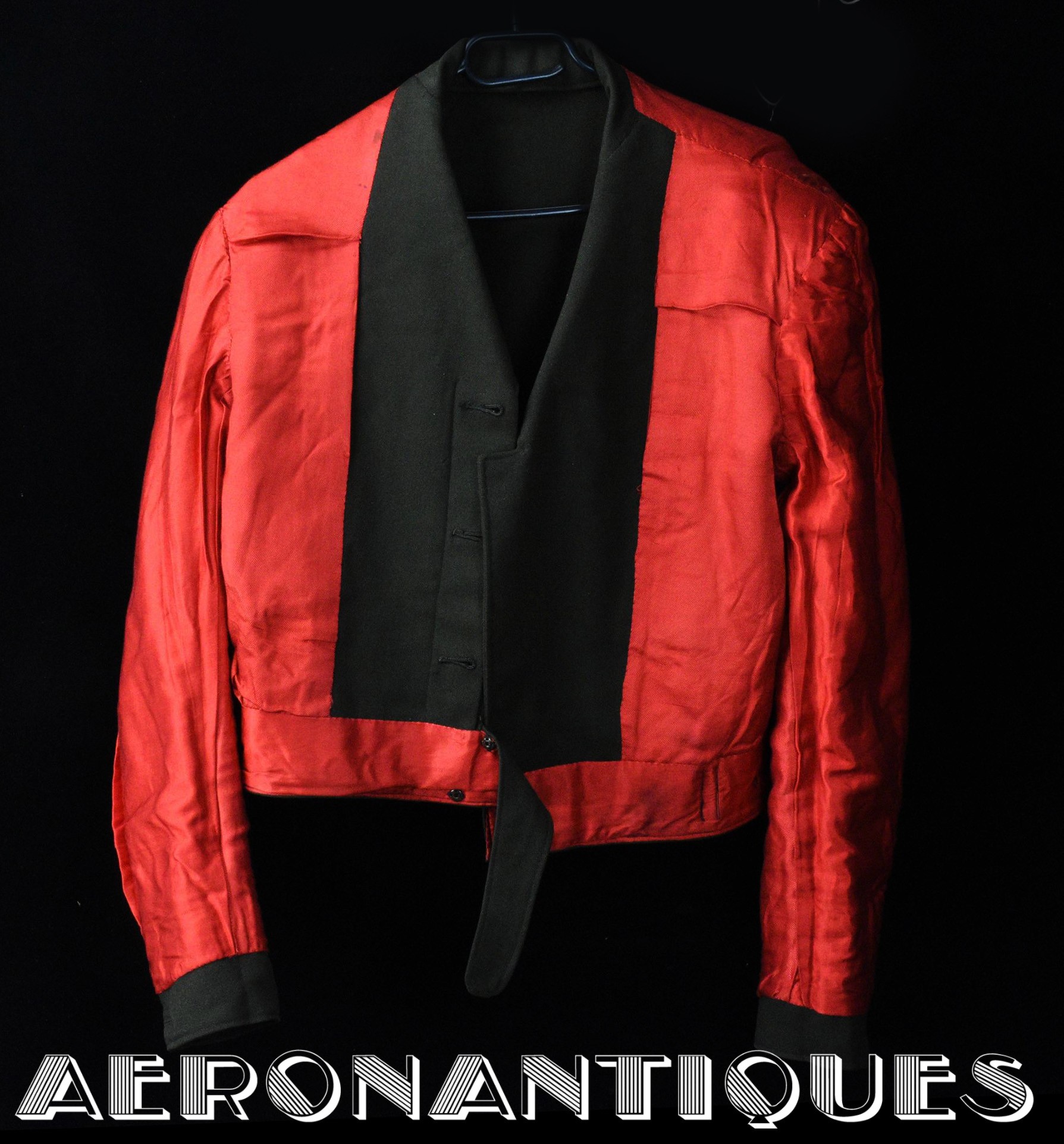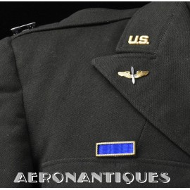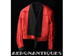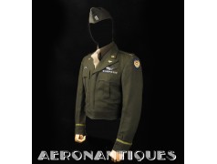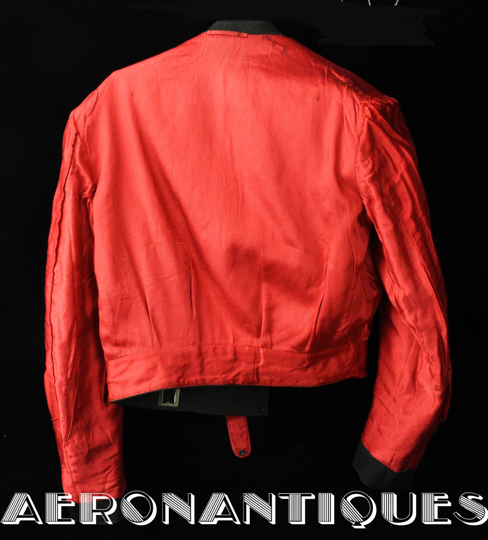 British-made Ike jacket belonging to a 8th US Army Air Force Captain. The jacket is London tailor-made of Barathea wool with red lining, characteristic of fighter pilots who flew combat missions and achieved several victories. It features an 8th Air Force shoulder patch, also British-made, in embroidered cotton on wool backing. The sterling pilot's wings are US-made. Ribbons for the Distinguished Flying Cross with a bronze oak leaf, the Air Medal with a silver oak leaf, and the EAME Campaign Medal with 4 battle stars (British-made) are also included. Above the right pocket is the British-made Presidential Unit Citation awarded to the unit in the summer of 1944. US and Army Air Force officer's winged propellers insignias on lapels. Rank shoulder insignias are British-made by Gaunt. A very fine piece of clothing with high-quality insignias. Hat, shirt, and tie are not included. B-17 pilot John C. Walter, of the 8th Air Force, mentions this tailor in his book "MY WAR".