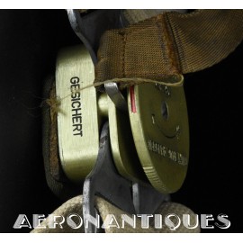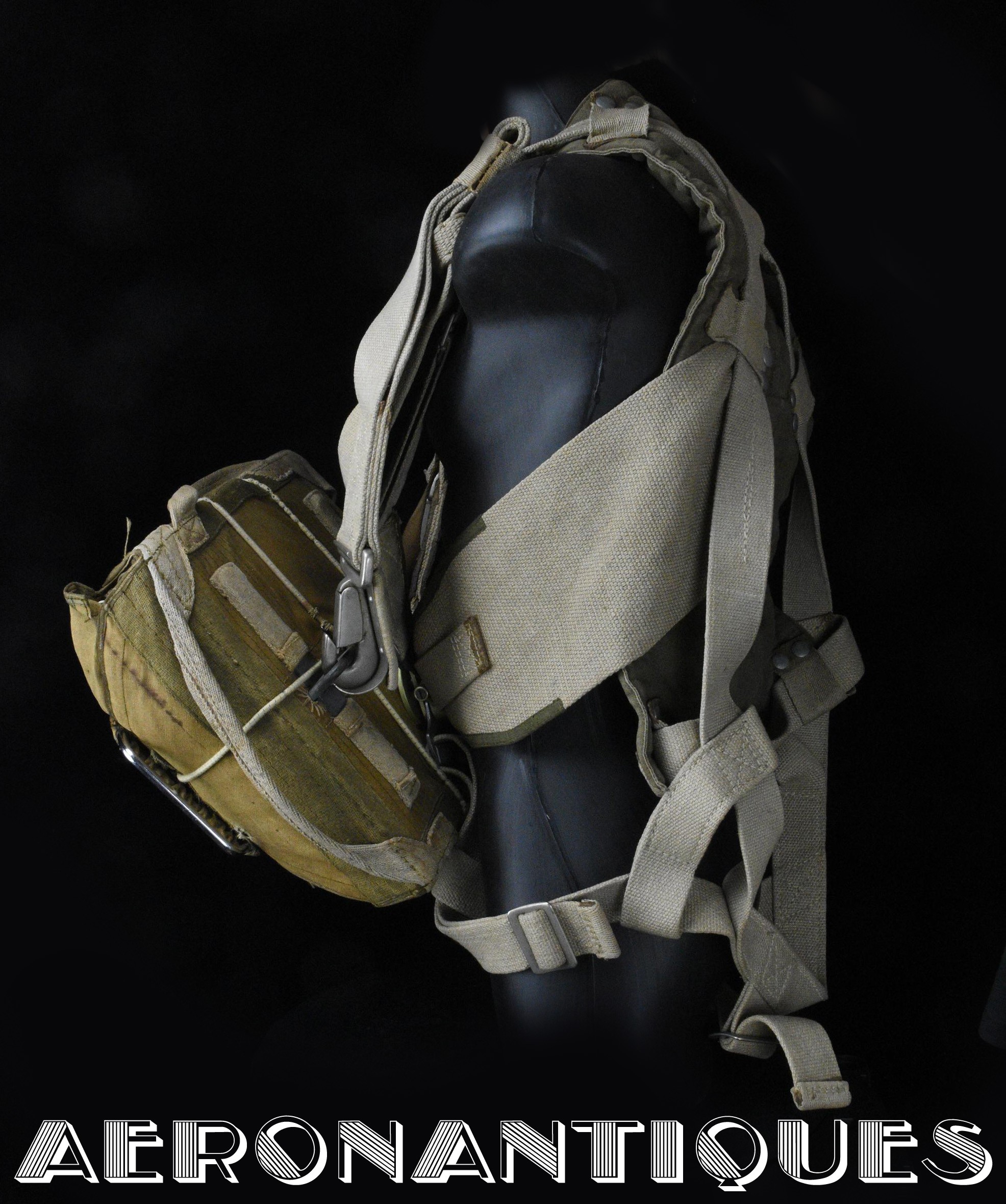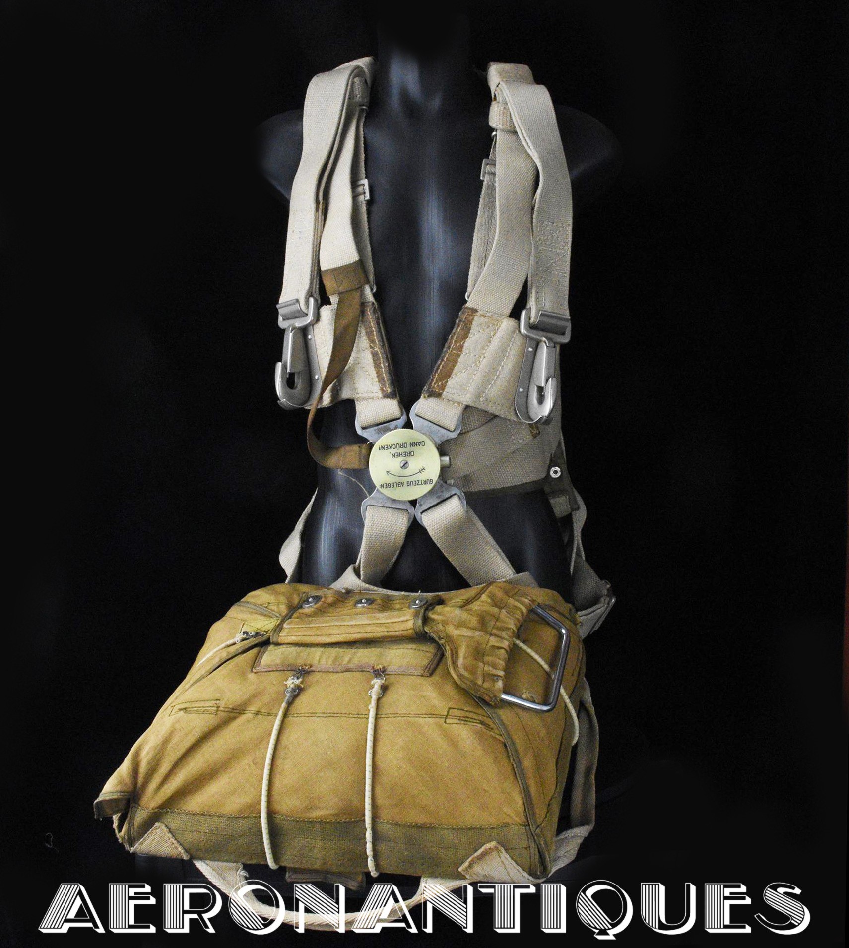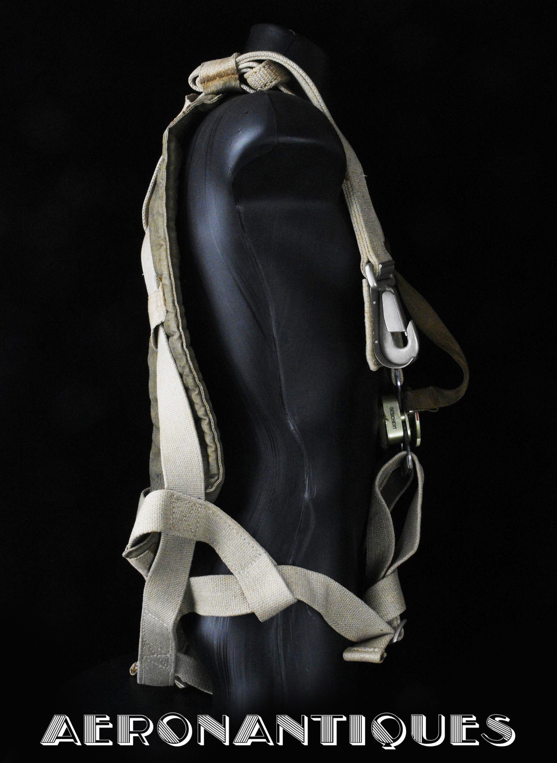 Exceptionnel parachute type Fl-30210 pour équipages de bombardier de la Luftwaffe avec harnais, coussin dorsal, enveloppe et voilure d'origine. Fabrication de 1942/43. Élastiques d'origine. la boucle a sa clé de sécurité. Tous les tampons correspondent aux numéros. Dernière vérification en décembre 1944. Carnet d'entretien correspondant au numéro. Pièce extrêmement rare, particulièrement dans cet état.