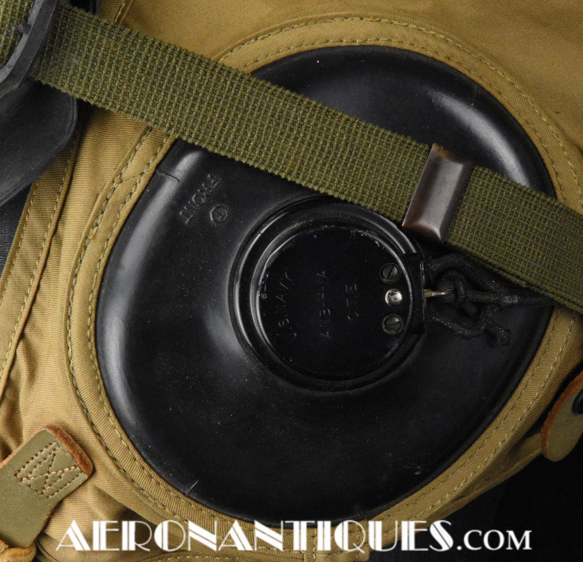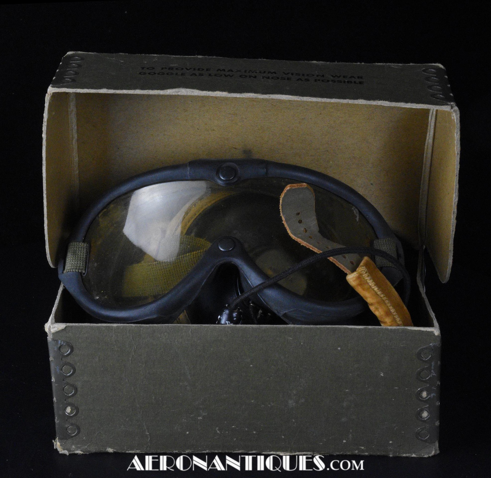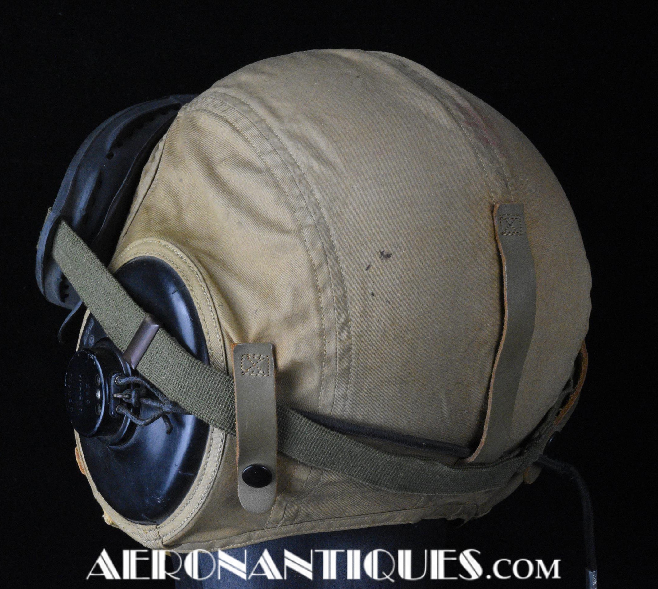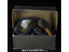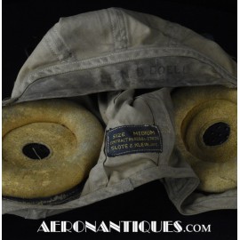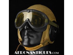 Ensemble serre-tête et lunettes identifié d'un pilote de l'Aéronavale période Seconde Guerre Mondiale, modèle été type AN-6542, circa 1944. Taille MEDIUM. Complet avec ses écouteurs type ANB-H-1A, câblage, rallonge et leur fiche spécifiques US Navy. Egalement incluses ses lunettes de vol M-144 US Navy fabrication Polaroid datées 1945 et leur boîte dans laquelle l’ensemble a été trouvé. Pièce d'équipement emblématique des pilotes de l'Aéronavale Américaine durant la Seconde Guerre Mondiale, utilisable pour compléter un ensemble de vol US NAVY ou US MARINE CORPS.