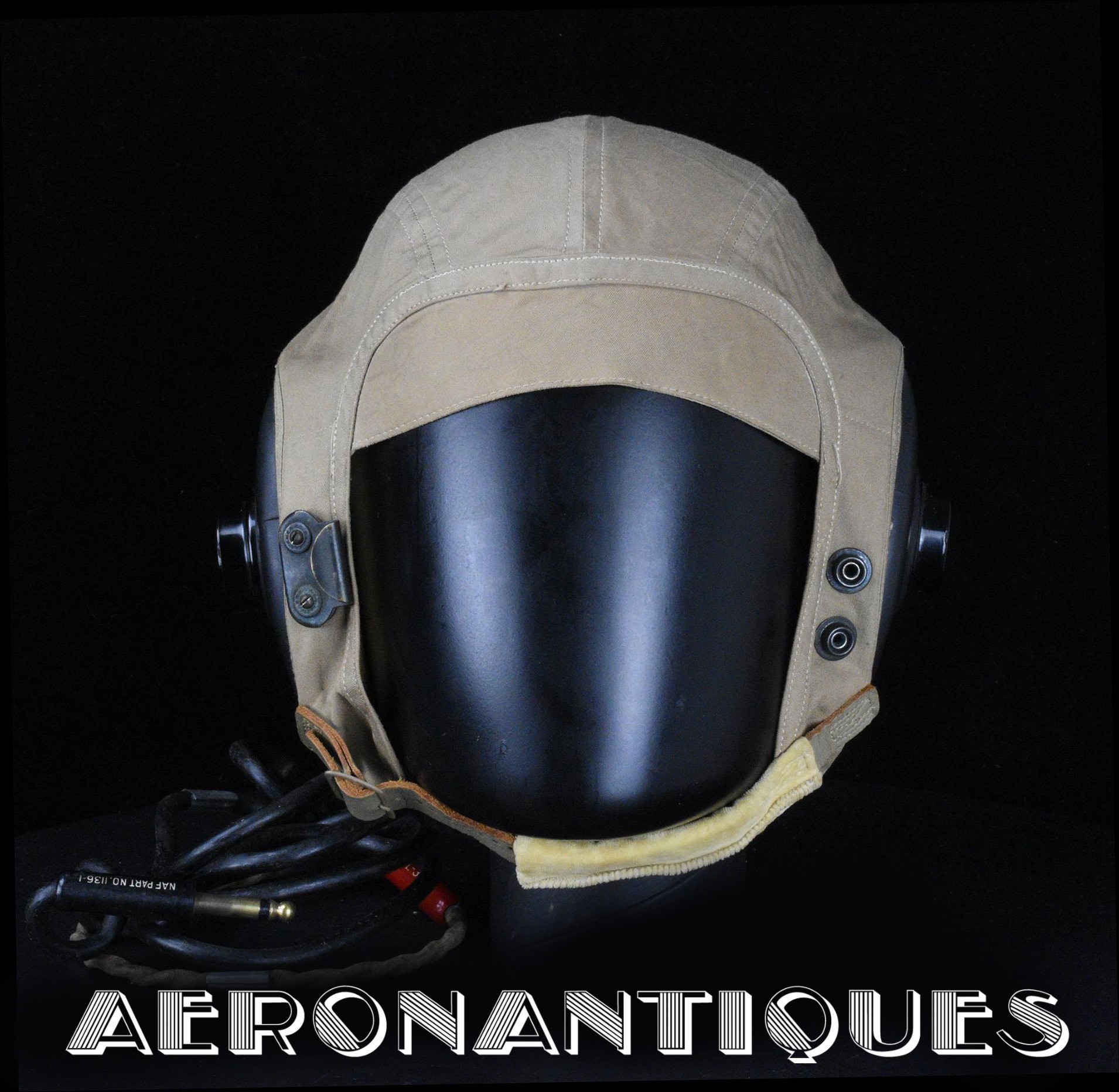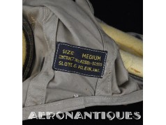 Serre-tête de pilote de chasse de l'Aéronavale période Seconde Guerre Mondiale, modèle été type AN-6542, circa 1944. Taille MEDIUM. Complet avec ses écouteurs type ANB-H-1 , câblage, rallonge et leur fiche spécifiques US Navy. Pièce d'équipement emblématique des pilotes de l'Aéronavale Américaine durant la Seconde Guerre Mondiale, utilisable pour compléter un ensemble de vol US NAVY ou US MARINE CORPS. Support et lunettes ne sont pas inclus.