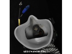 Ensemble casque et masque à oxygène de pilote du Strategic Air command de l'US Air Force du début des années 90. Le casque est un type HGU-55/P taille LARGE, système double visières teintée et claire type PRU-36/P avec découpe pour masque MBU-12/P. Le couvre visière spécial est destiné à recevoir les lunettes anti-flash nucléaire type EEU-2/P. Écouteurs et fiche pour microphone du masque à oxygène et alimentation des lunettes. Liner ZETA. Le masque MBU-12/P est une fabrication GENTEX, taille REGULAR, daté 1989. Il a en plus du cordon écouteurs/microphone le cordon spécial pour l'alimentation des lunettes anti-flash. Connecteur oxygène à désaccouplement rapide. Bel ensemble homogène. Le buste de présentation est inclus. Ce type d'équipement a été employé sur bombardiers F-111, B-1 et B-52. Les lunettes EEU-2/P protègent les pilotes du flash d'une explosion nucléaire en s'assombrissant instantanément. Pièce rarissime.