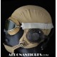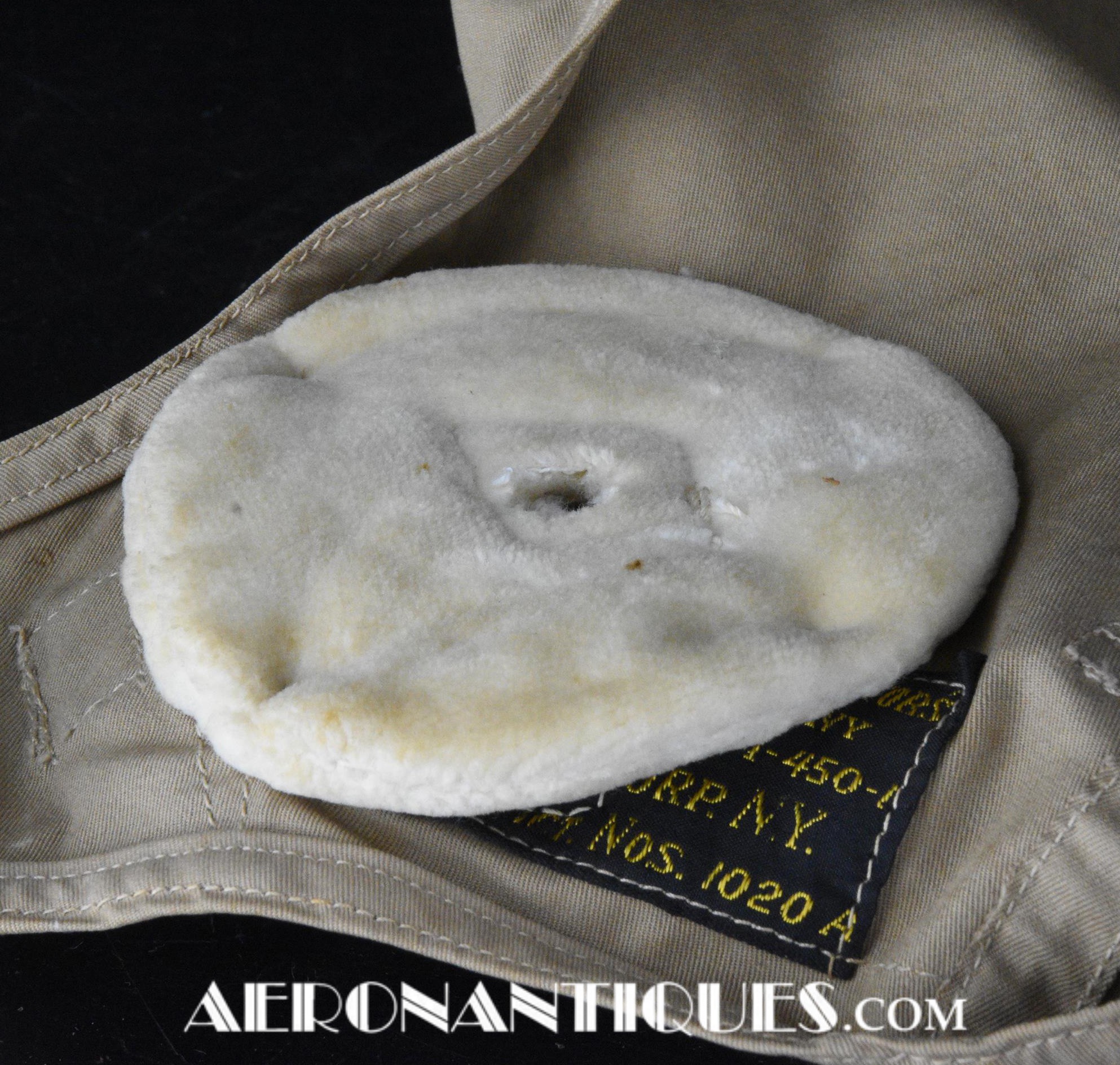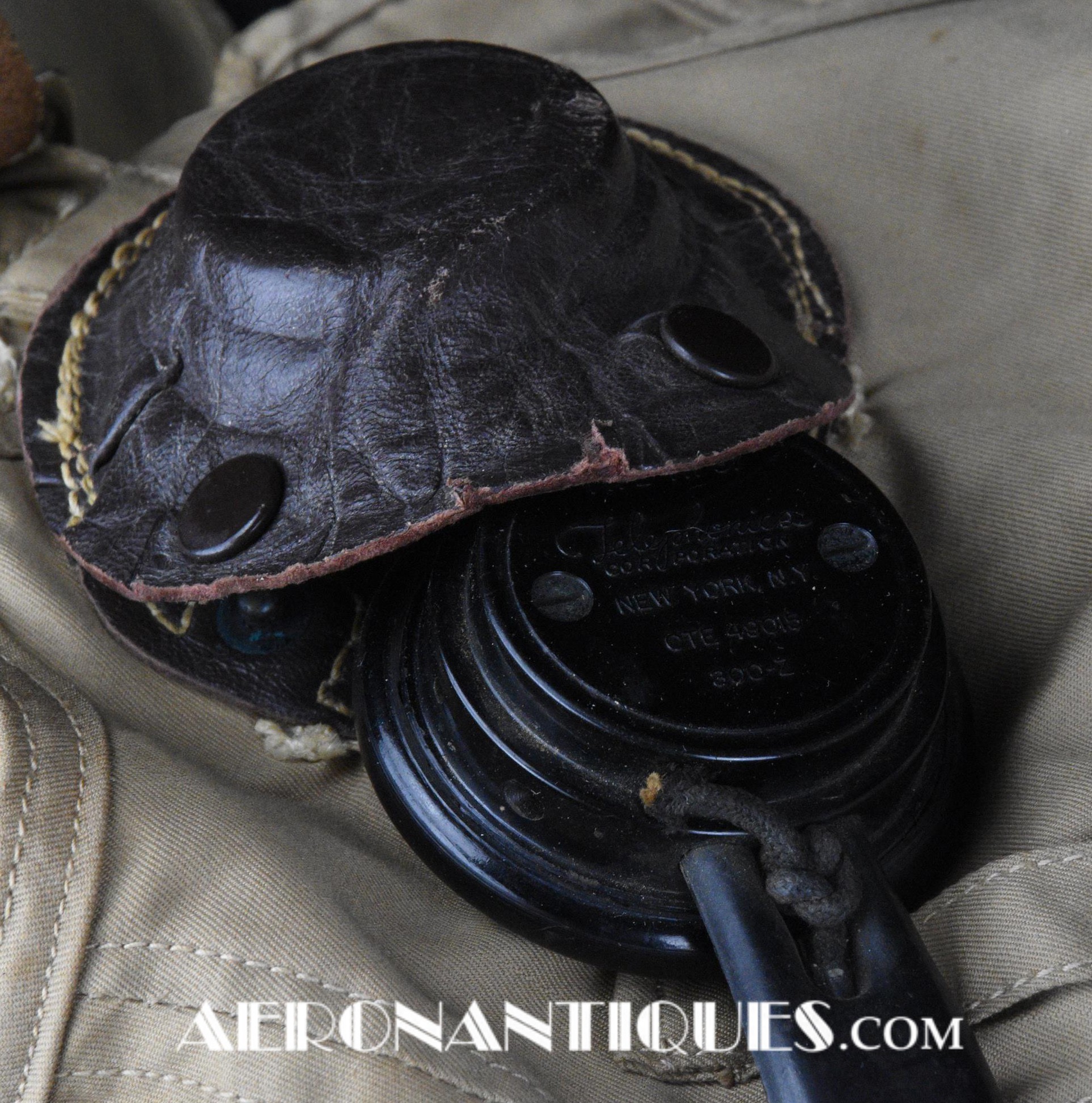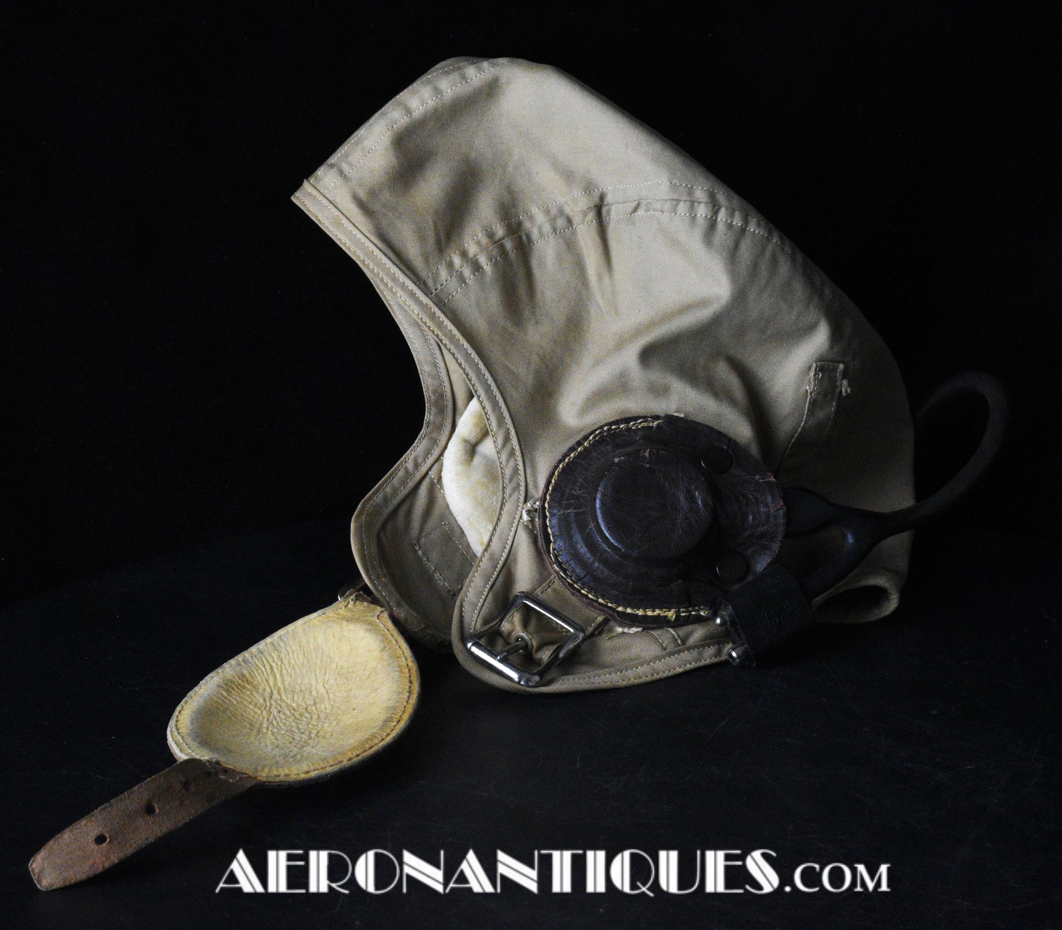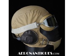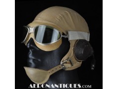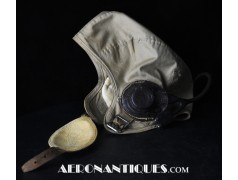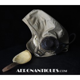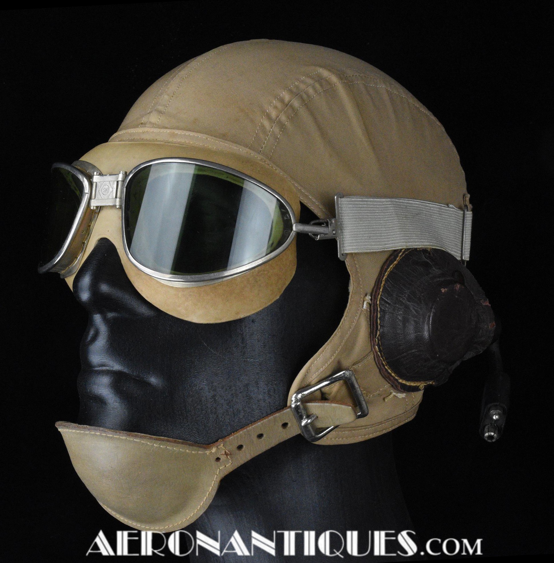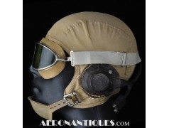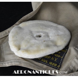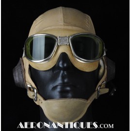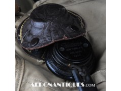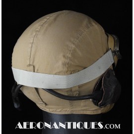 Serre-tête de pilote de chasse de l'Aéronavale période Seconde Guerre Mondiale, type M-450 modèle été. Fabrication HLB Corps. Complet avec ses écouteurs type TH-37 fabrication TELEPHONICS. Mentonnière et coupelles d'écouteurs radio en cuir. Présenté sur une tête de circonférence 58 cm). Pièce d'équipement emblématique des pilotes de l'Aéronavale Américaine durant la Seconde Guerre Mondiale, utilisable pour compléter un ensemble de vol US NAVY ou US MARINE CORPS. Support et lunettes ne sont pas inclus.