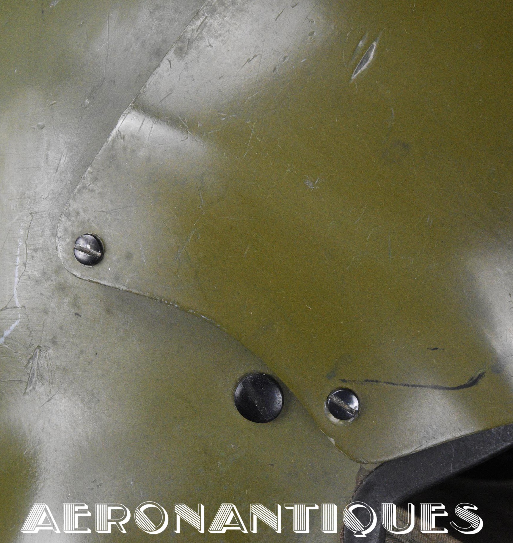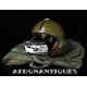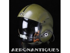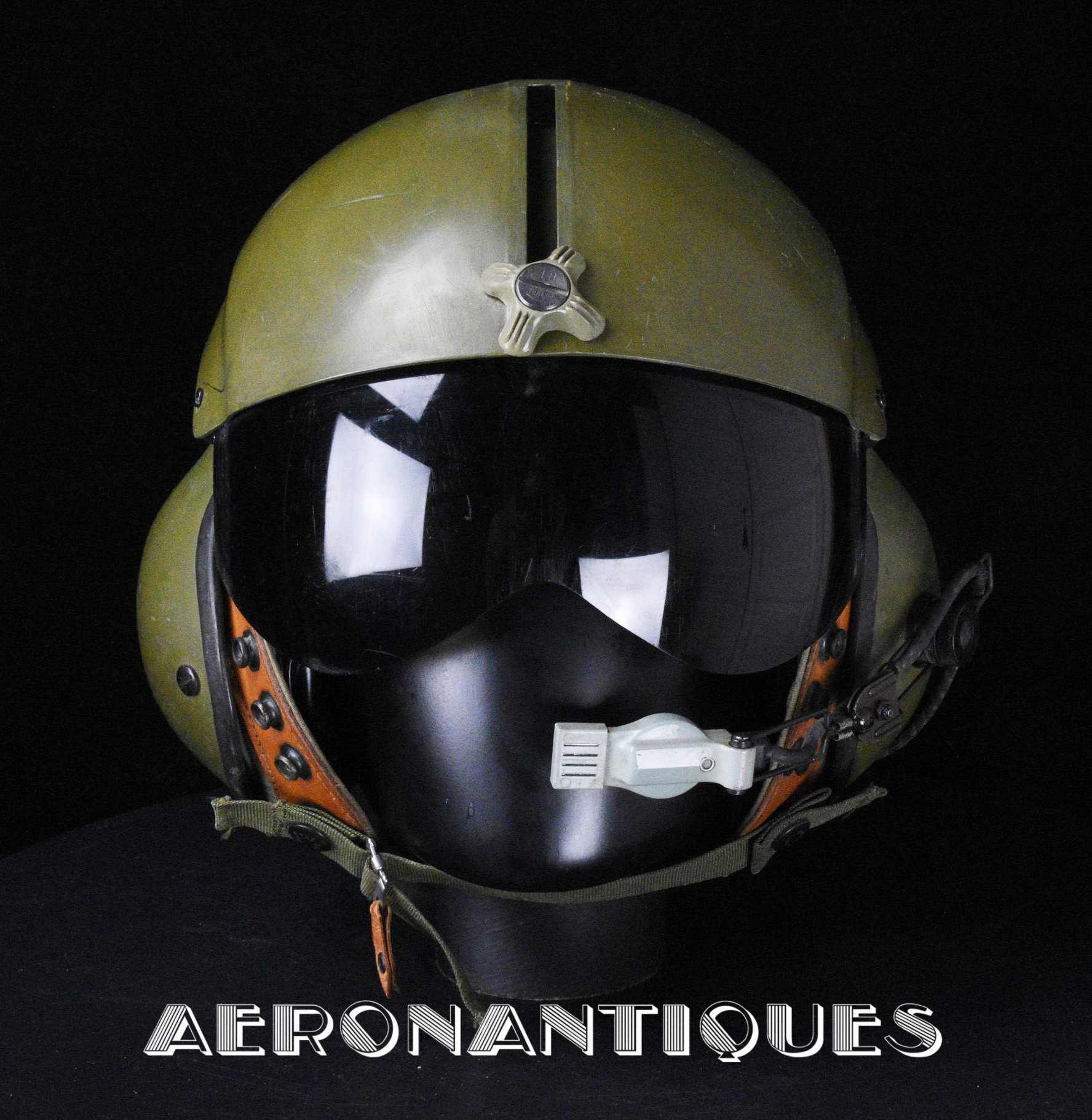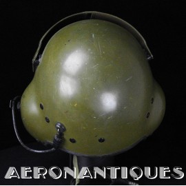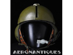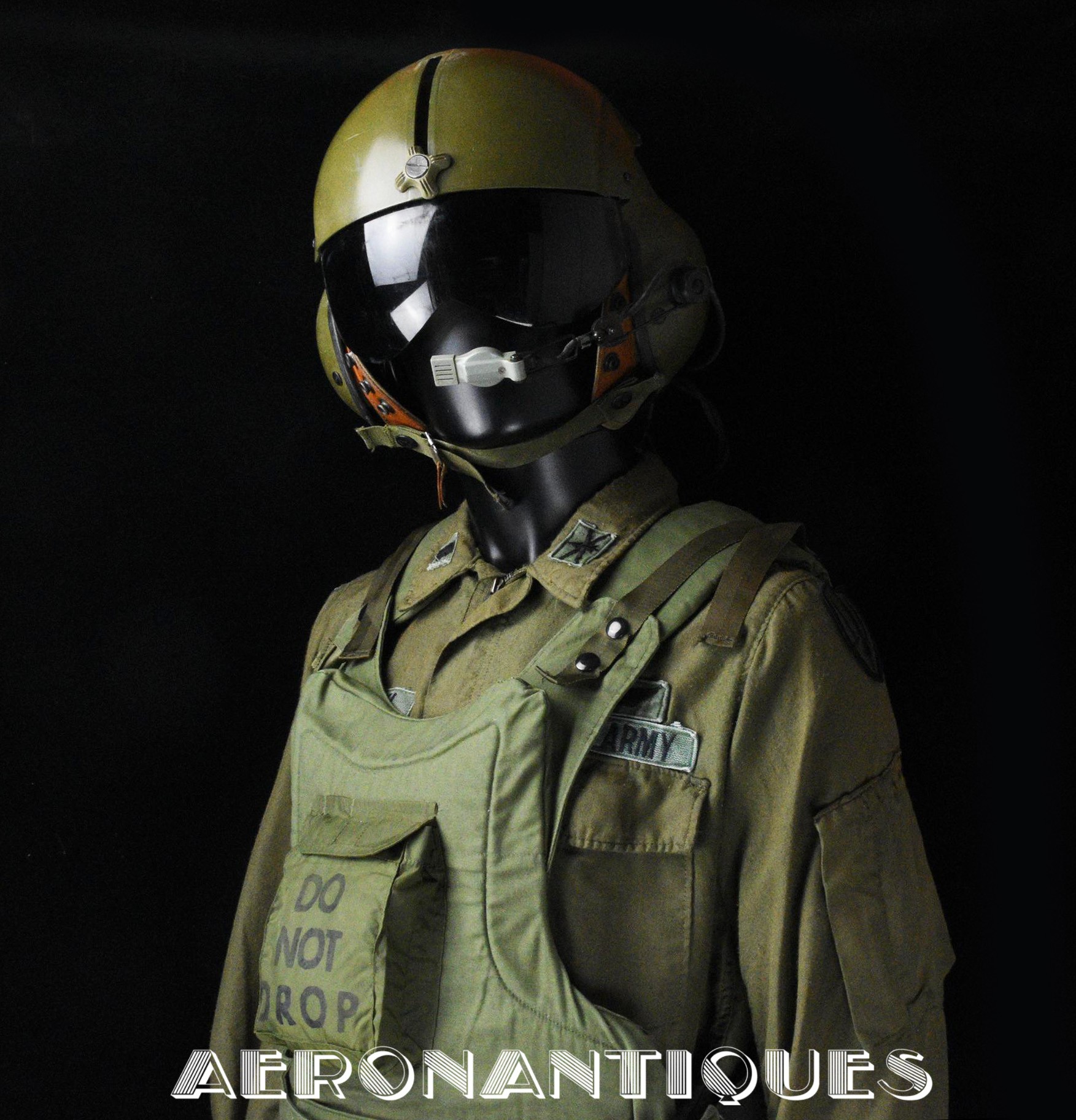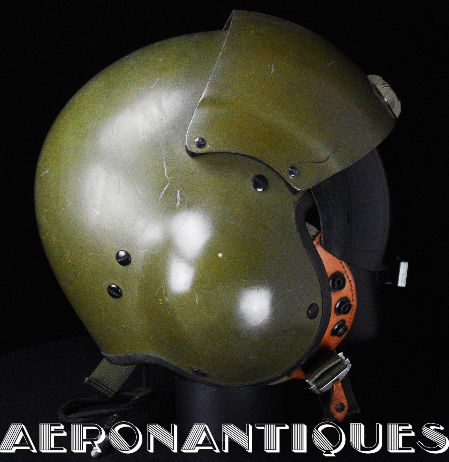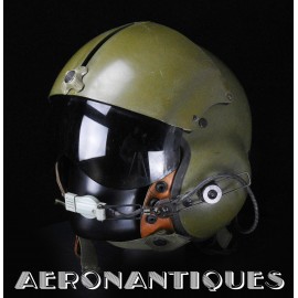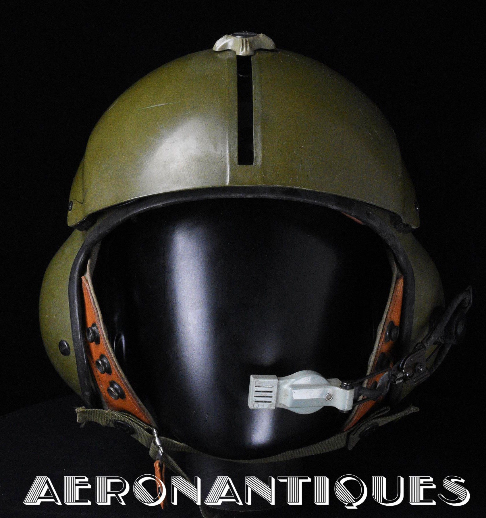 Casque de pilote d'hélicoptère de l'US Army, modèle SPH-4, fabrication GENTEX, daté 1971. Premier modèle (1969-1974). Taille "REGULAR". Complet avec coiffe intérieur nylon et cuir, suspension, microphone, écouteurs, cordon et fiche. Visière rétractable teintée fonctionnelle avec virole de sécurité. Également inclus le sac de transport d'origine et livret d'instructions. Conçu pour réduire les nuisances sonores comme l'indiquent les deux premières lettres de sa dénomination (Sound Protection), le modèle SPH-4 ne présentait pas une protection supérieures aux chocs à son prédécesseur de la série APH. Pièce mythique et caractéristique des équipements des équipages d'hélicoptère pendant la guerre du Vietnam. Très bon état.