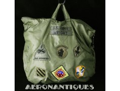 Sac pour casque de pilote réglementaire, en nylon vert avec doublure molletonnée. Fermeture à glissière, deux poches extérieures fermant par pression et auto-agrippant. Plusieurs insignes dont les unités d'intelligence et reconnaissance de l'US Army. Beau sac, très robuste et esthétique pour une utilisation au quotidien ou tout simplement transporter son casque de moto de manière originale.