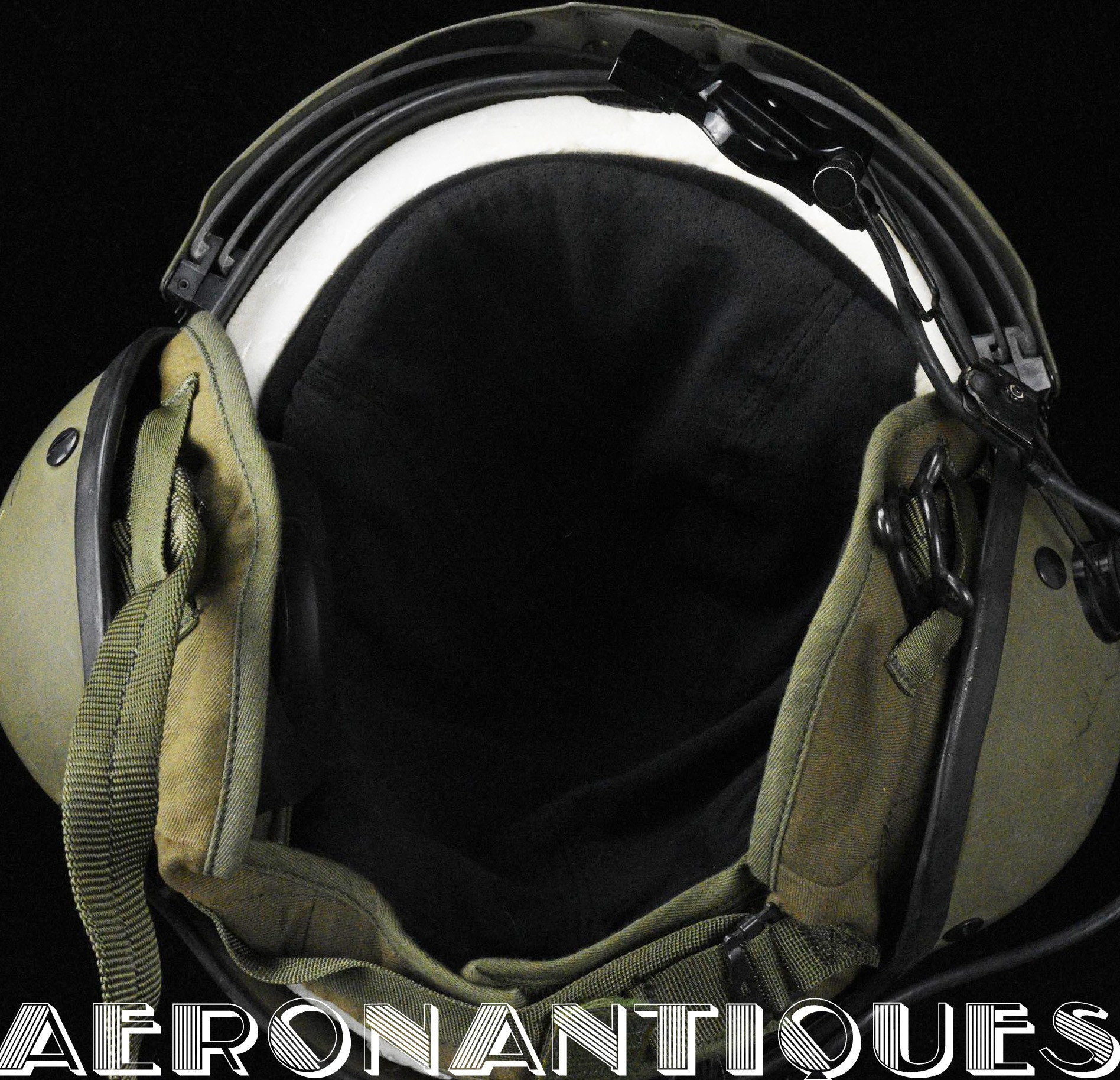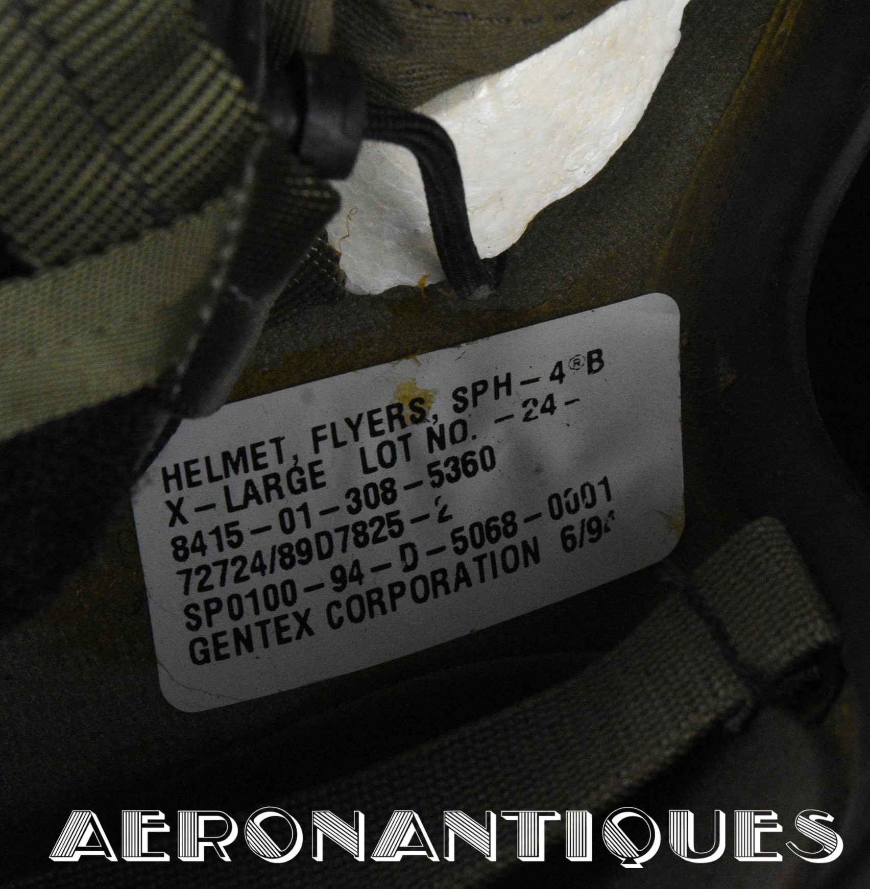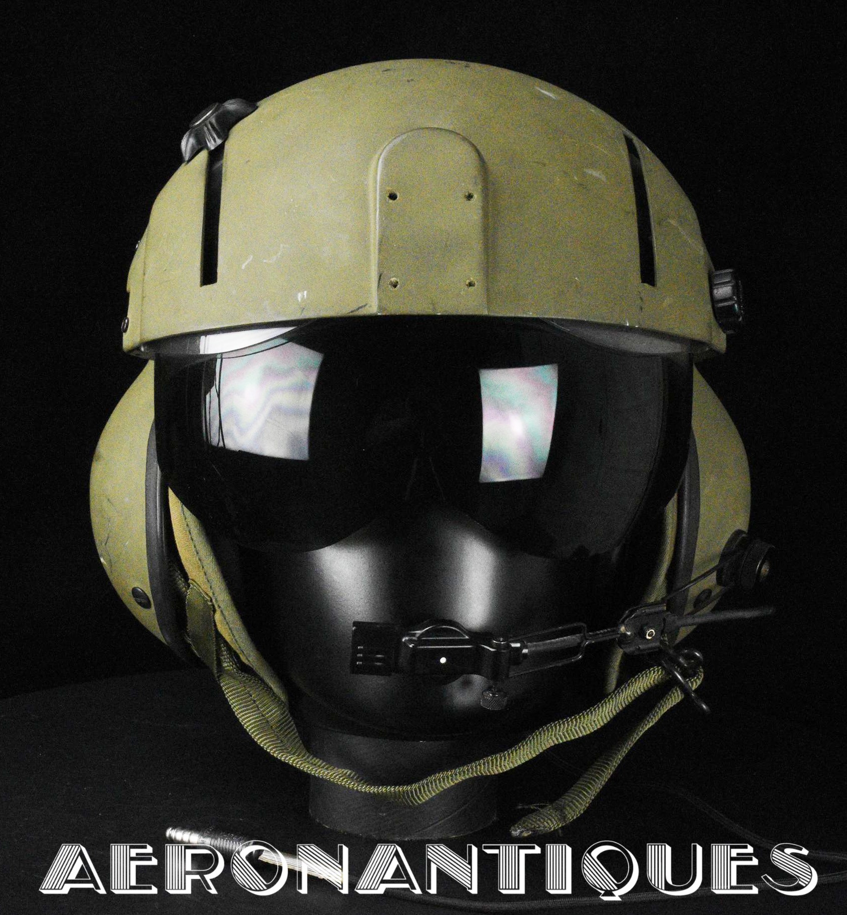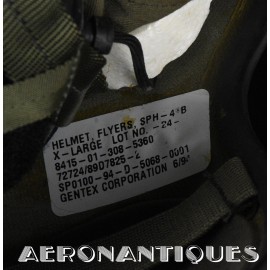 Casque de pilote d'hélicoptère de l'US Army, modèle SPH-4B, fabrication GENTEX, daté 1994. Taille "X-LARGE". Complet avec coiffe intérieur toile, liner TPL, microphone rail, écouteurs, cordon et fiche. Visières rétractable teintée et claire fonctionnelles. Très bon état. Ce casque a été développé au milieu des années 90 spécialement pour les pilotes des Special Operation Forces volant sur MH- 60K Blackhawk, MH-47E Chinook et MH- 53J Pave Low III. Ils ont été remplacés par les HGU-56 à partir de la fin des années 90.
